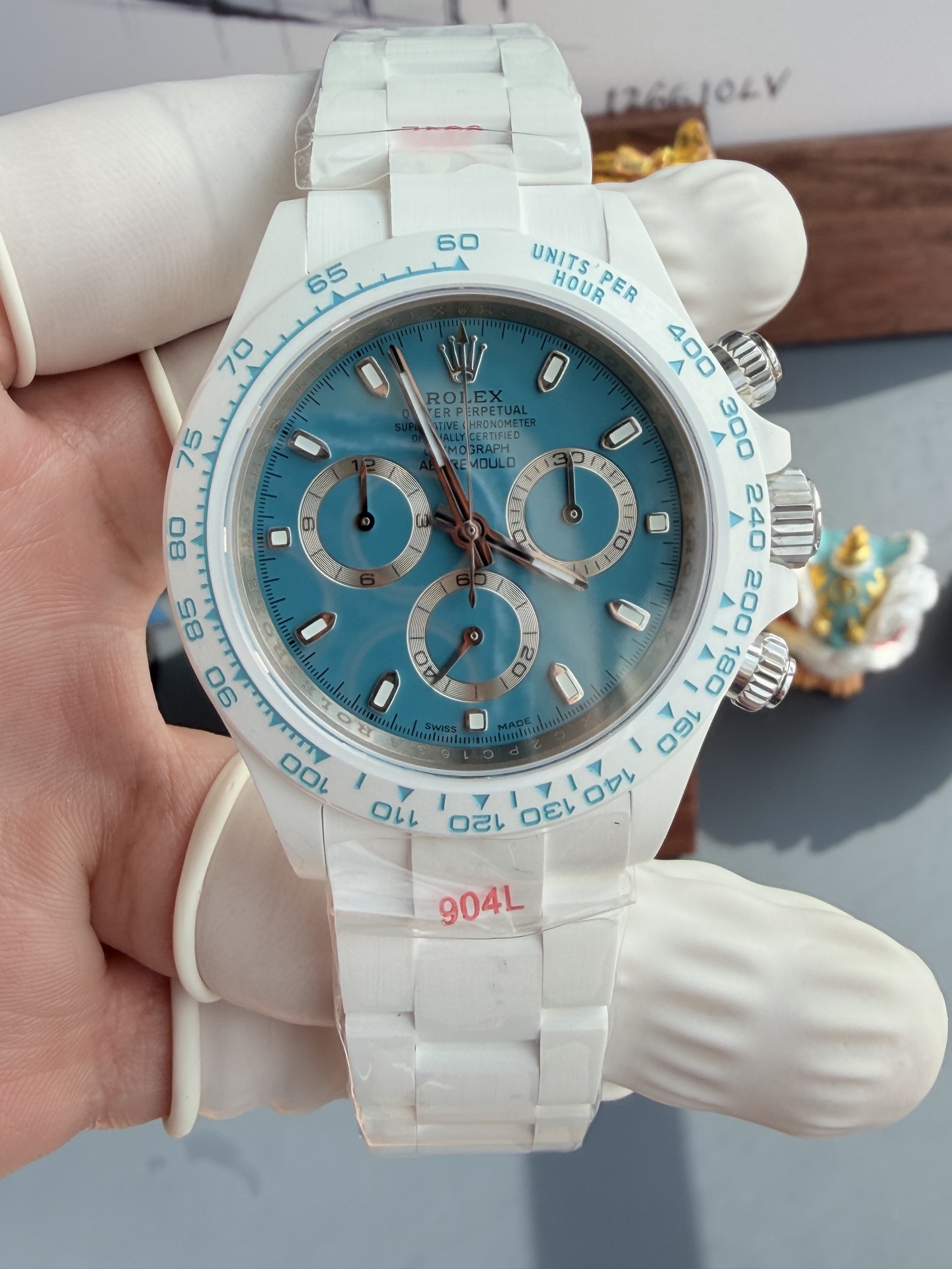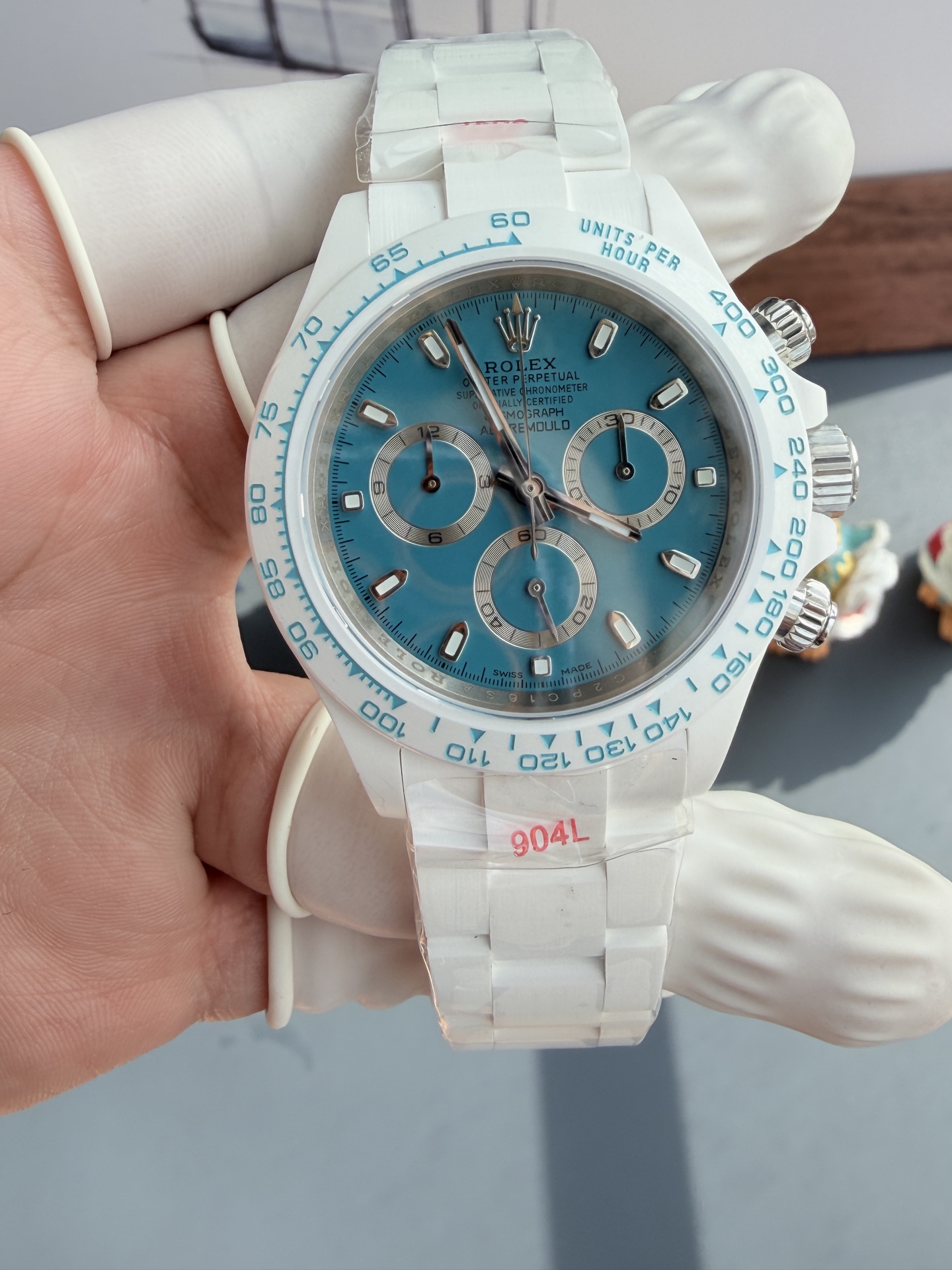 AET REMOULD Rolex Daytona ABU DHABI White Ceramic Blue Dial Best Replica 40mm