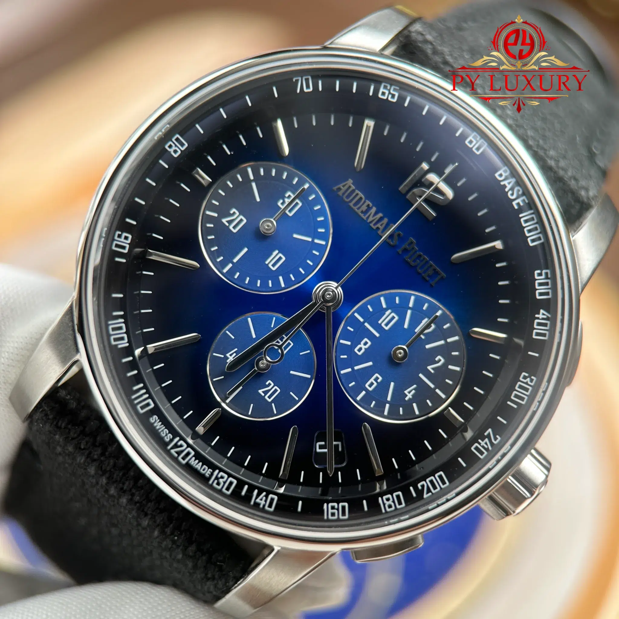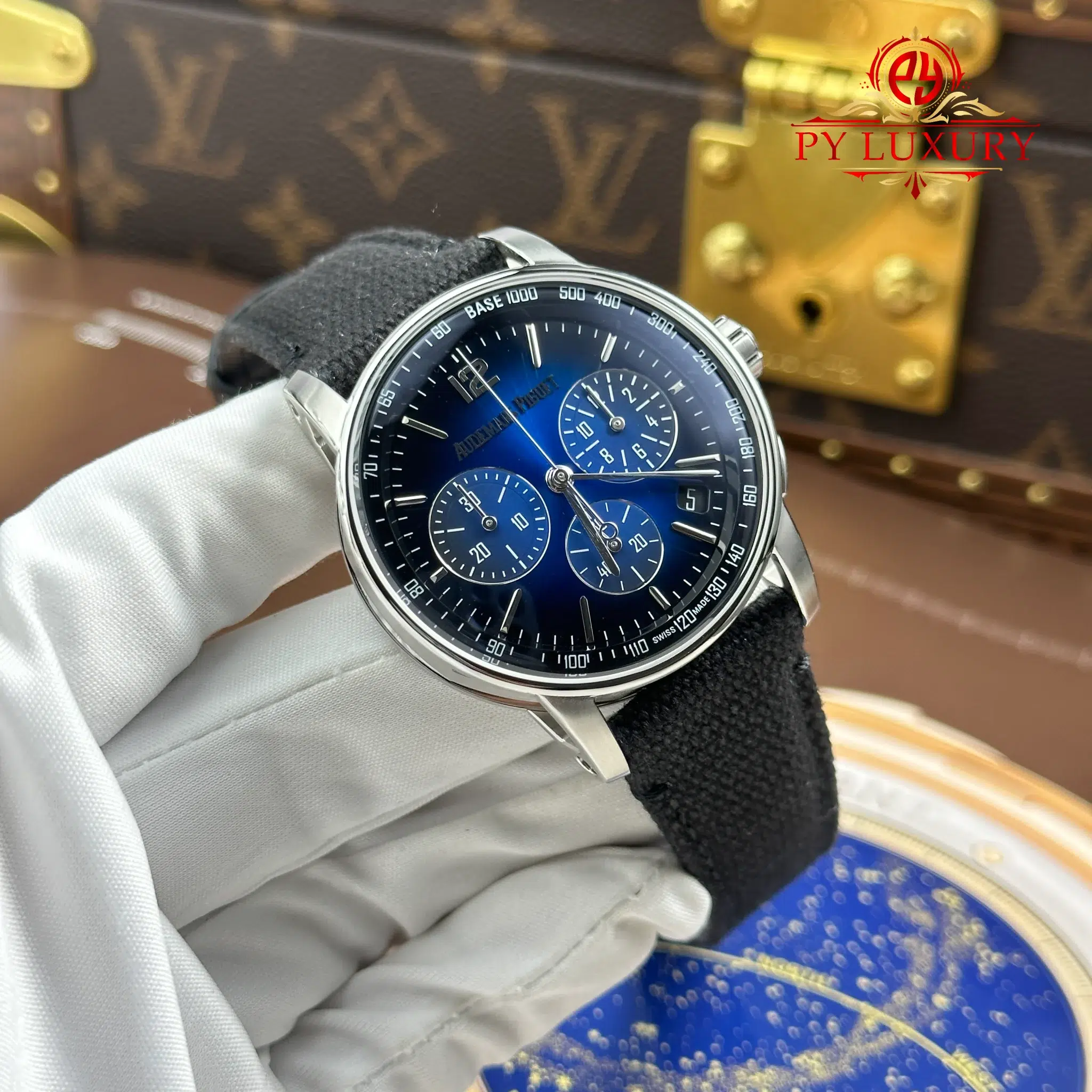 Video of the Audemars Piguet Code 11.59 Chronograph 26393BC Smoked Blue Dial Textile Strap 1:1 Best Replica 41mm from APS Factory: