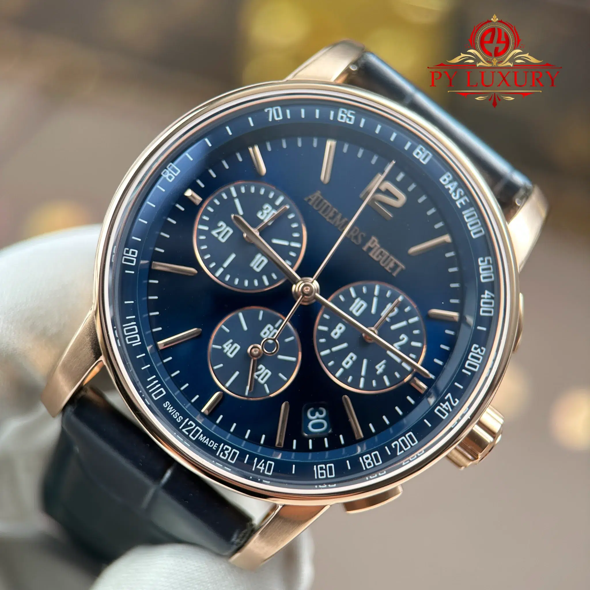 Video of the Audemars Piguet Code 11.59 Chronograph 26393OR Rose Gold Blue Dial Leather Strap 1:1 Best Replica 41mm from APS Factory: