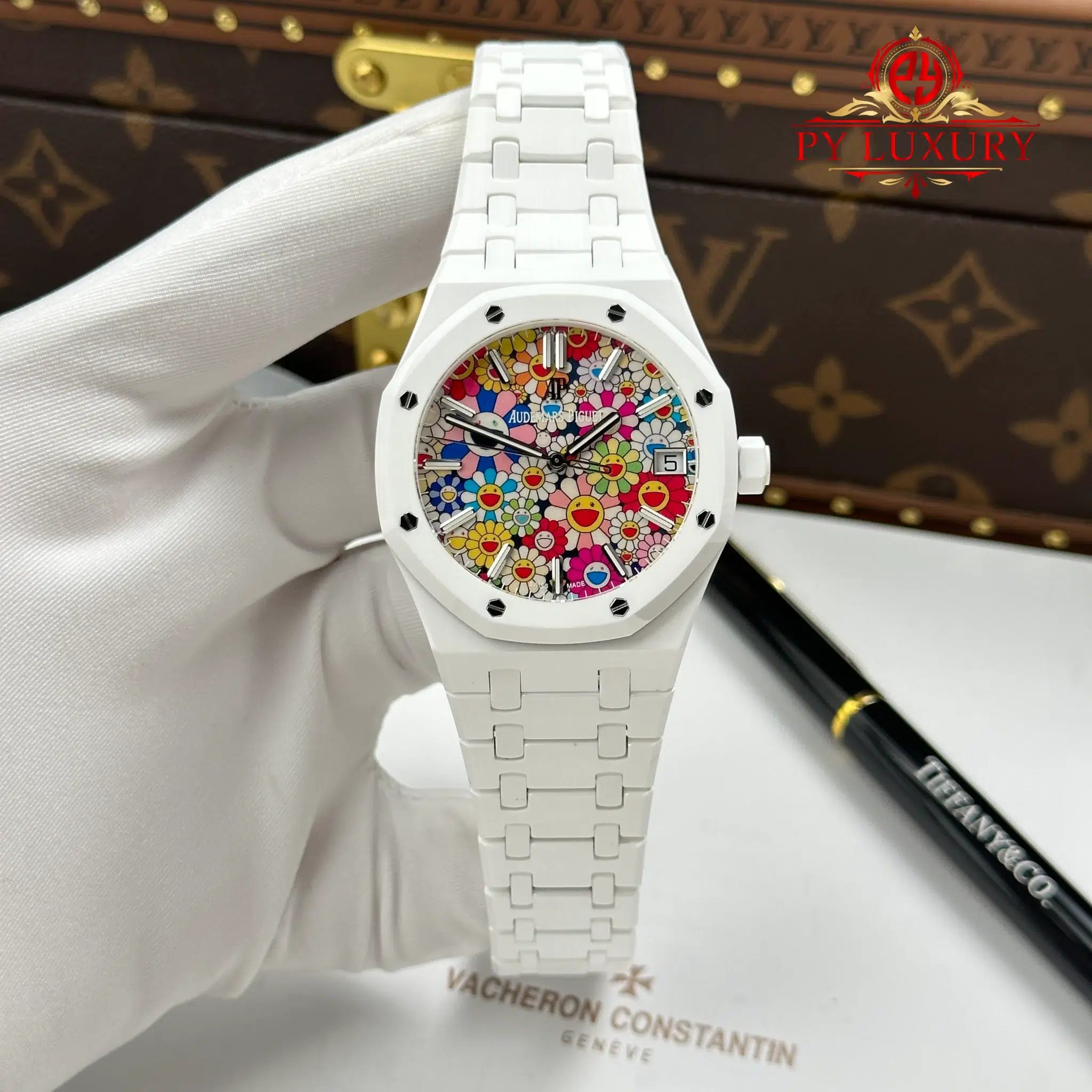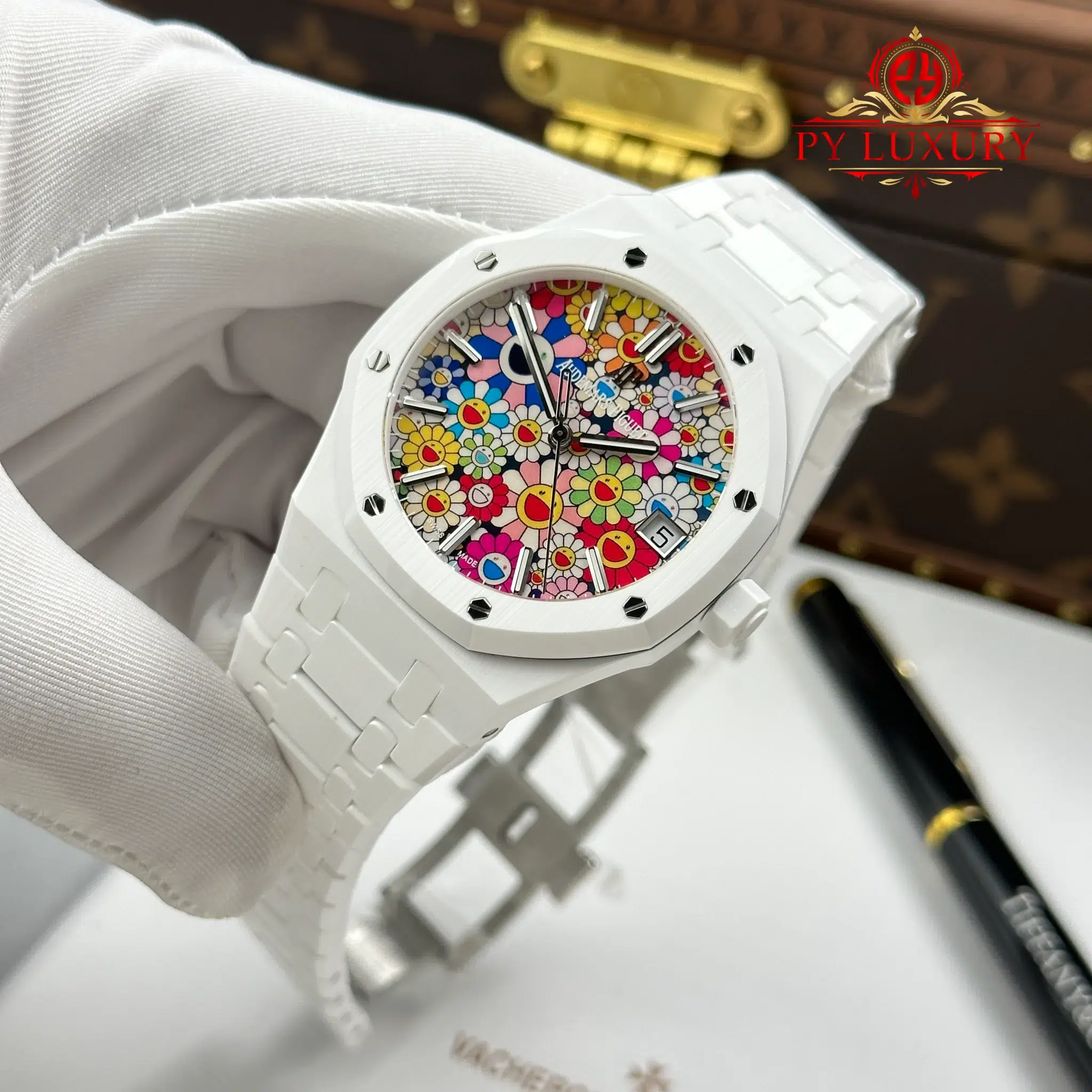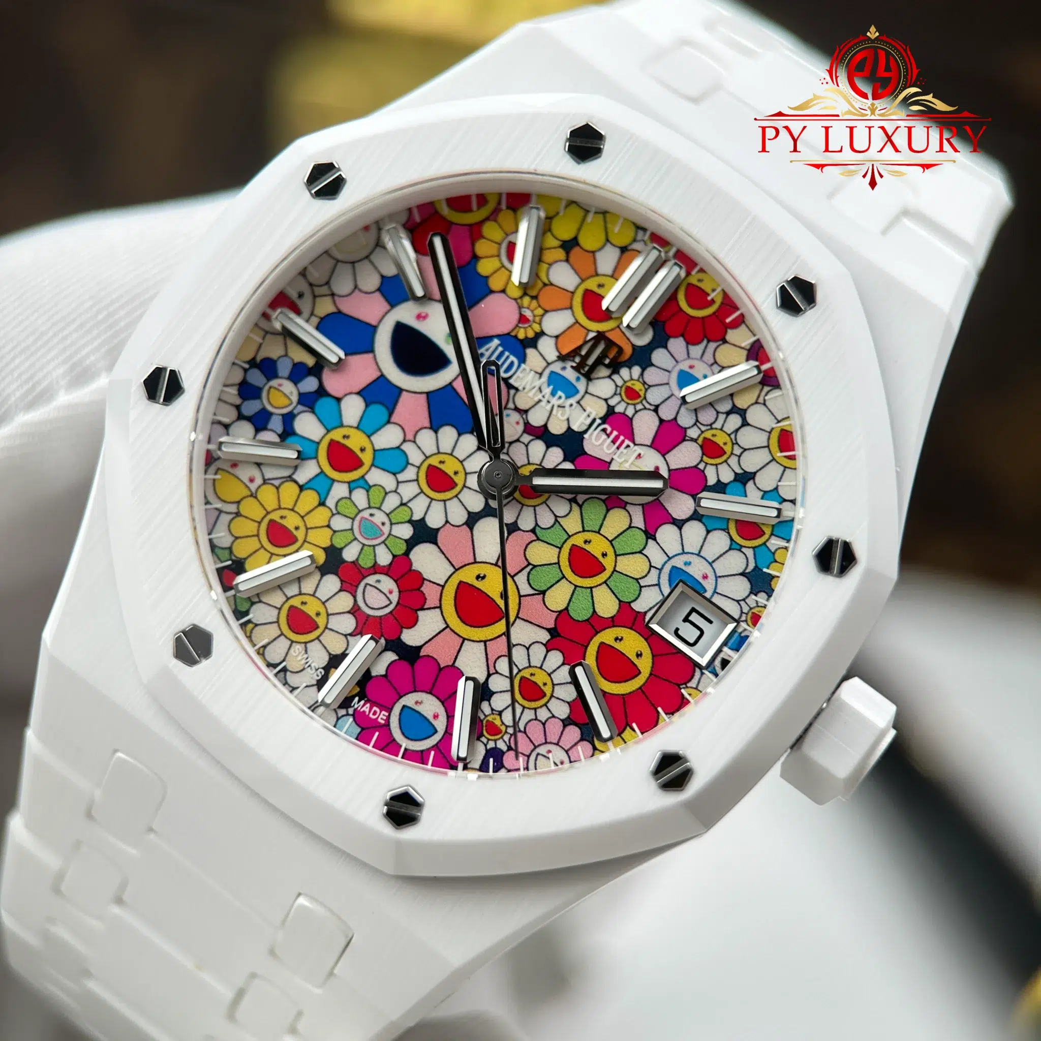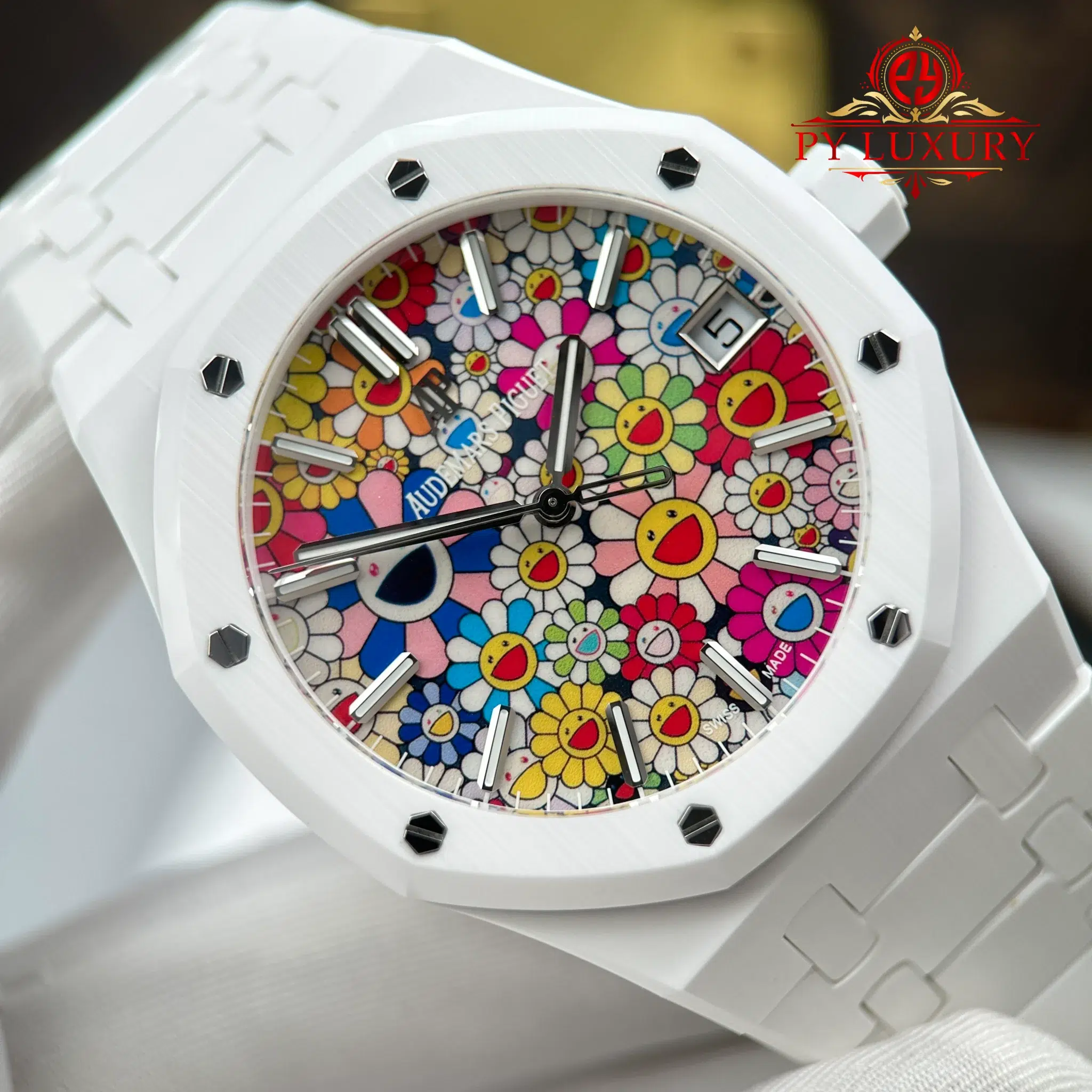 Video of the Audemars Piguet Royal Oak 15500 White Ceramic Sunflower Dial 1:1 Best Replica 41mm from APS Factory at Py-Luxury: