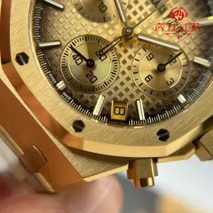 Video of the Audemars Piguet Royal Oak Chronograph 26240BA Yellow Gold Smoked Champagne Dial 1:1 Super Clone 41mm from APS Factory at Py-Luxury:
