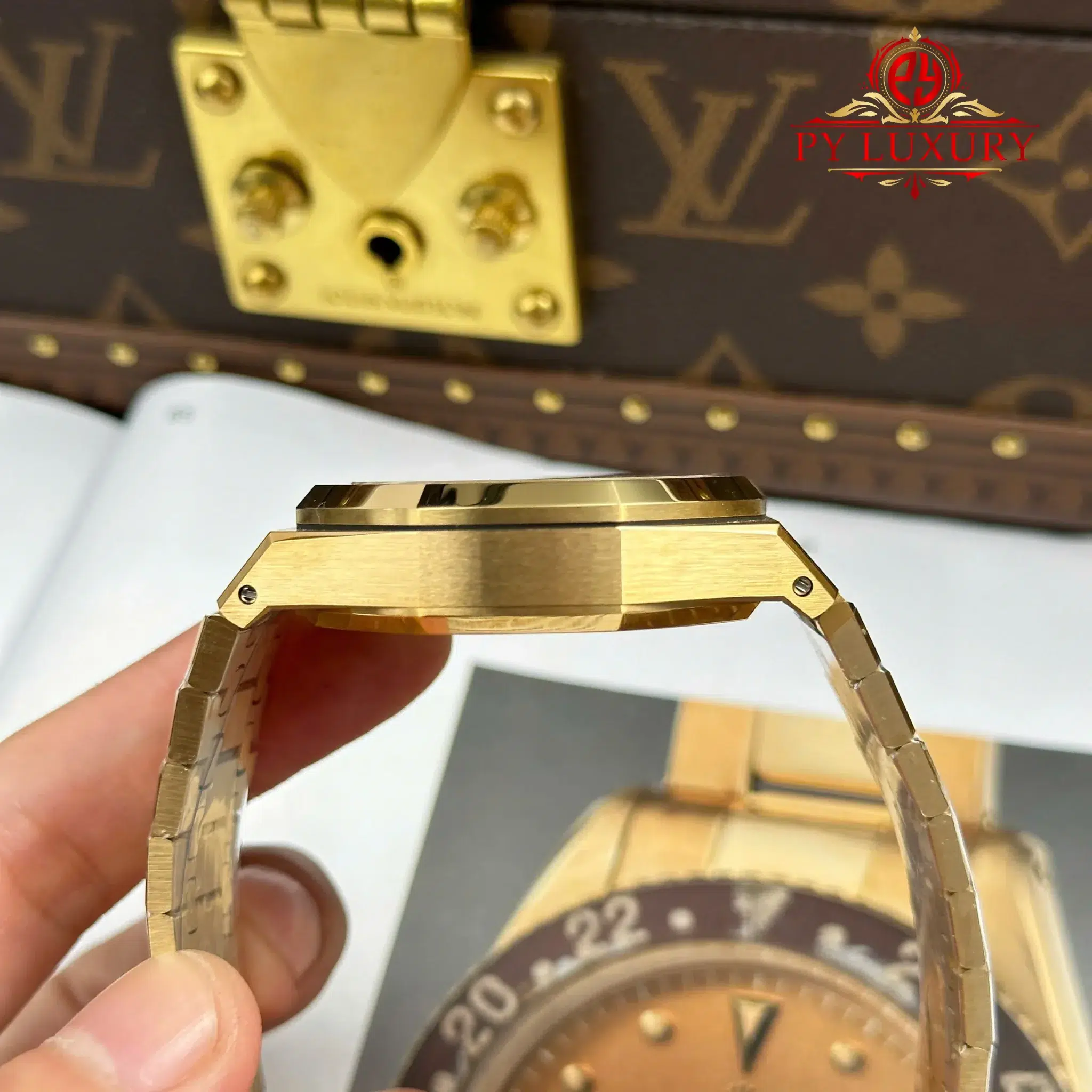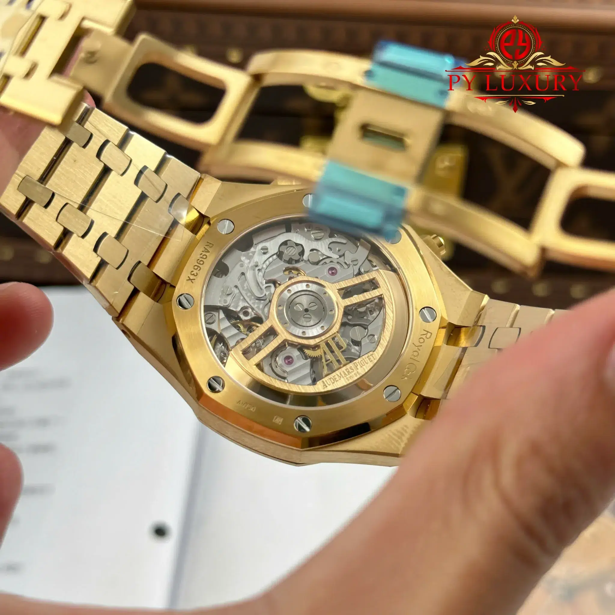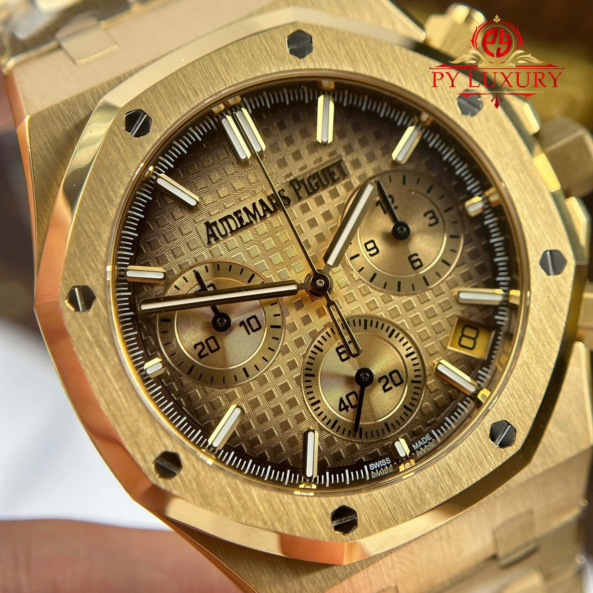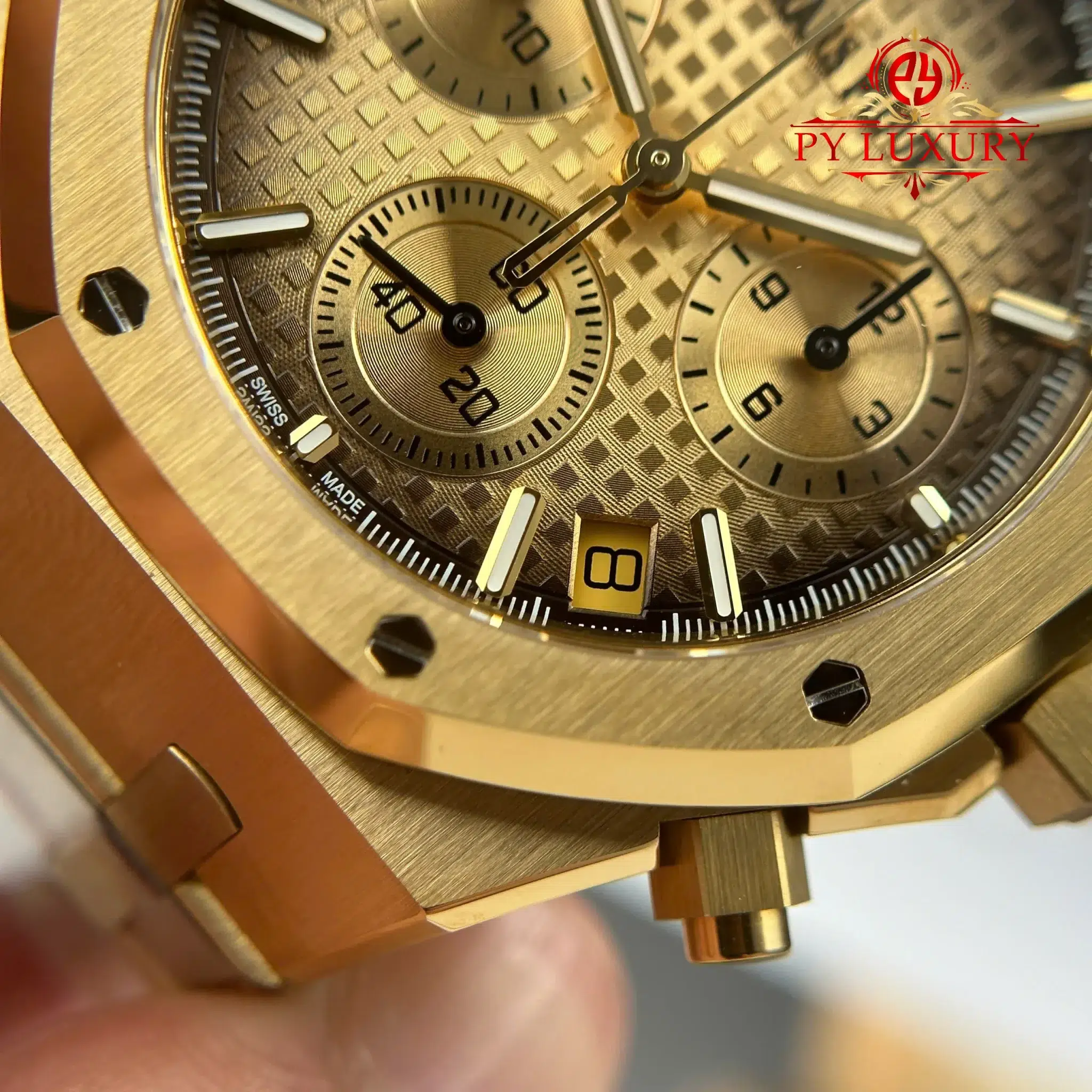 Video of the Audemars Piguet Royal Oak Chronograph 26240BA Yellow Gold Smoked Champagne Dial 1:1 Super Clone 41mm from APS Factory at Py-Luxury: