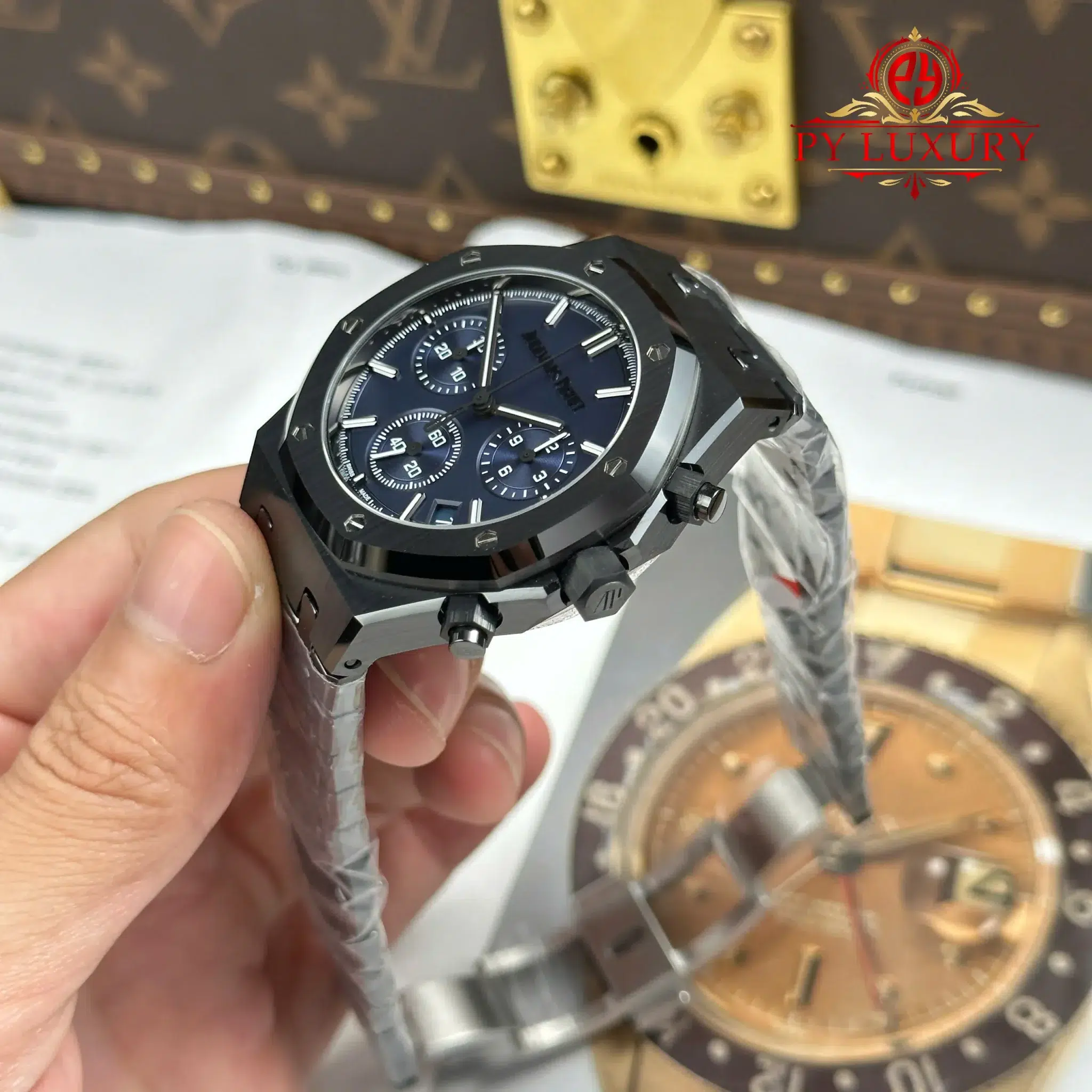Video of the Audemars Piguet Royal Oak Chronograph 26240CE Black Ceramic Blue Dial 1:1 Best Replica Super Clone 41mm from APS Factory at Py-Luxury: