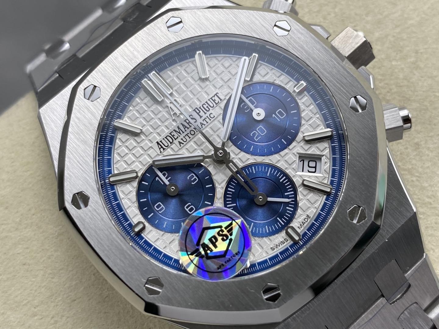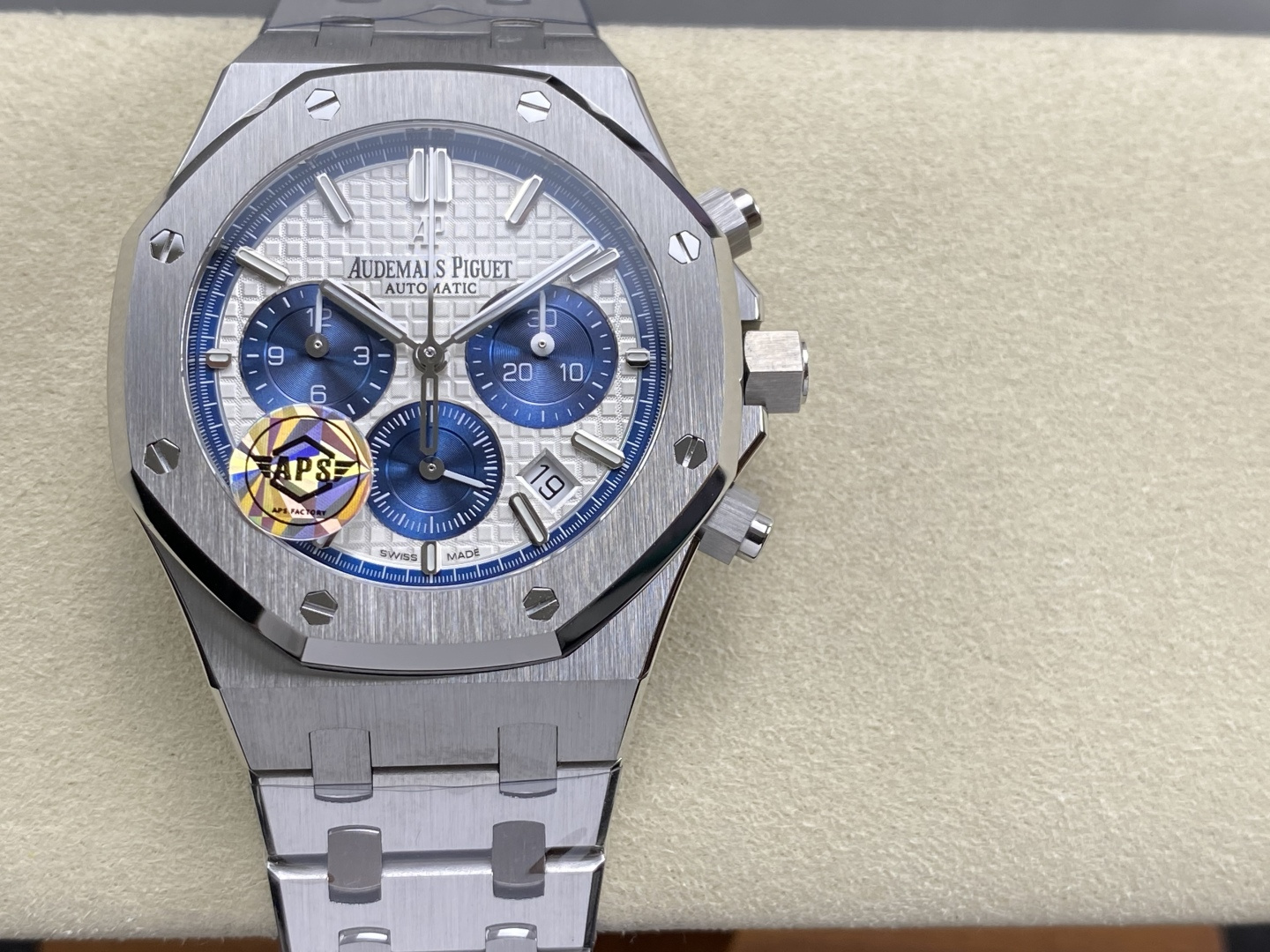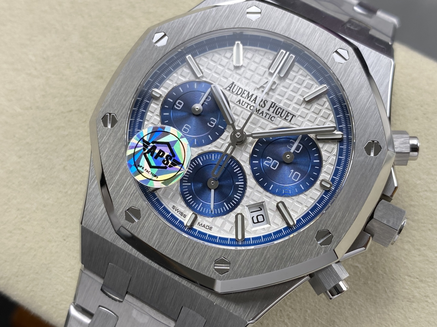 Video of the Audemars Piguet Royal Oak Chronograph 26315ST White Blue Dial 1:1 Best Replica 38mm from APS Factory at Py-Luxury: