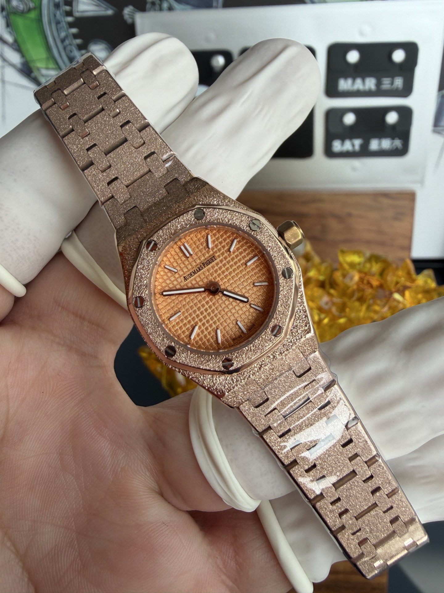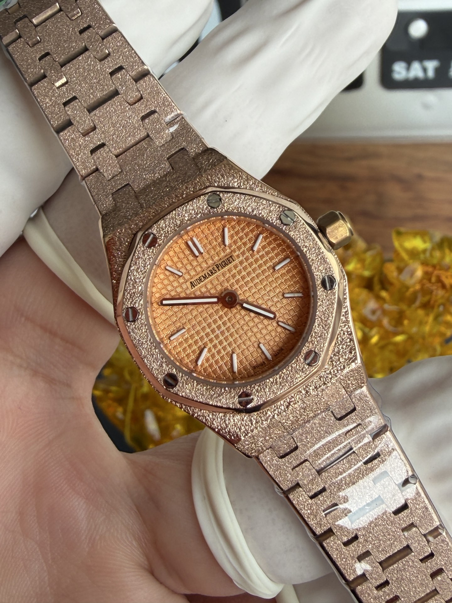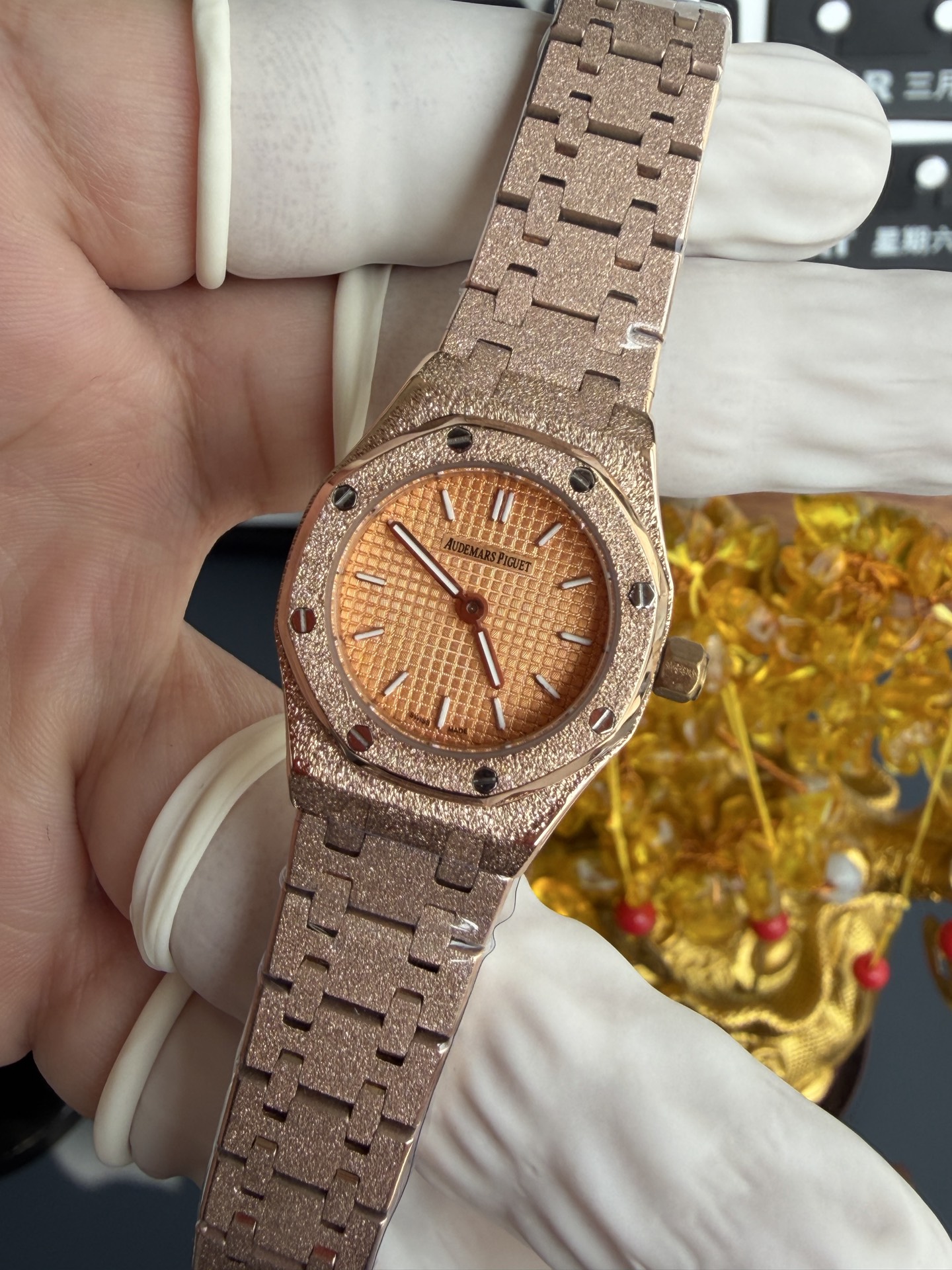 Video of the Audemars Piguet Royal Oak Mini Frosted Rose Gold 67630OR Quartz Best Replica 23mm at Py-Luxury: