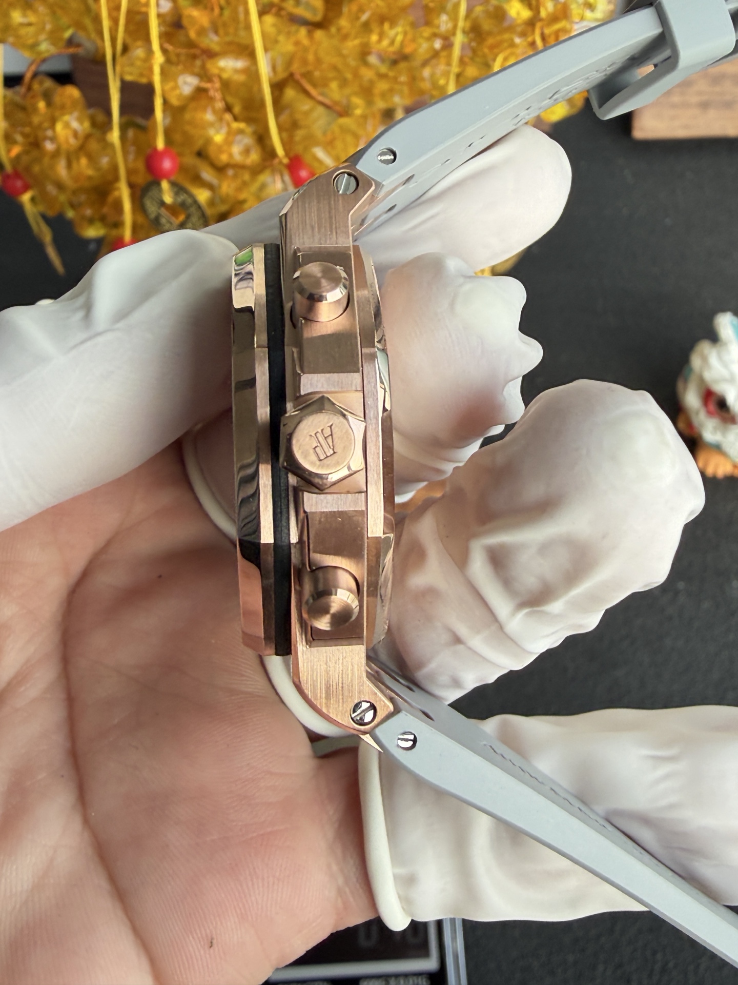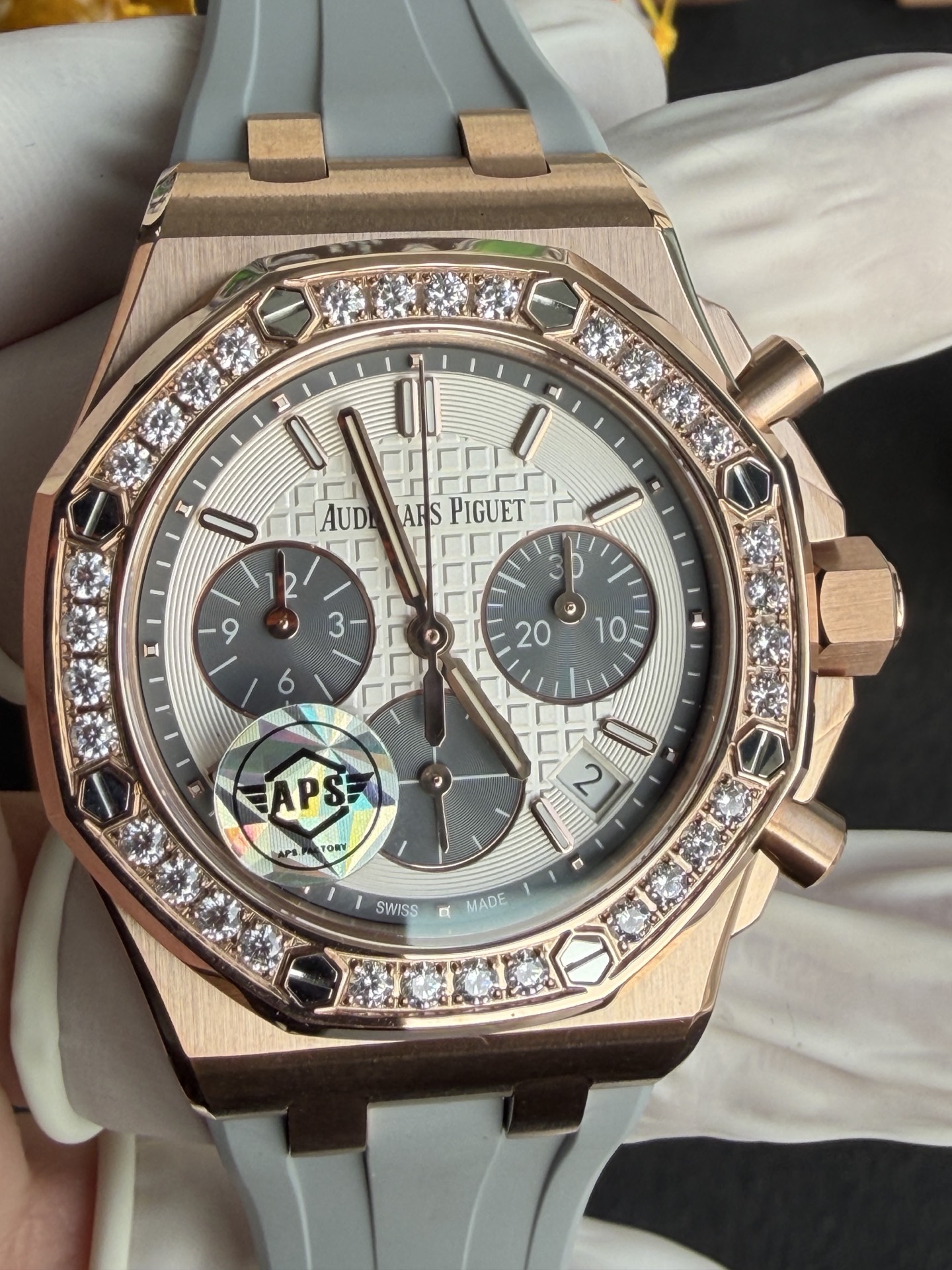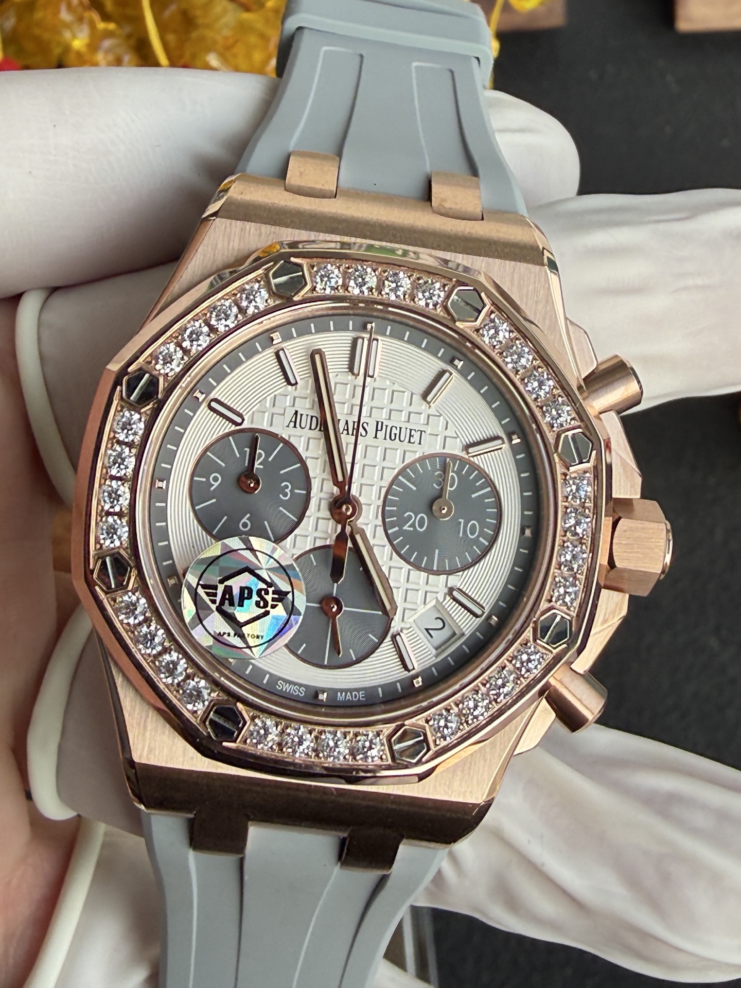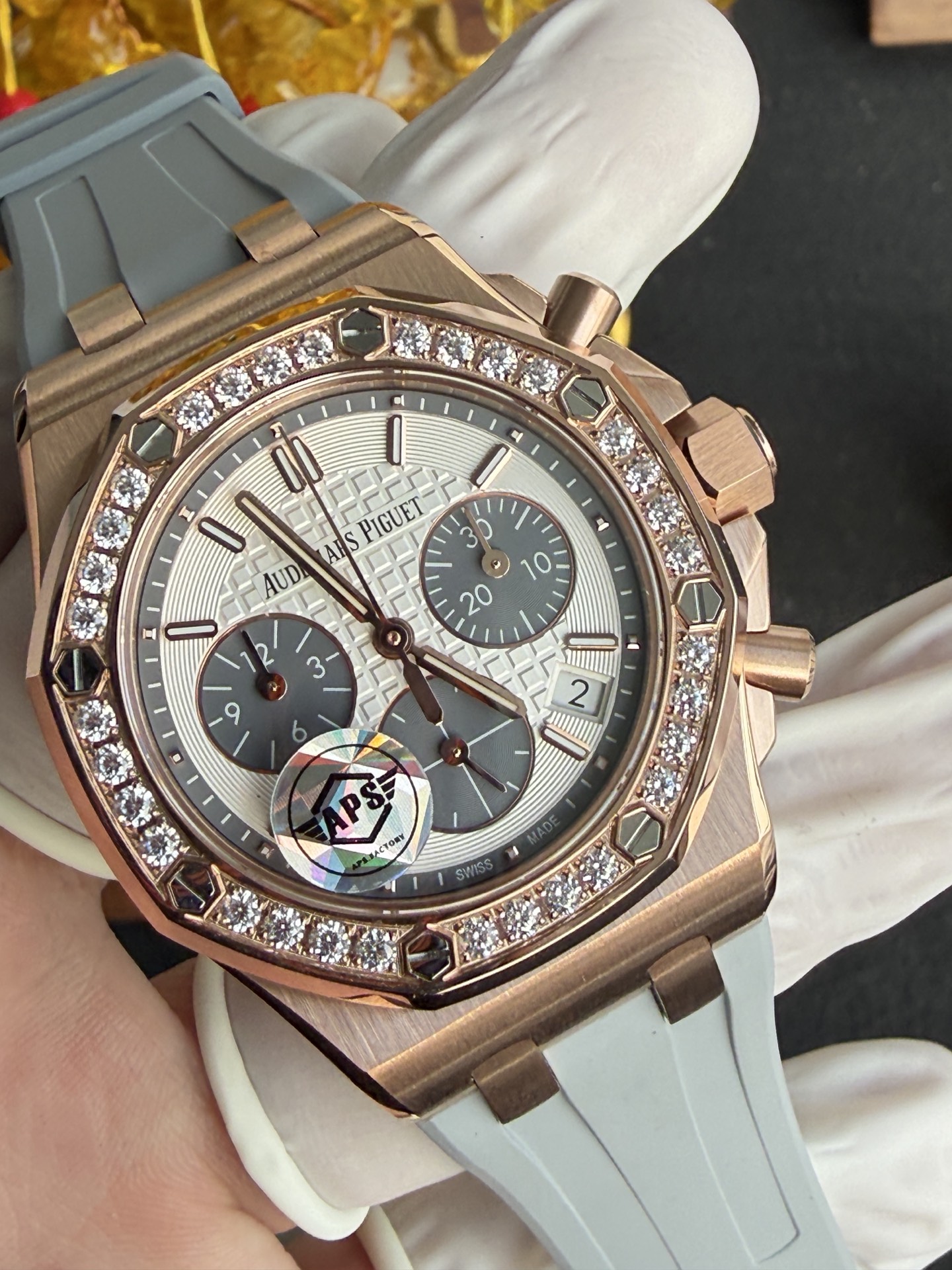 Video of the Audemars Piguet Royal Oak Offshore 26231OR Rose Gold Silver Dial Diamond Bezel 1:1 Best Replica 37mm from APS Factory at Py-Luxury: