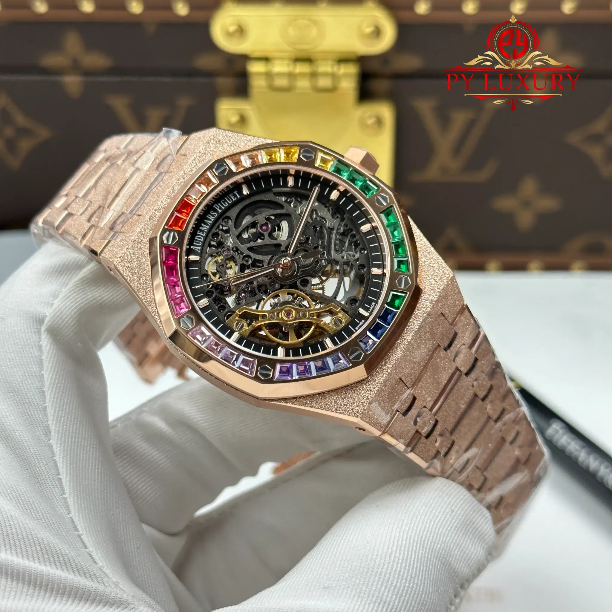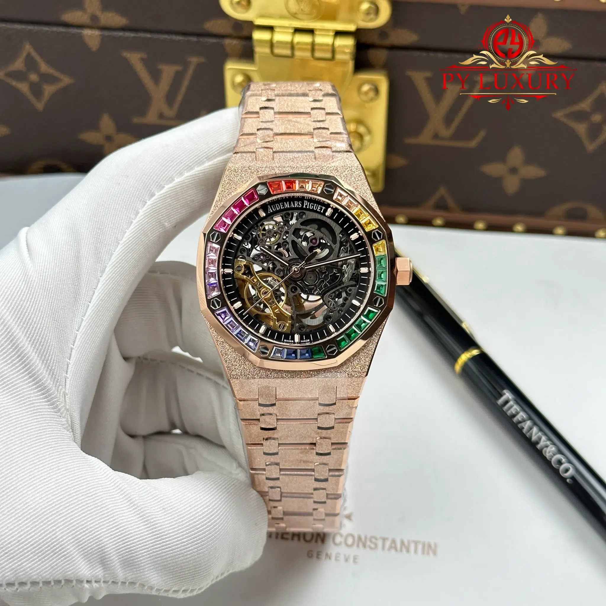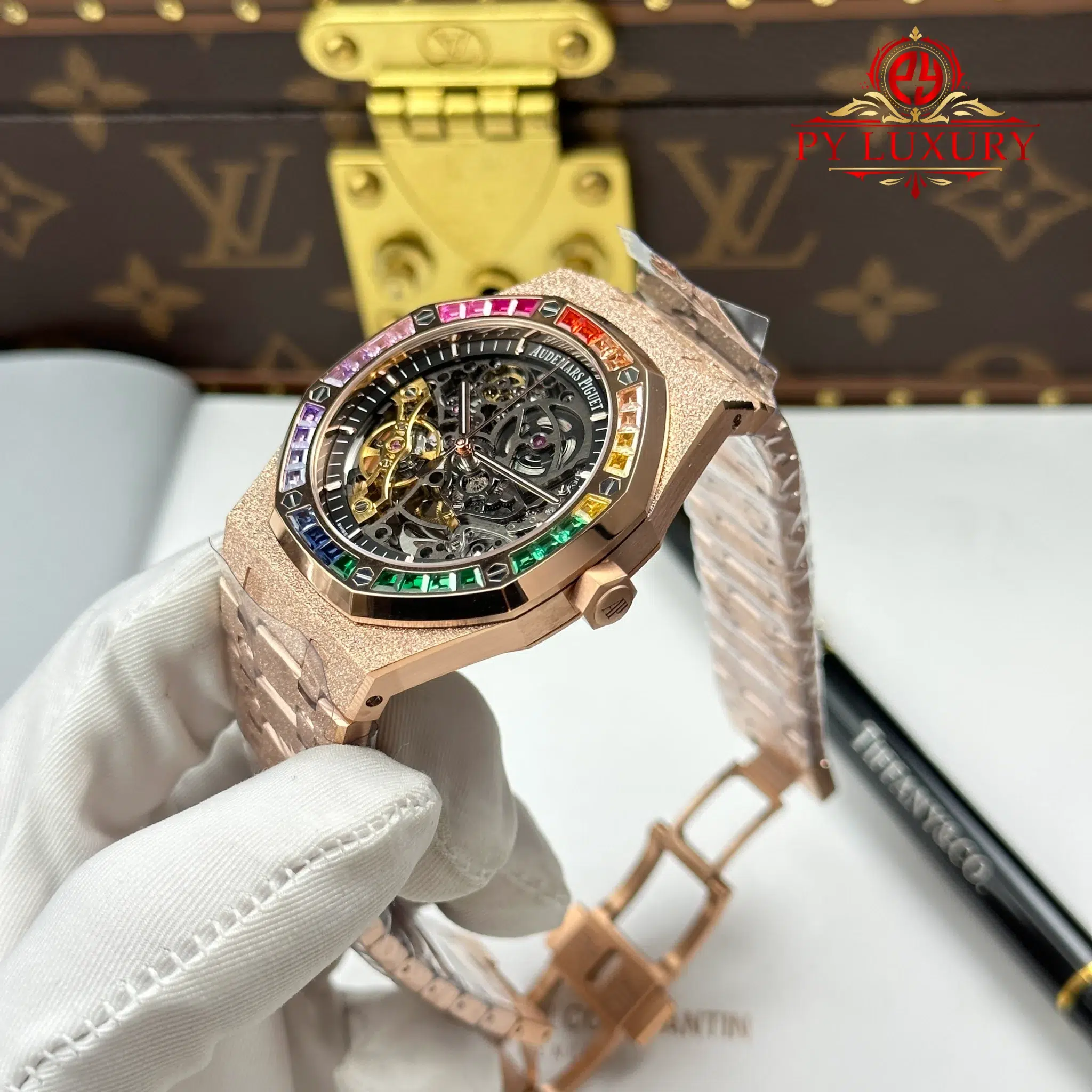 Audemars Piguet Royal Oak Openworked Rainbow 15412OR Frosted Rose Gold Best Replica THB 41mm
