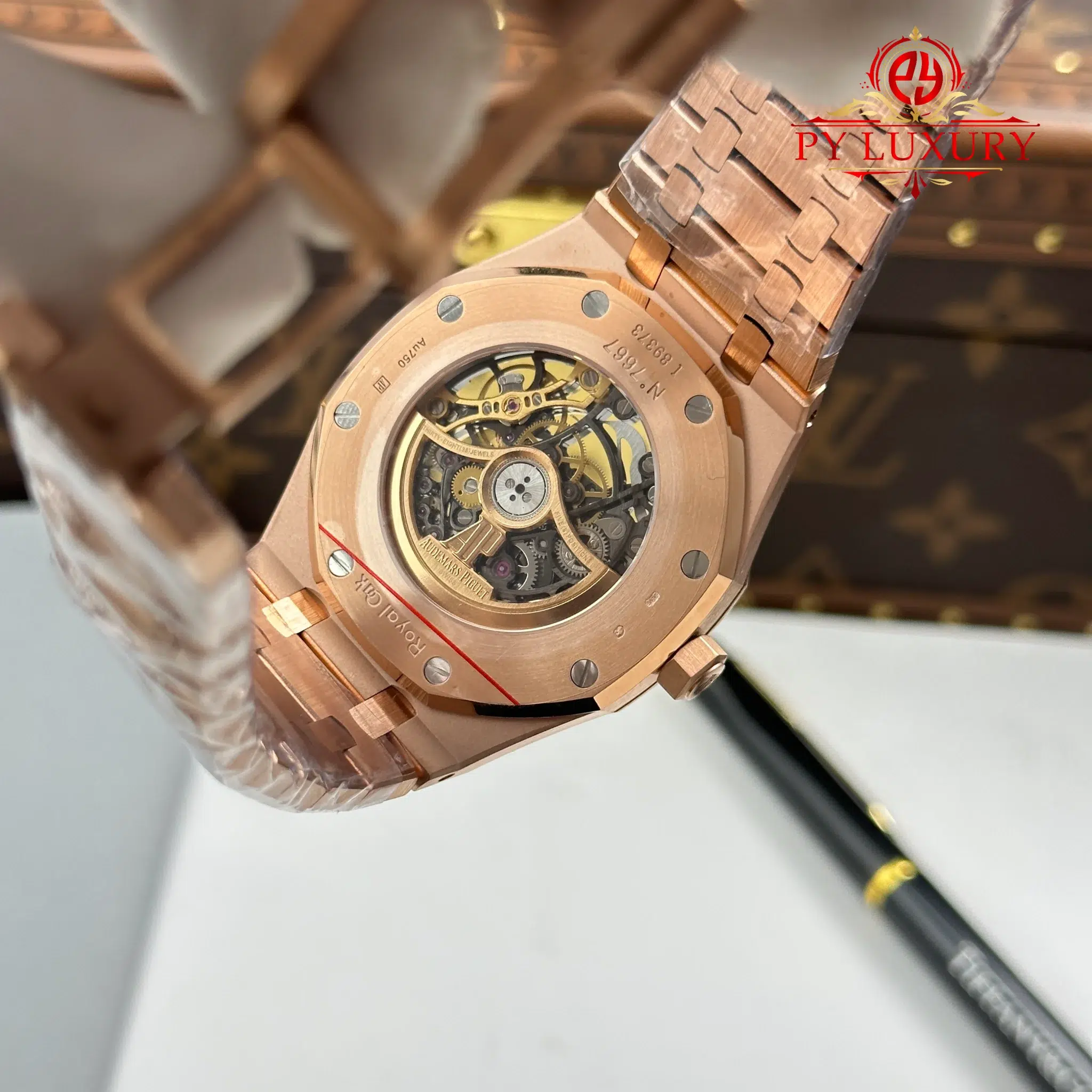Video of the Audemars Piguet Royal Oak Openworked Rainbow 15412OR Frosted Rose Gold Best Replica 41mm from THB Factory at Py-Luxury: