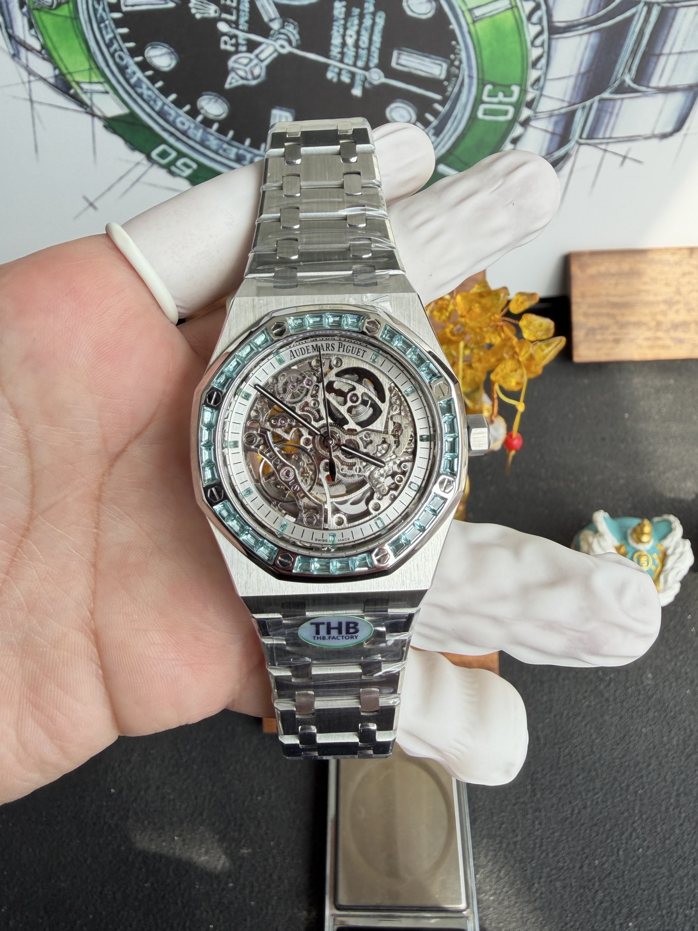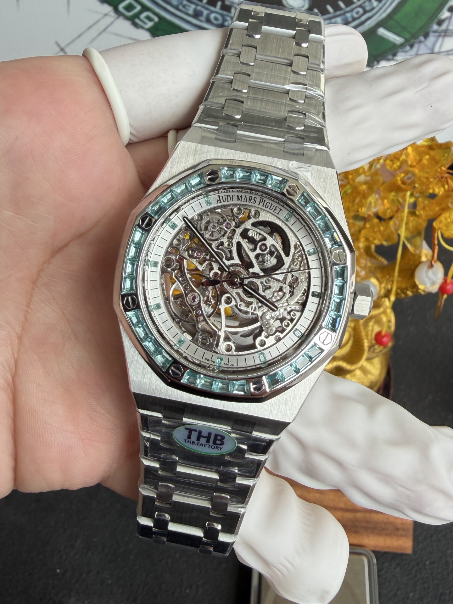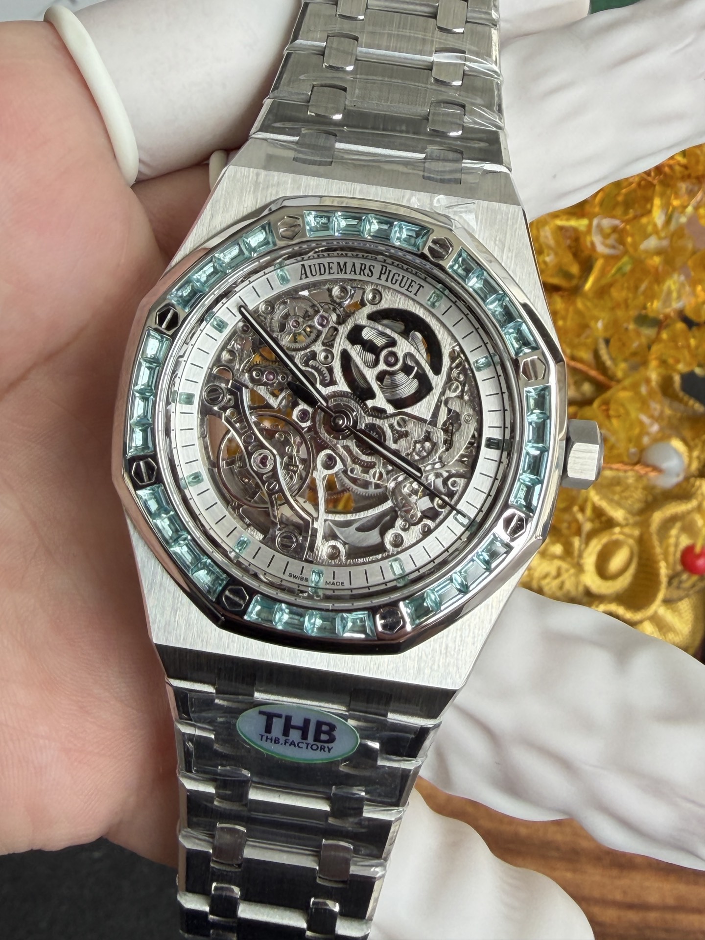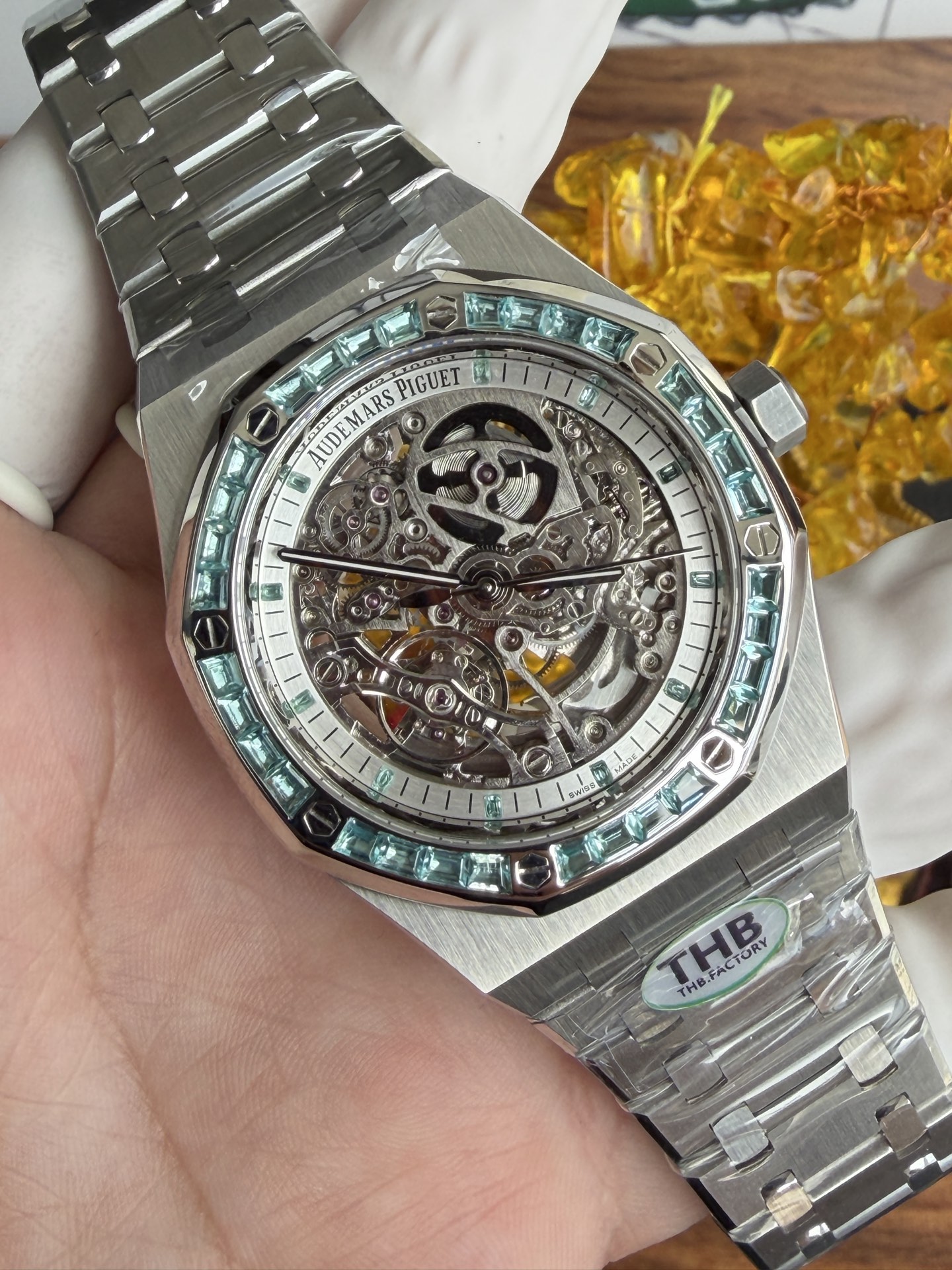 Video of the Audemars Piguet Royal Oak Skeleton 15412BC.Т0.122080BC.01 Custom Lab-grown Swiss Topaz Stones Best Replica 41mm: