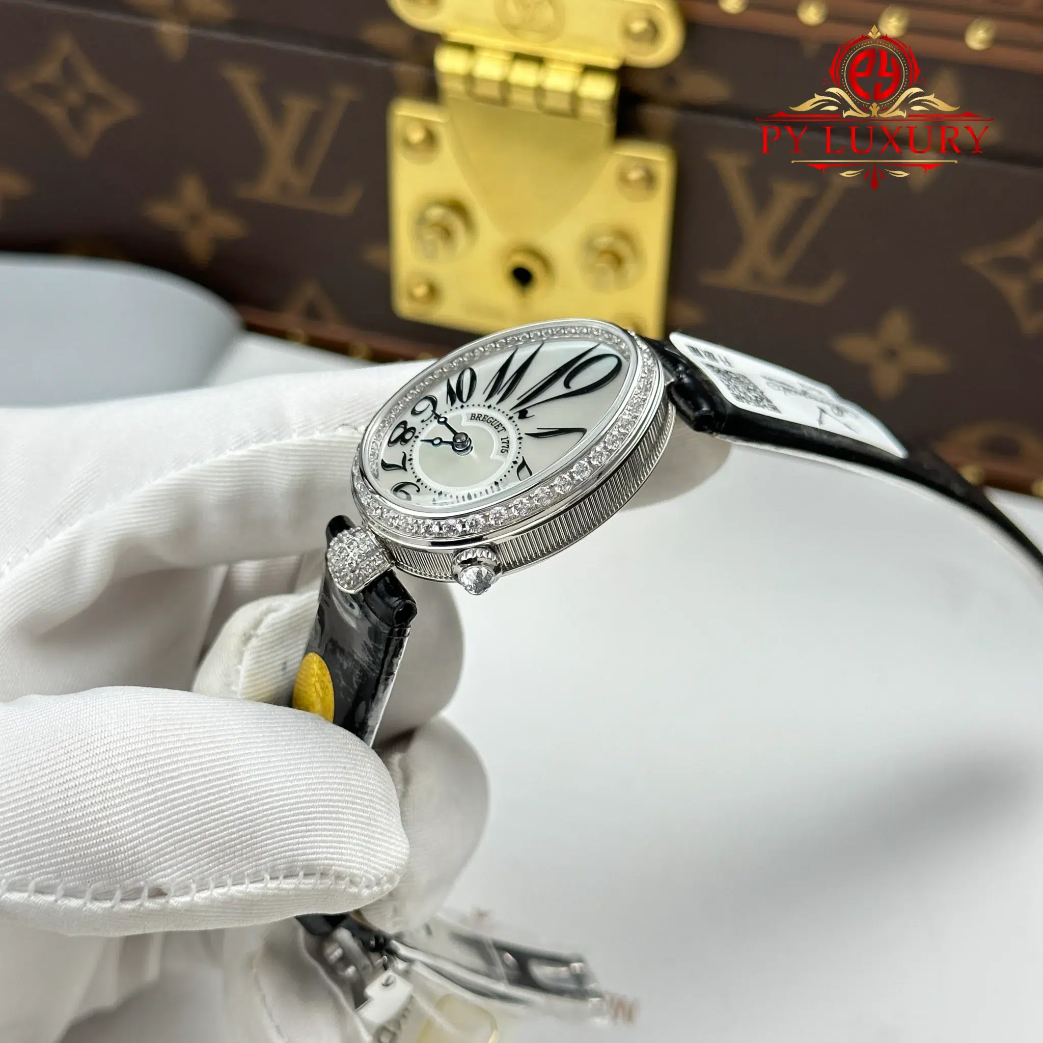 Video of the Breguet Reine de Naples 8918BB Mother of Pearl Dial Diamond Bezel Leather Strap 1:1 Best Replica 36mm at Py-Luxury: