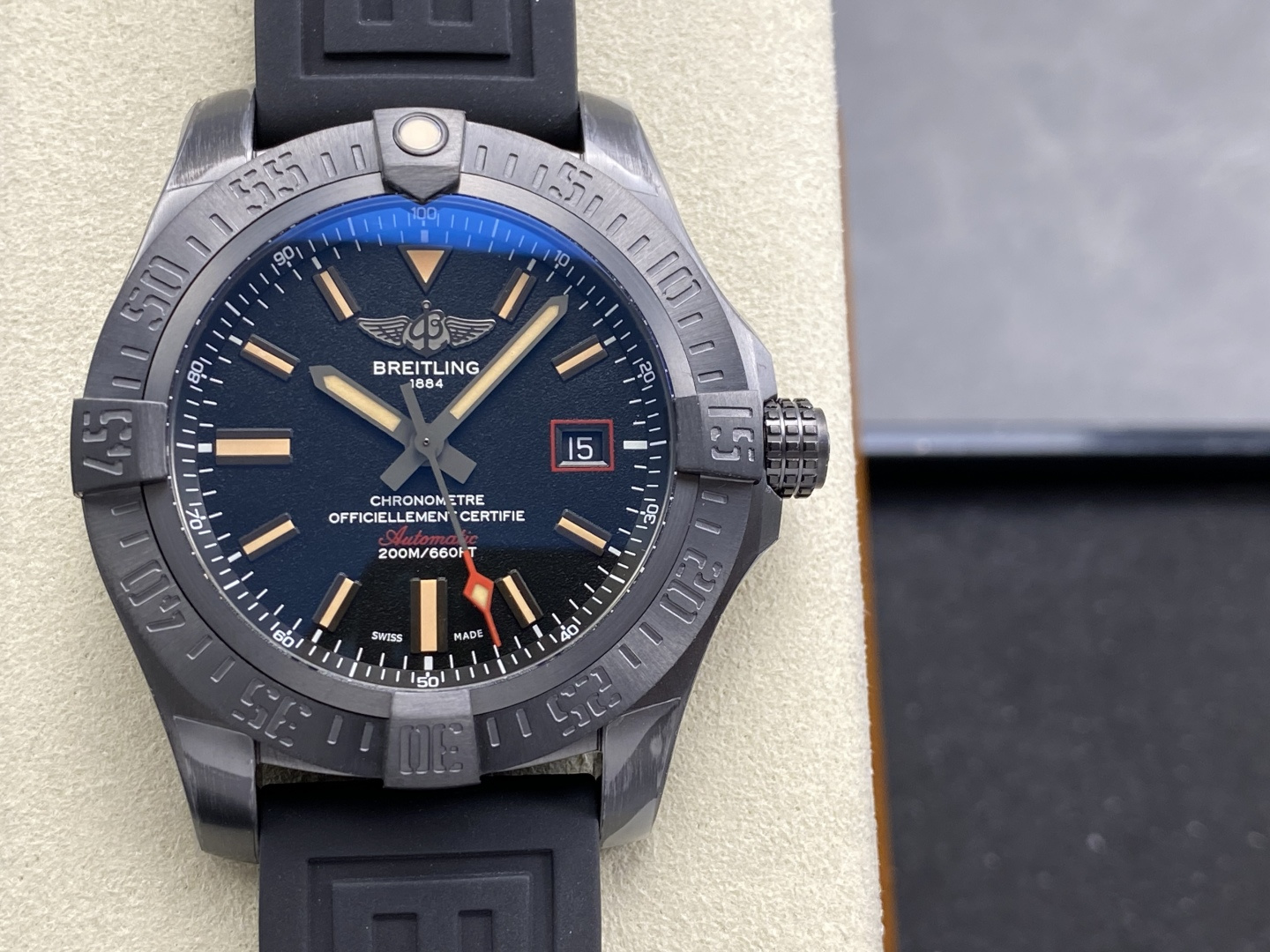 Breitling Avenger Blackbird Titanium Black Dial Rubber Strap Best Replica GF 44mm