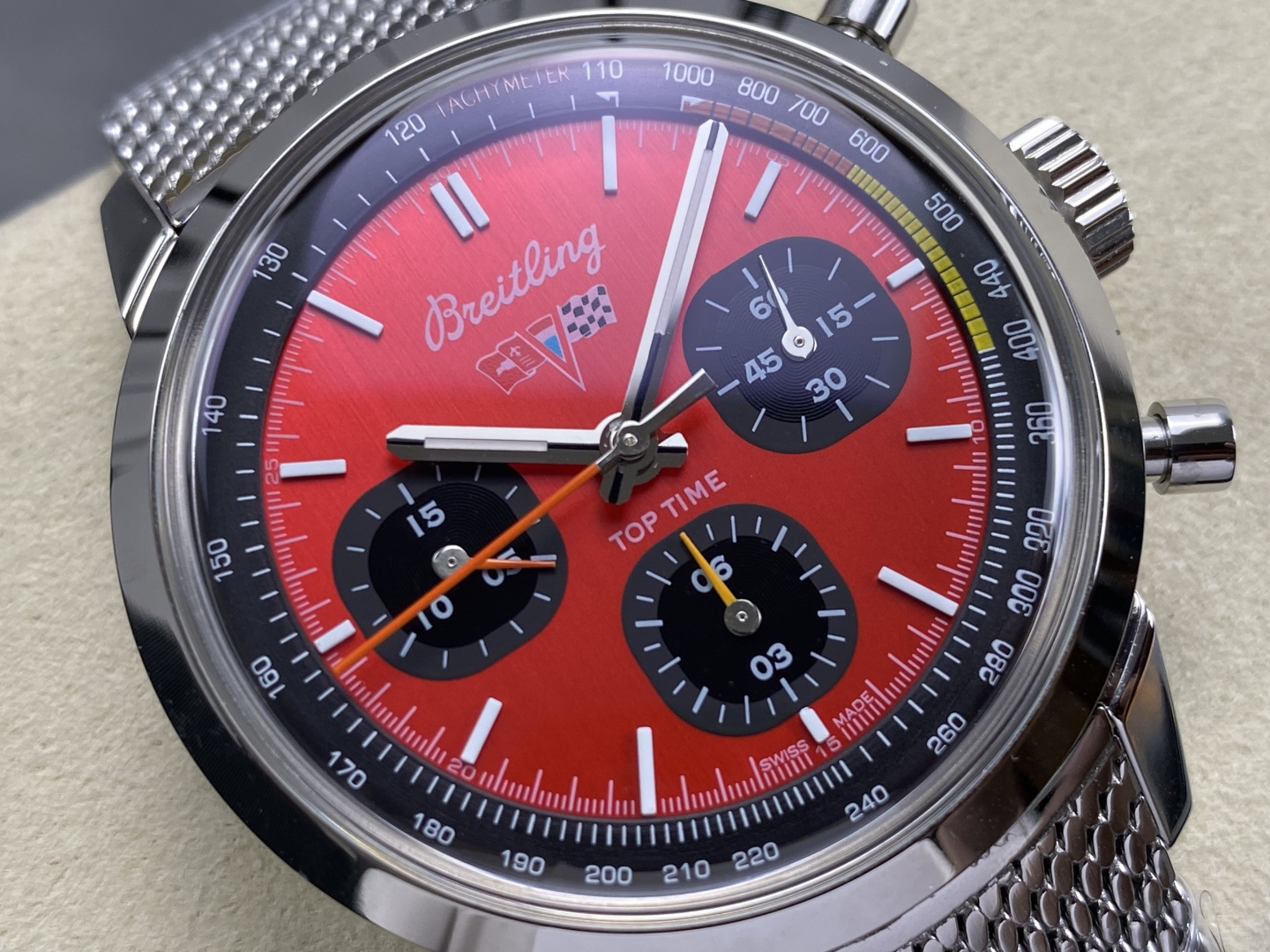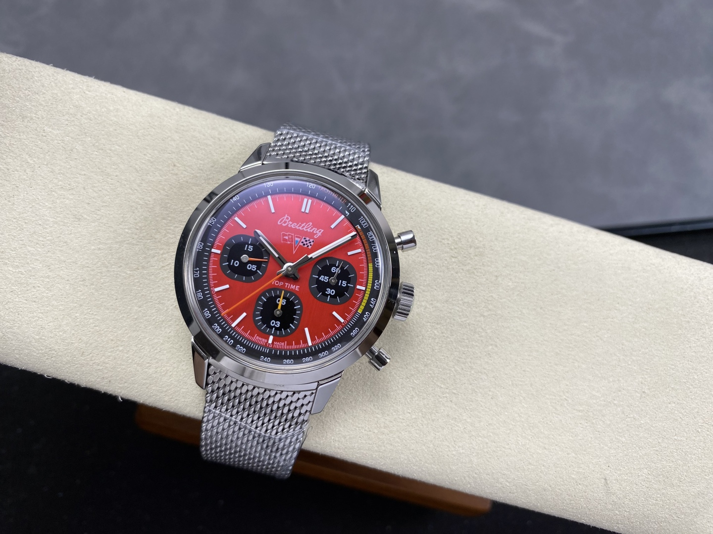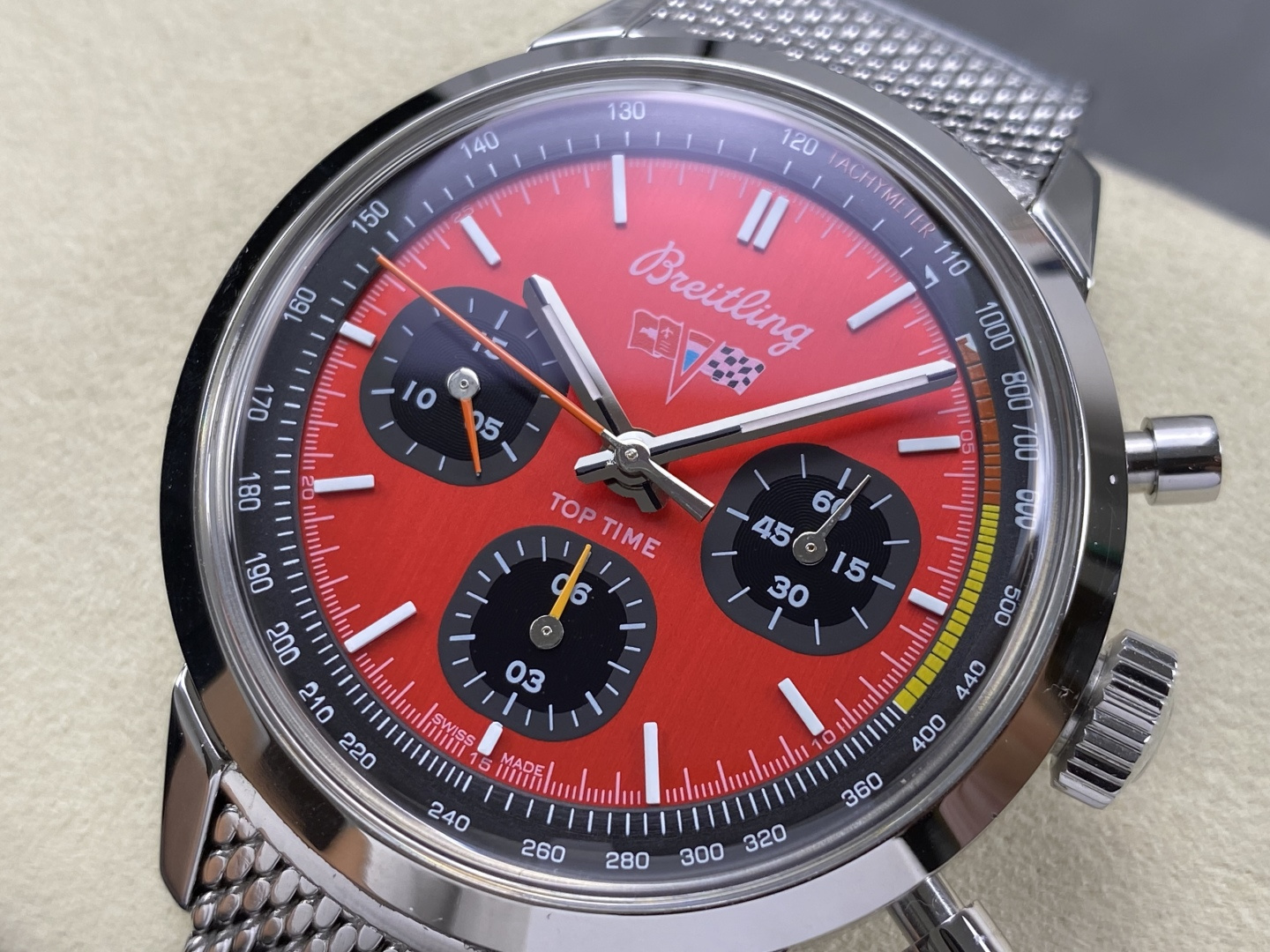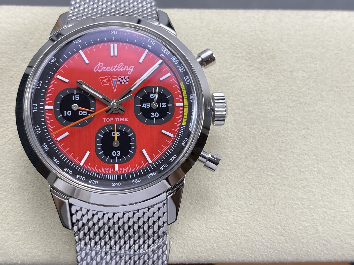 Video of the Breitling Top Time B01 Chevrolet Corvette AB01761A1K1A1 Red Dial Metal Bracelet Best Replica 41mm from BLS Factory at Py-Luxury: