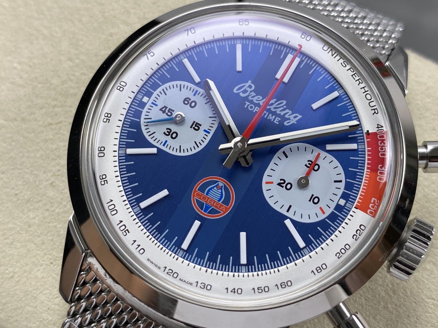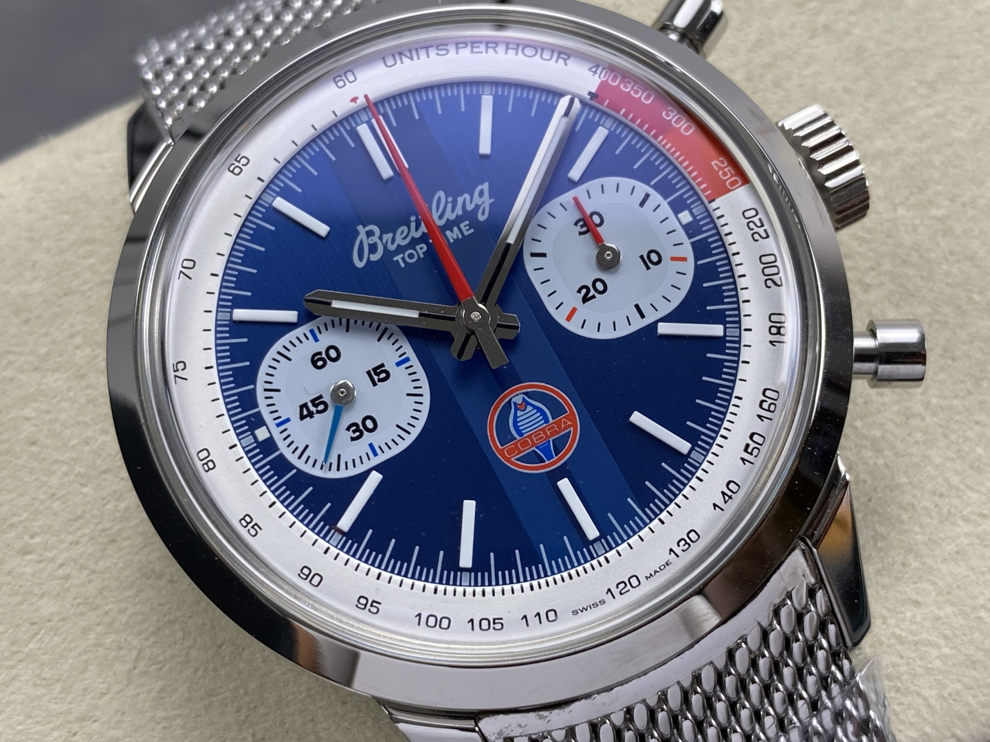 Video of the Breitling Top Time B01 Shelby Cobra AB01763A1C1A1 Blue Dial Metal Bracelet Best Replica 41mm from BLS Factory at Py-Luxury: