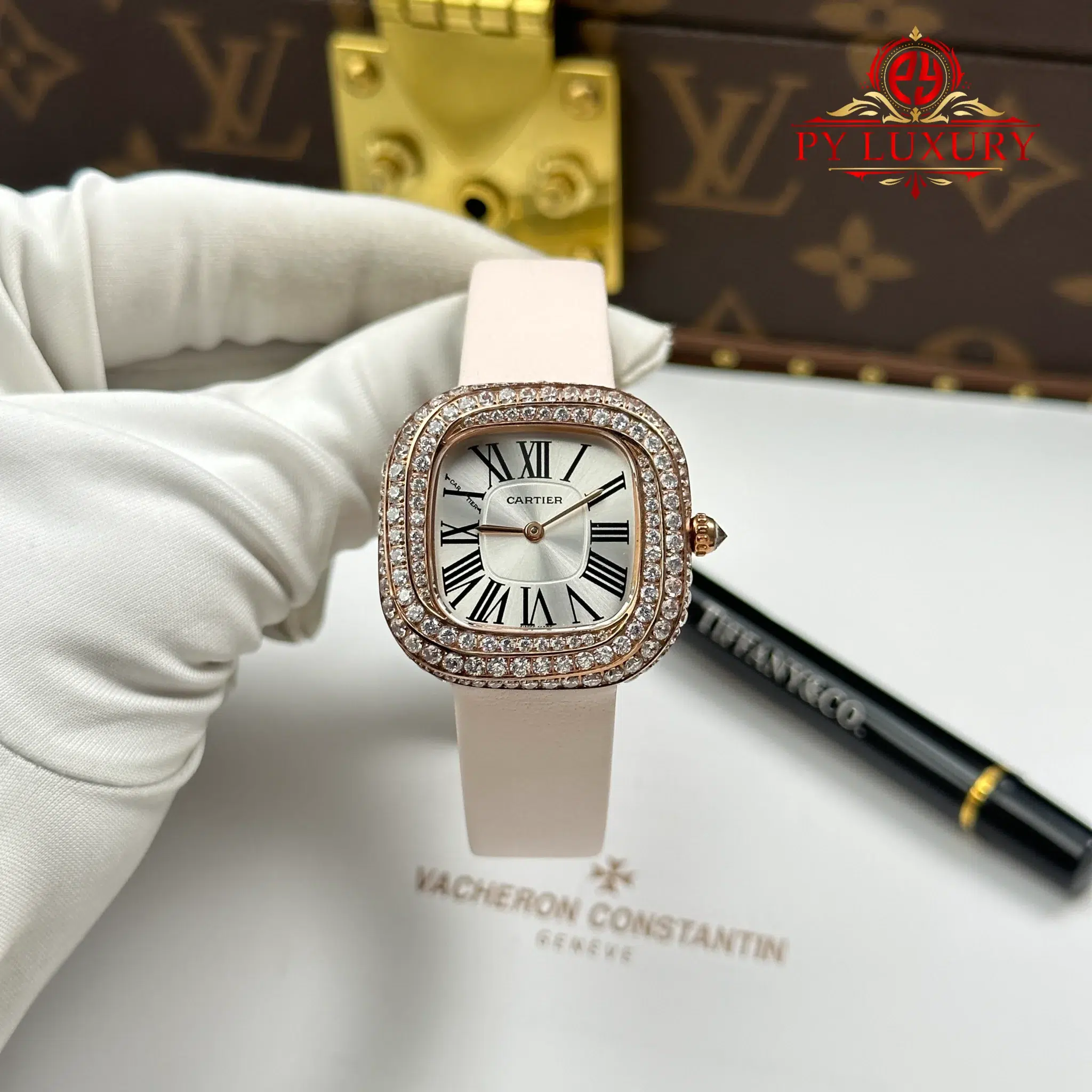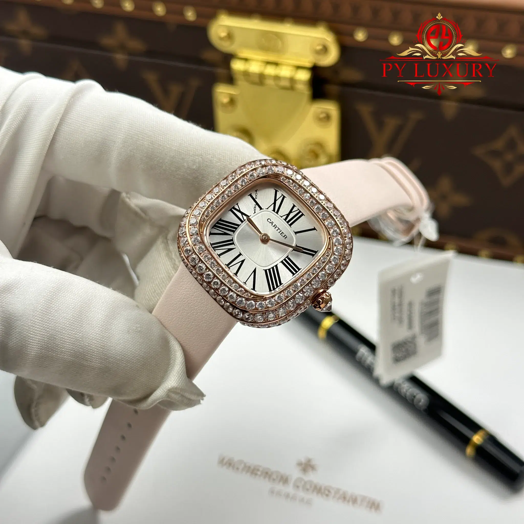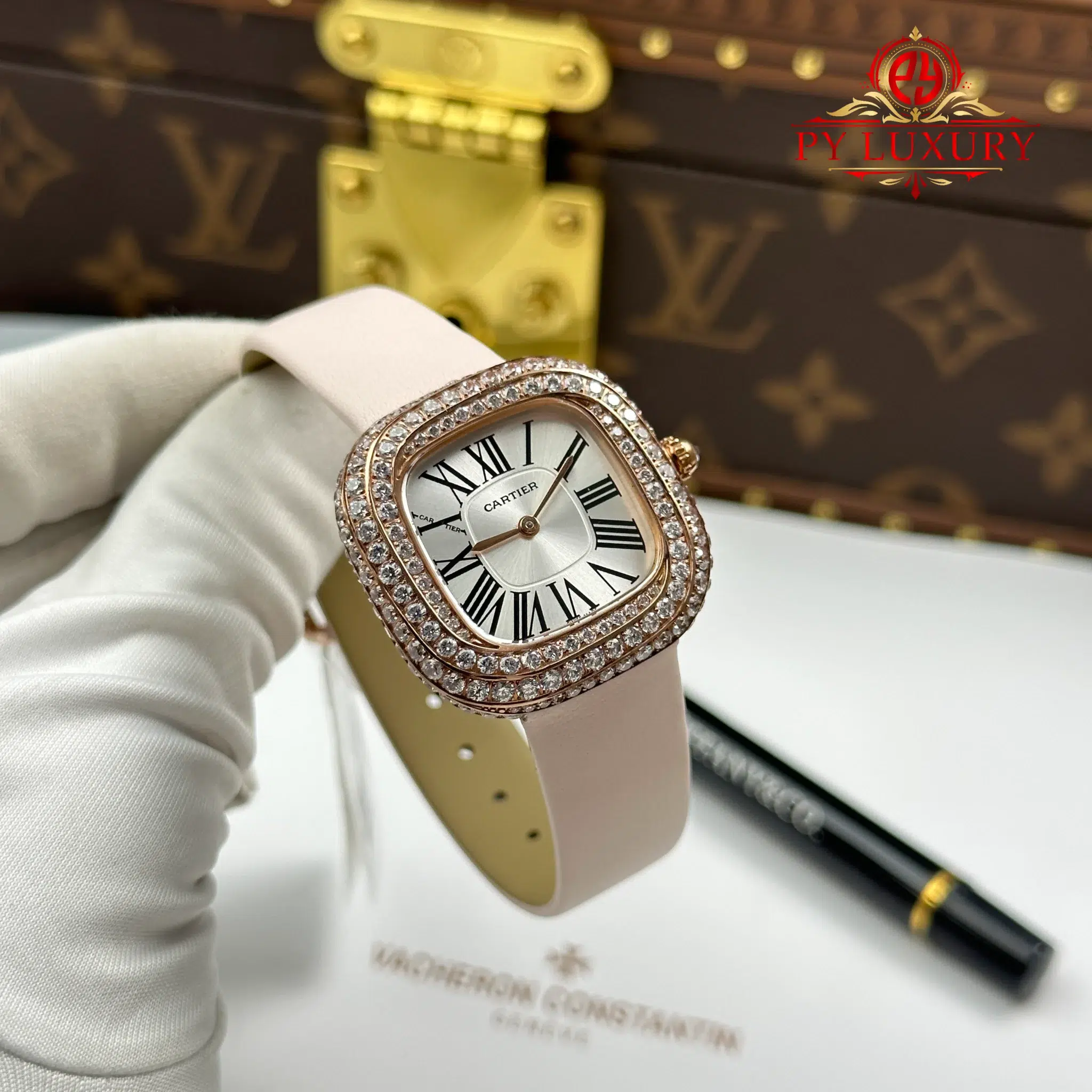 Video of the Cartier Coussin Medium Model WJCS0005 Rose Gold Spiral-set Diamonds Silver Dial Best Replica 30.4mm x 31.1mm: