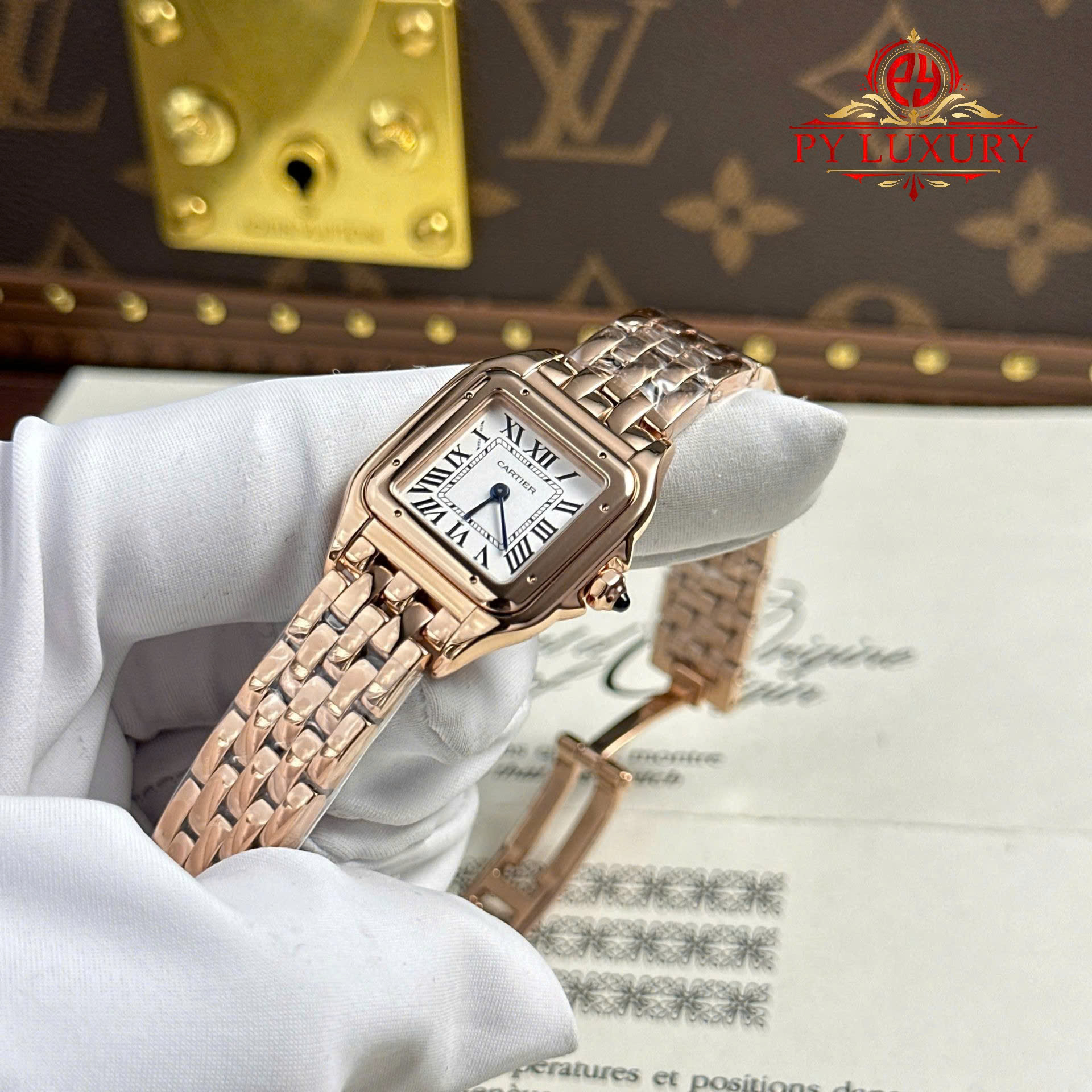 Video of the Cartier Panthère Rose Gold Small Model Silver Dial Best Replica 22mm x 30mm from BVF: