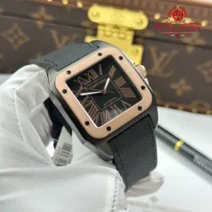 Video of the Cartier Santos 100 XL Black DLC Rose Gold Black Leather Strap Best Replica 43 x 51mm: