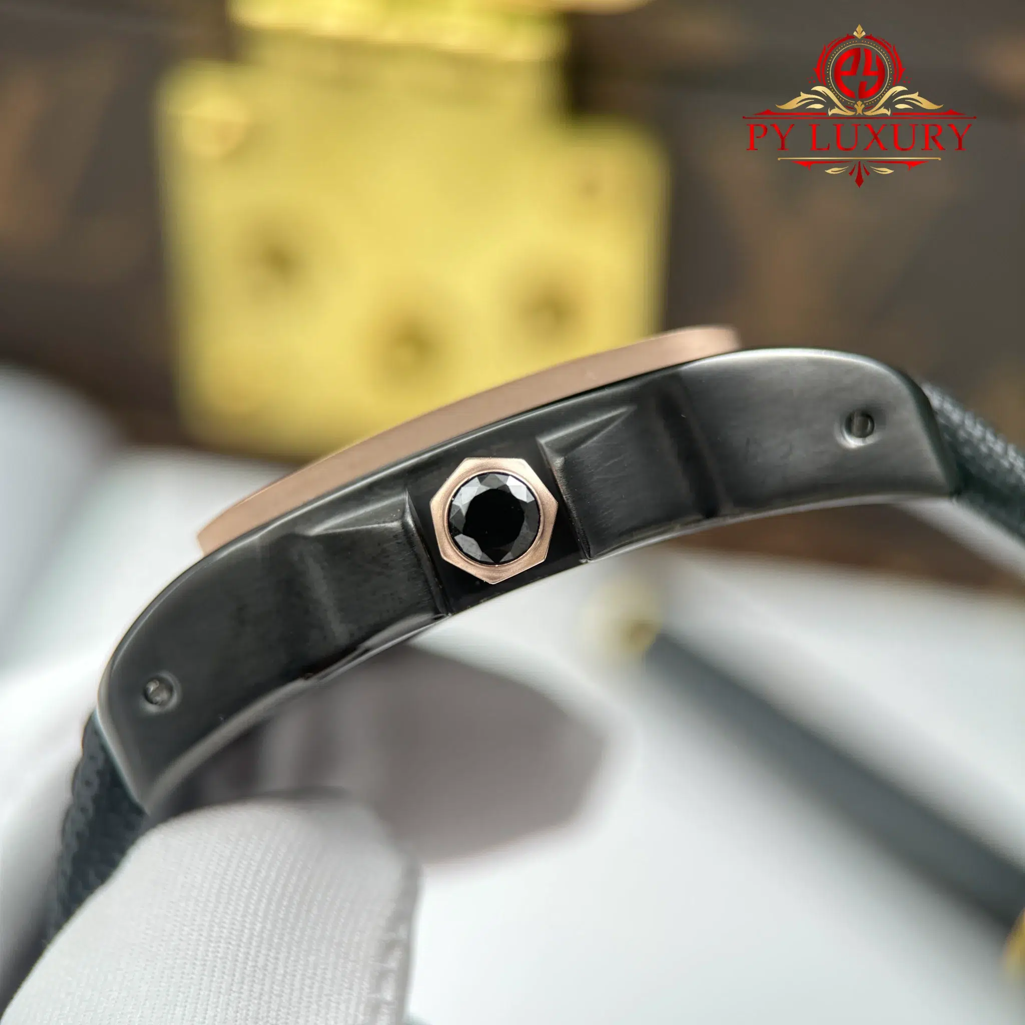 Cartier Santos 100 XL Black DLC Rose Gold Black Leather Strap Best Replica 43 x 51mm