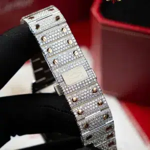 Cartier Santos Medium Model Two Tone Rose Gold Iced Out Moissanite 1:1 Best Replica 35.1mm