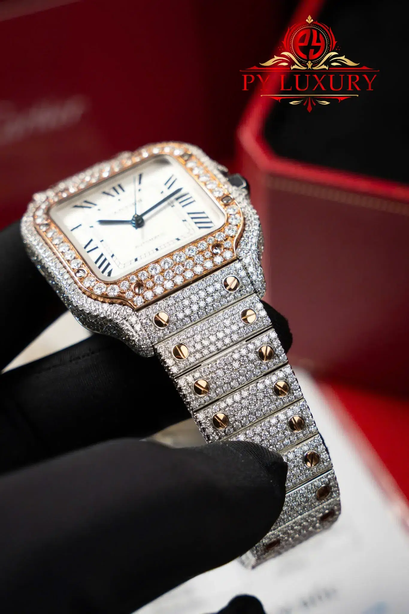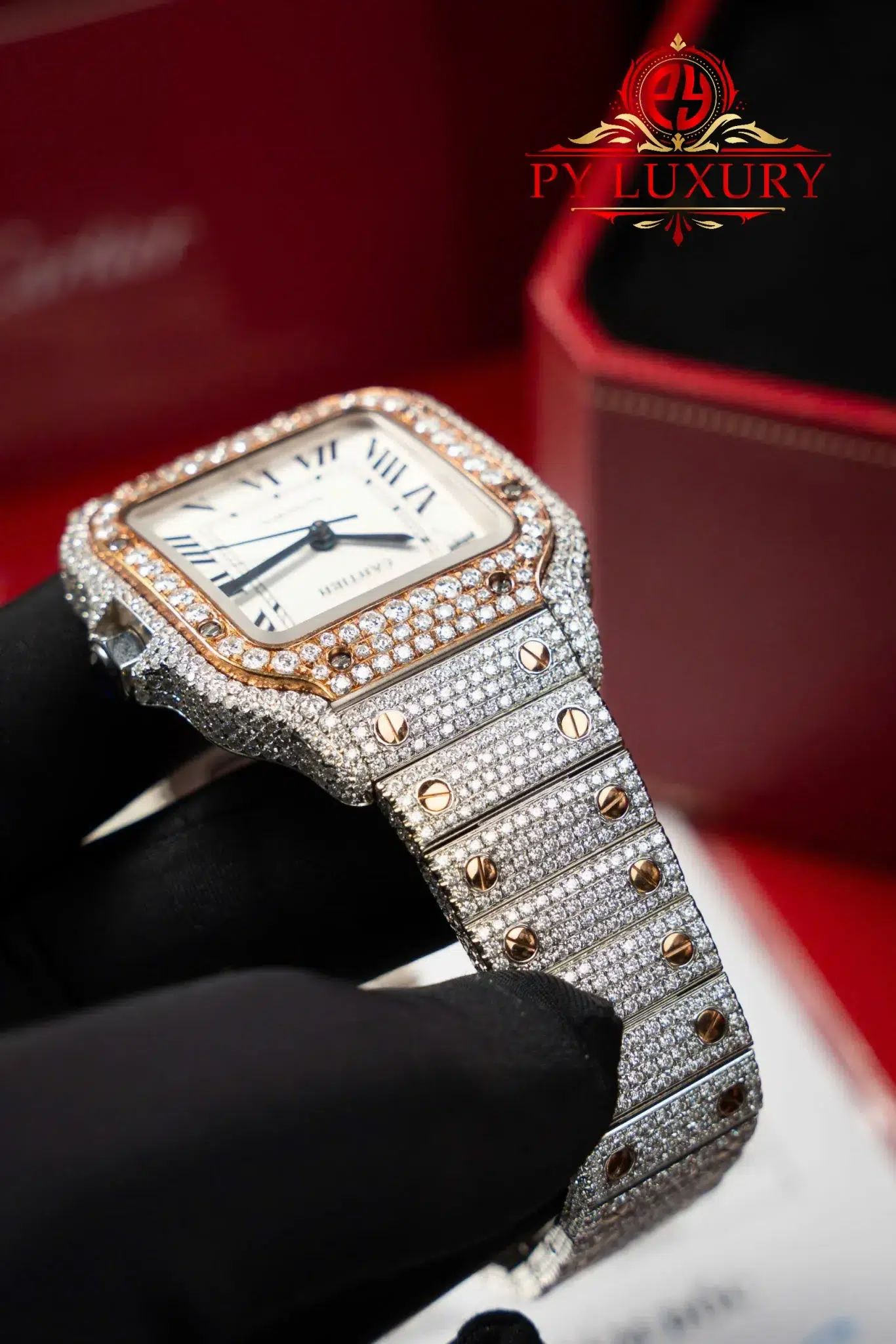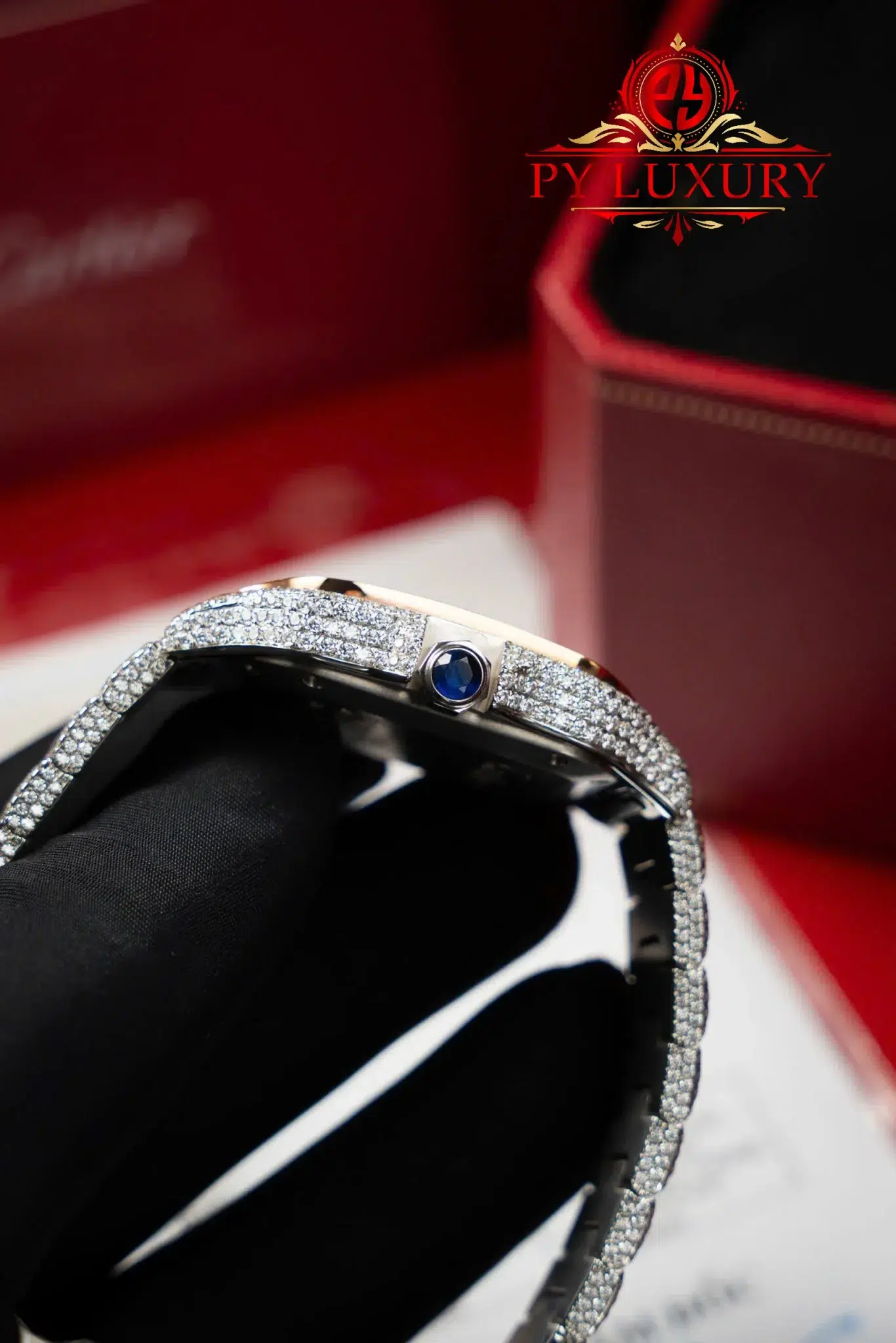 Cartier Santos Medium Model Two Tone Rose Gold Iced Out Moissanite 1:1 Best Replica 35.1mm