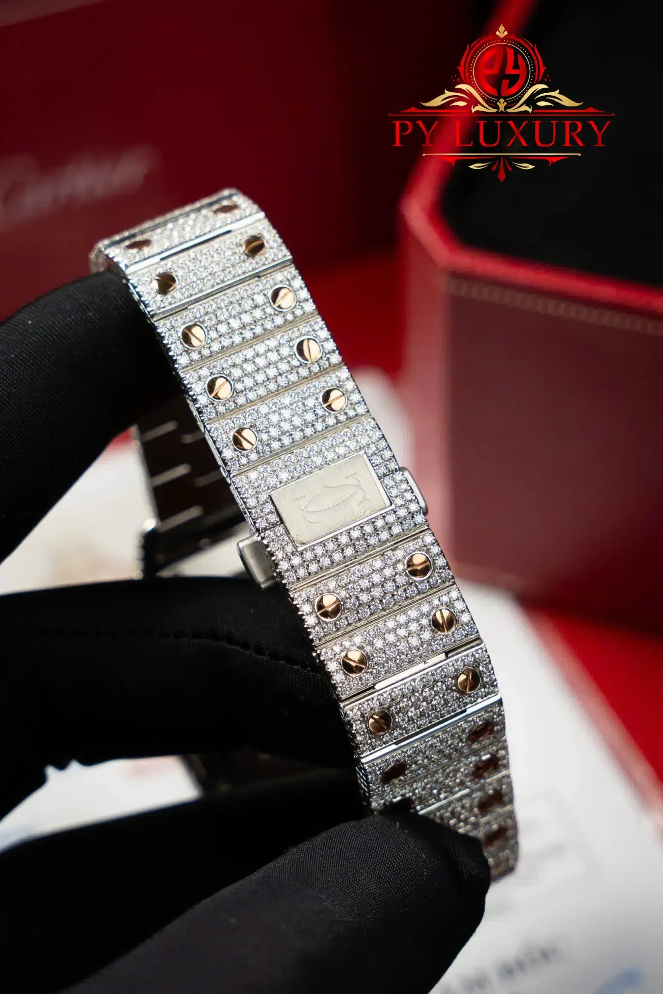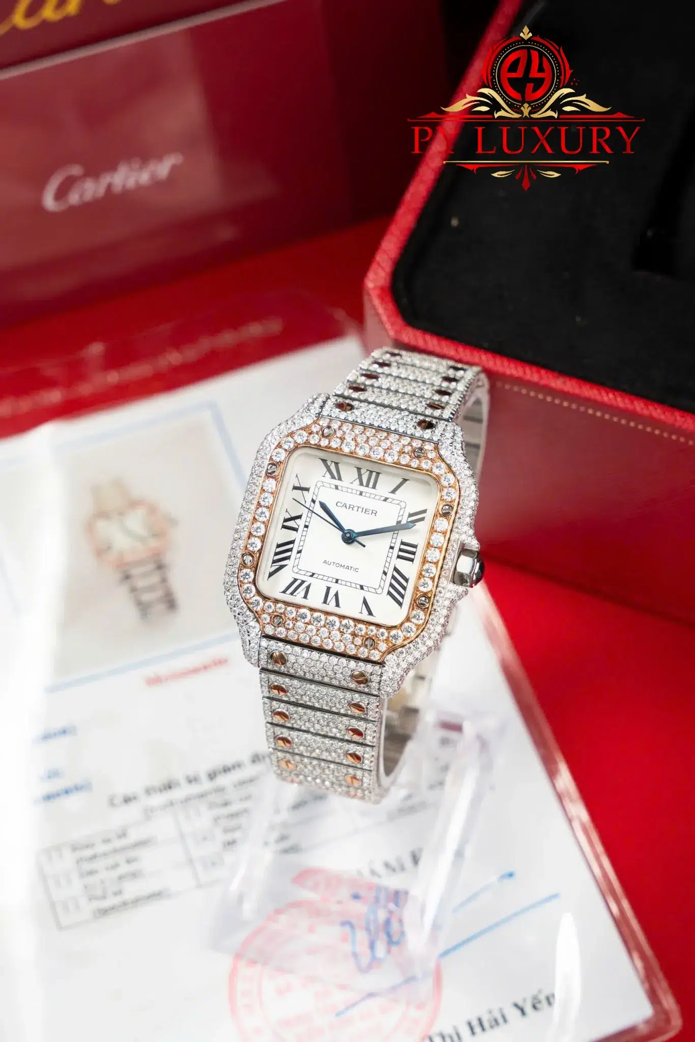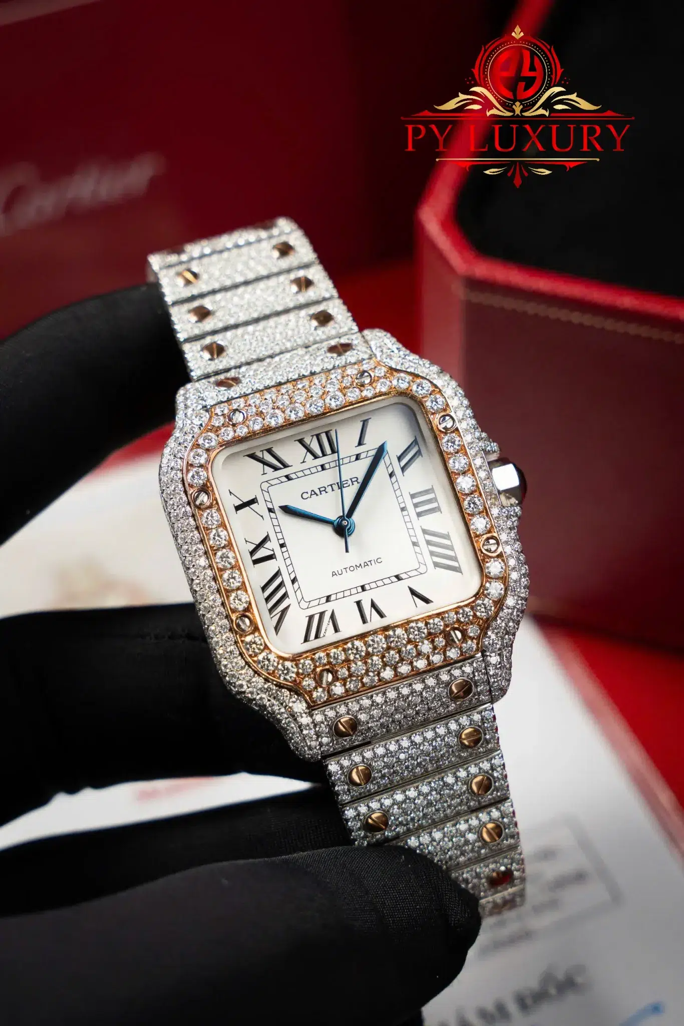 Cartier Santos Medium Model Two Tone Rose Gold Iced Out Moissanite 1:1 Best Replica 35.1mm