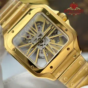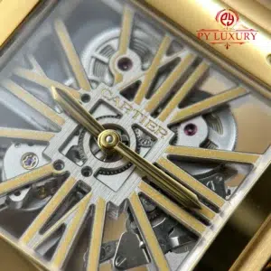 Video of the Cartier Santos Skeleton Dial WHSA0042 Yellow Gold Large Model Super Clone from Rich Factory at Py-Luxury: