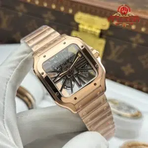 Video of the Cartier Santos Skeleton WHSA0016 Large Model Rose Gold Super Clone from Rich Factory at Py-Luxury: