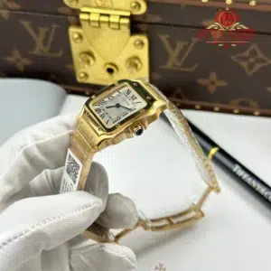 Video of the Cartier Santos WGSA0107 Yellow Gold Mini Model Silver Dial Quartz Best Replica 27mm from AF at Py-Luxury: