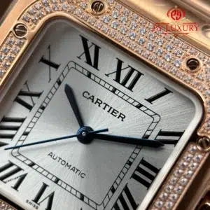 Video of the Cartier Santos WJSA0007 Rose Gold Silver Dial Diamond Bezel Best Replica 35.1mm from BV Factory at Py-Luxury: