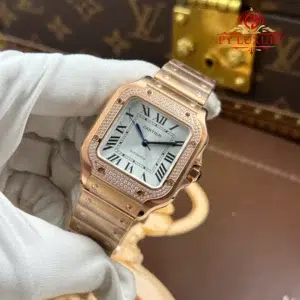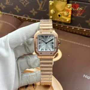 Cartier Santos WJSA0007 Rose Gold Silver Dial Diamond Bezel Best Replica BVF 35.1mm