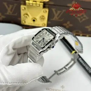 Video of the Cartier Santos WSSA0082 Silver Dial Steel Bracelet Quartz Best Replica 27mm from AF at Py-Luxury: