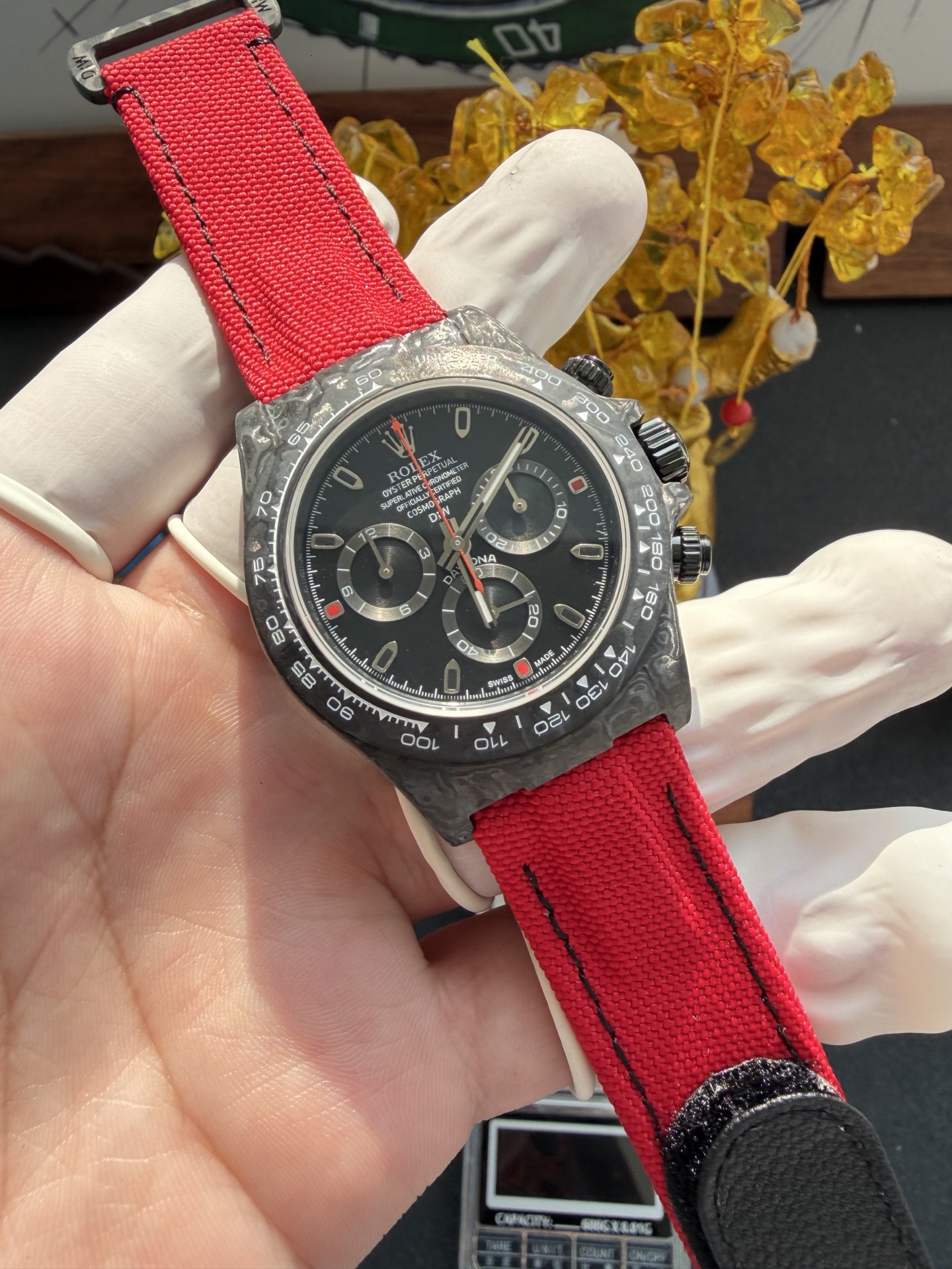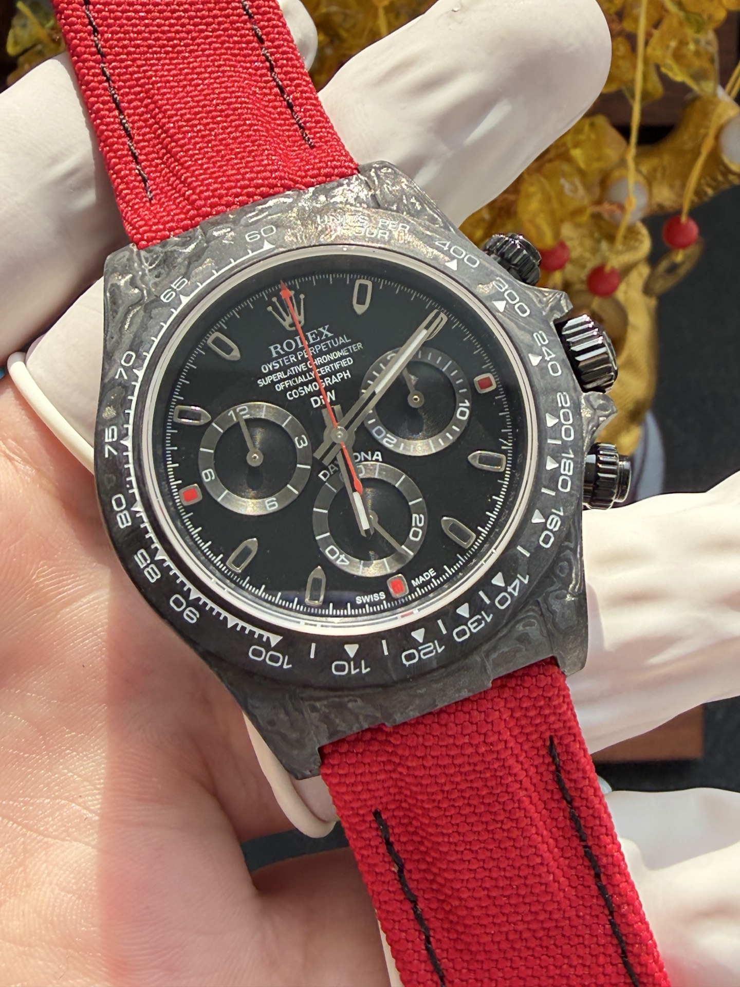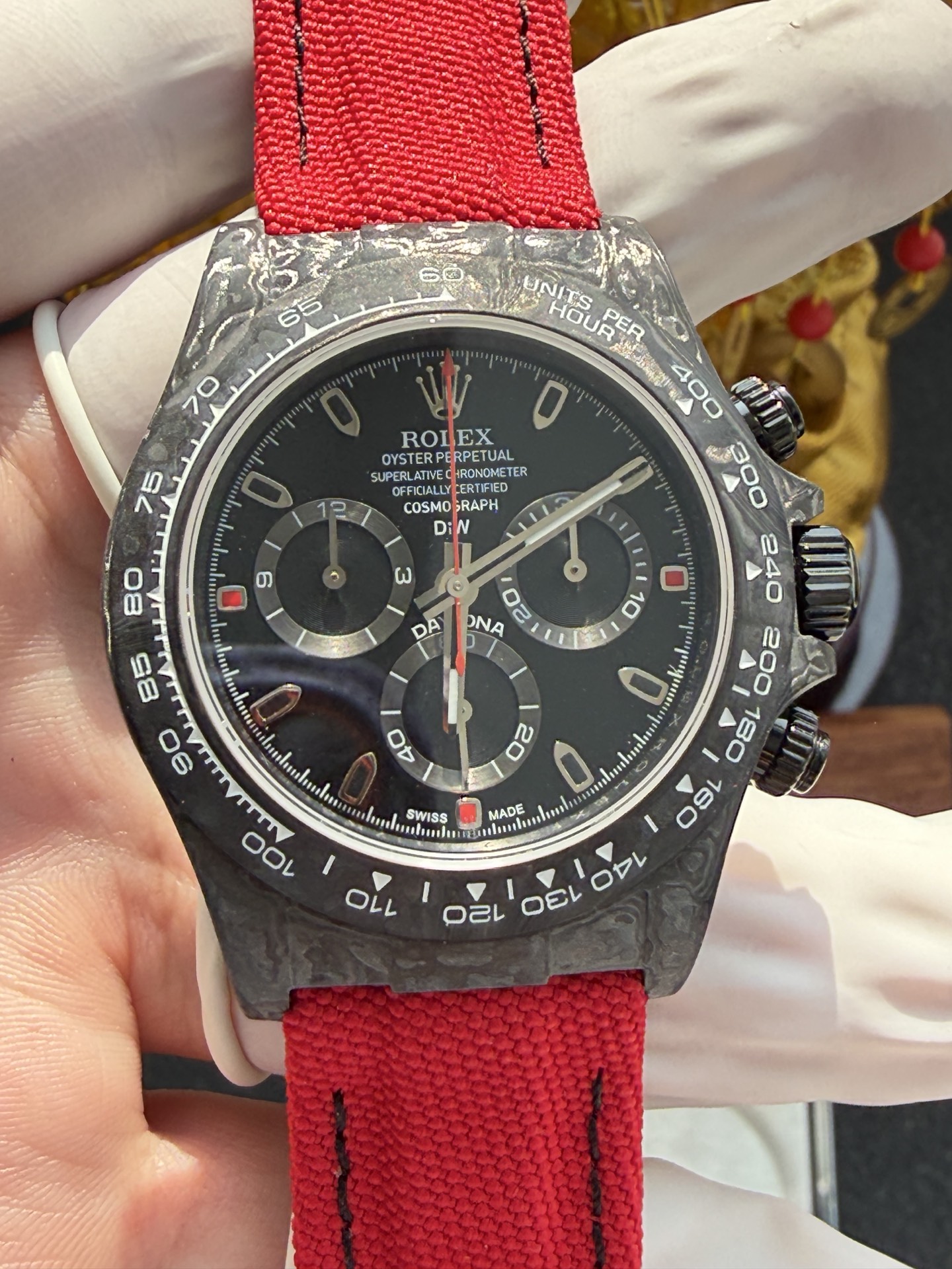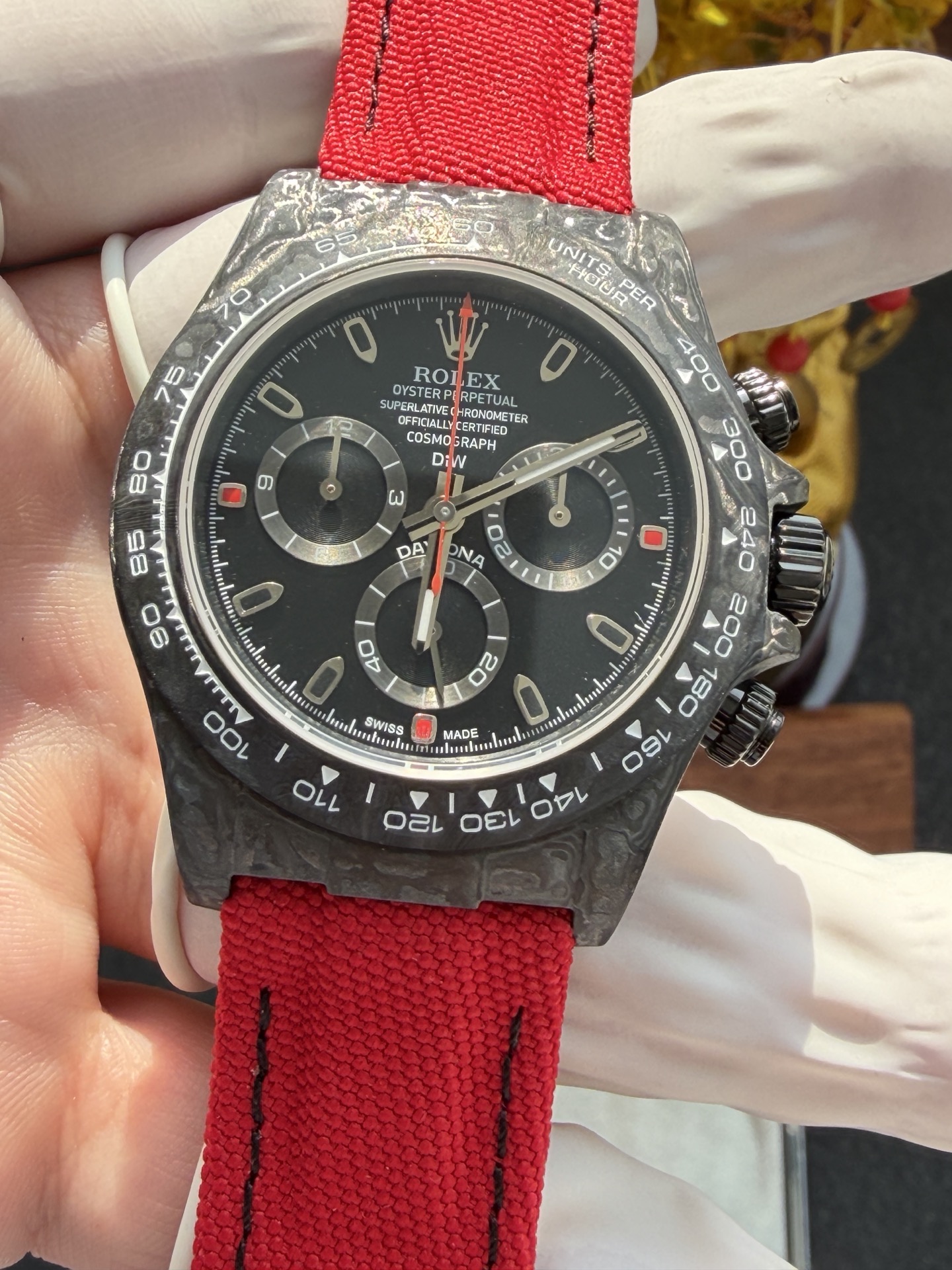 DiW Rolex Daytona All Carbon Red Edition Unique Piece Red Nilon Strap Super Clone 40mm