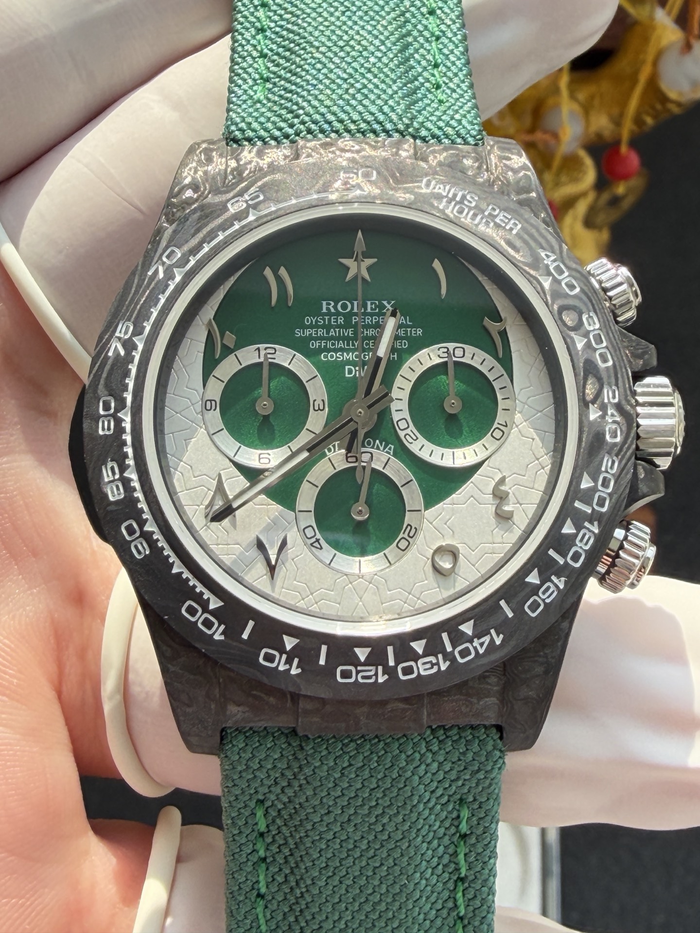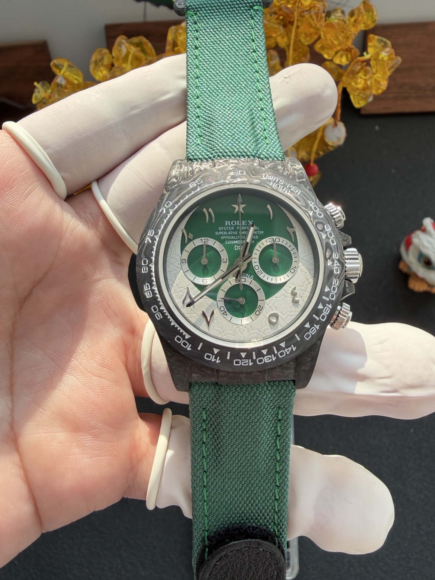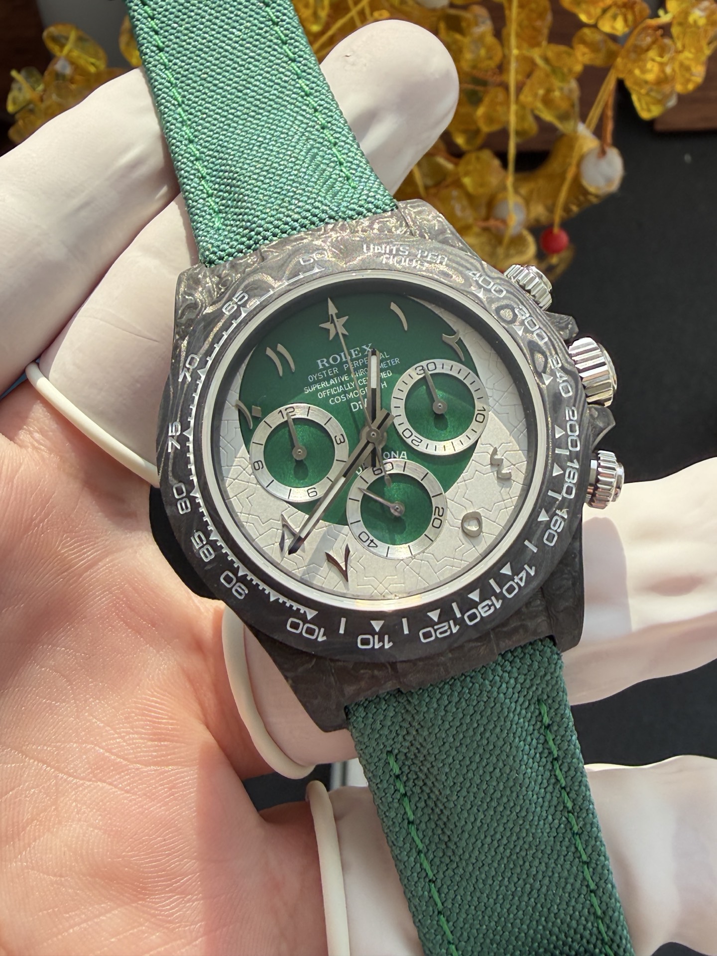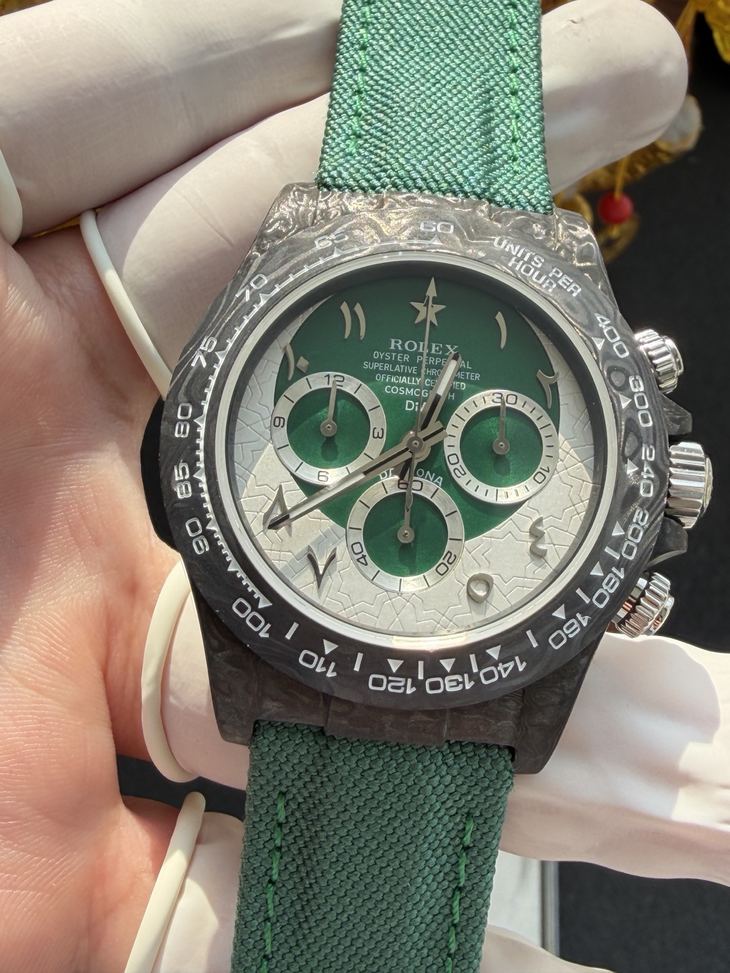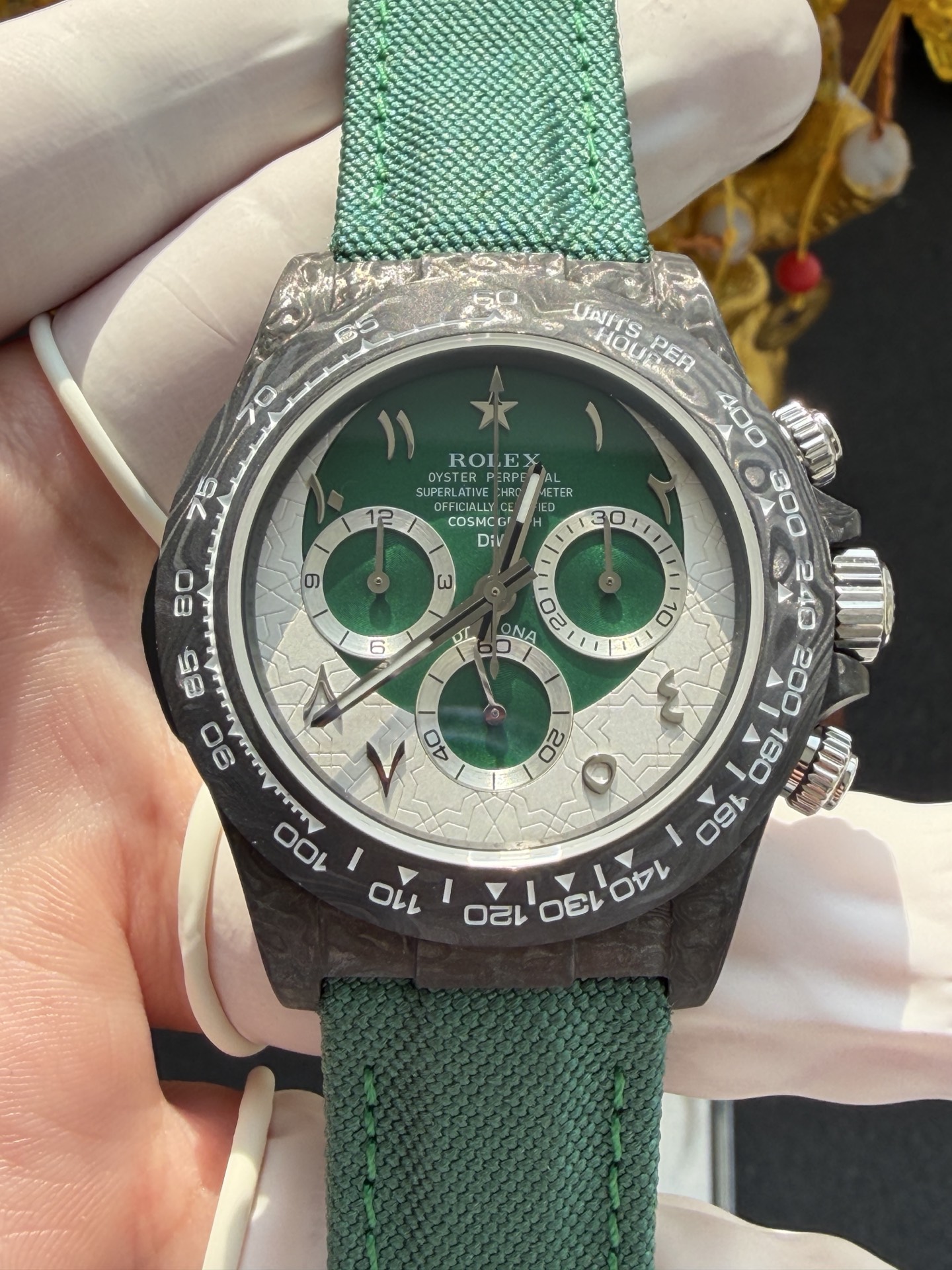 DiW Rolex Graphite Daytona Ramadan Green & White Dial Arabic Numerals Green Nylon Strap 1:1 Best Replica 40mm