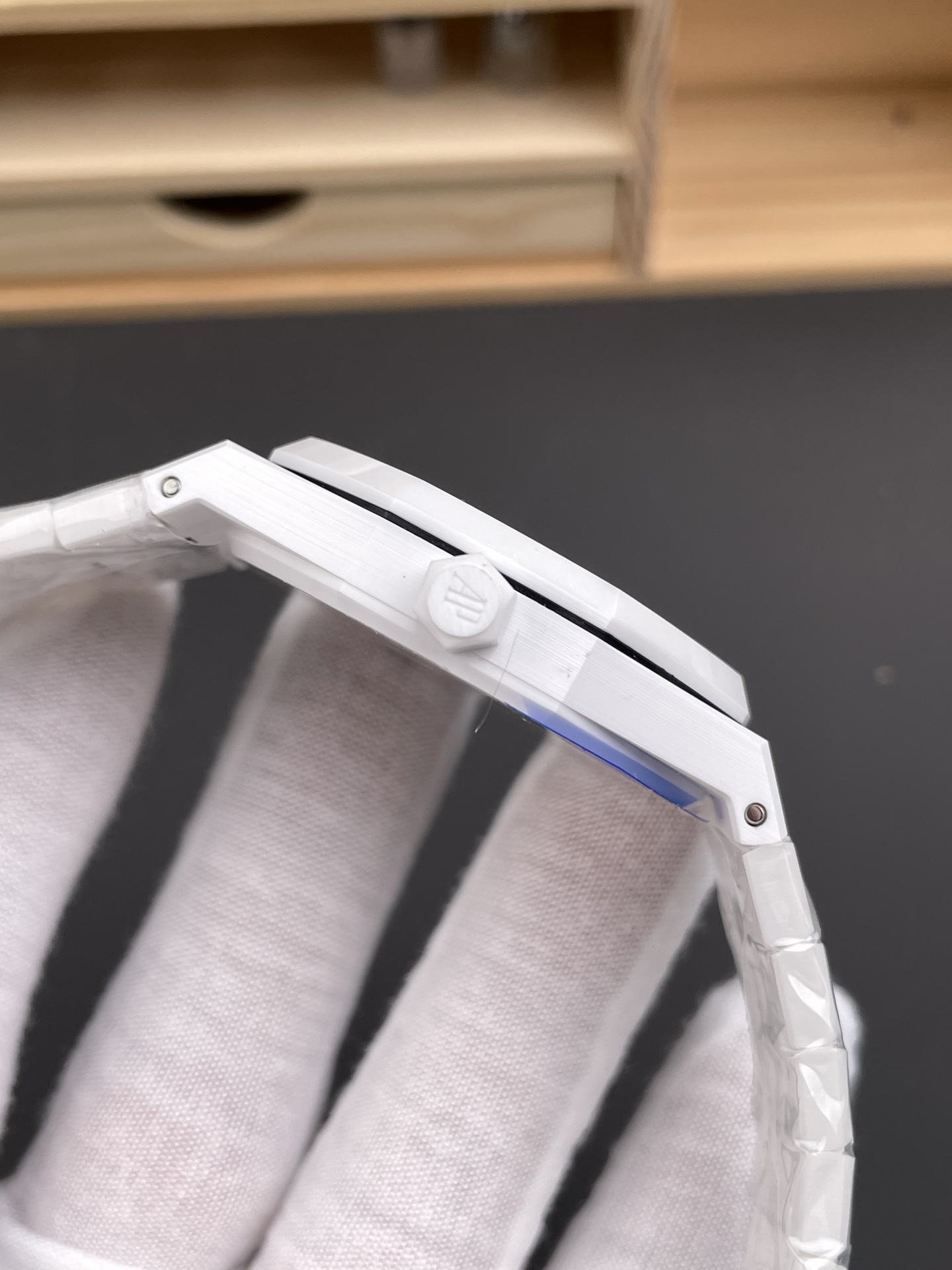 Video Chi Tiết Đồng Hồ Audemars Piguet Royal Oak 15500 Vỏ Gốm Trắng Mặt Trắng Replica 1:1 của nhà máy APS tại Py-Luxury: