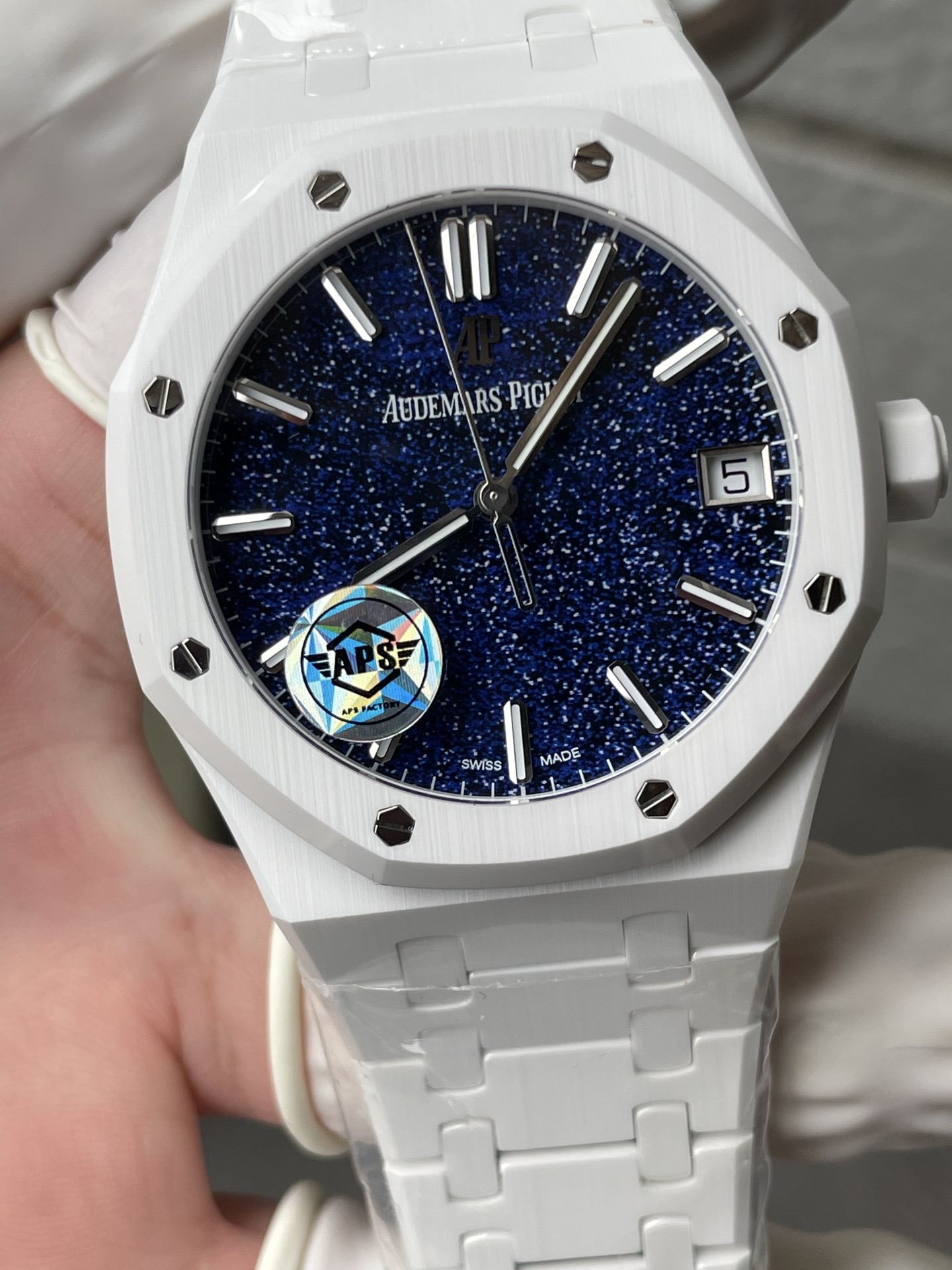 Video chi tiết Đồng Hồ Audemars Piguet Royal Oak 15500 Vỏ Gốm TrắngMặt Số Bầu Trời Sao Replica 1:1 của nhà máy APS: