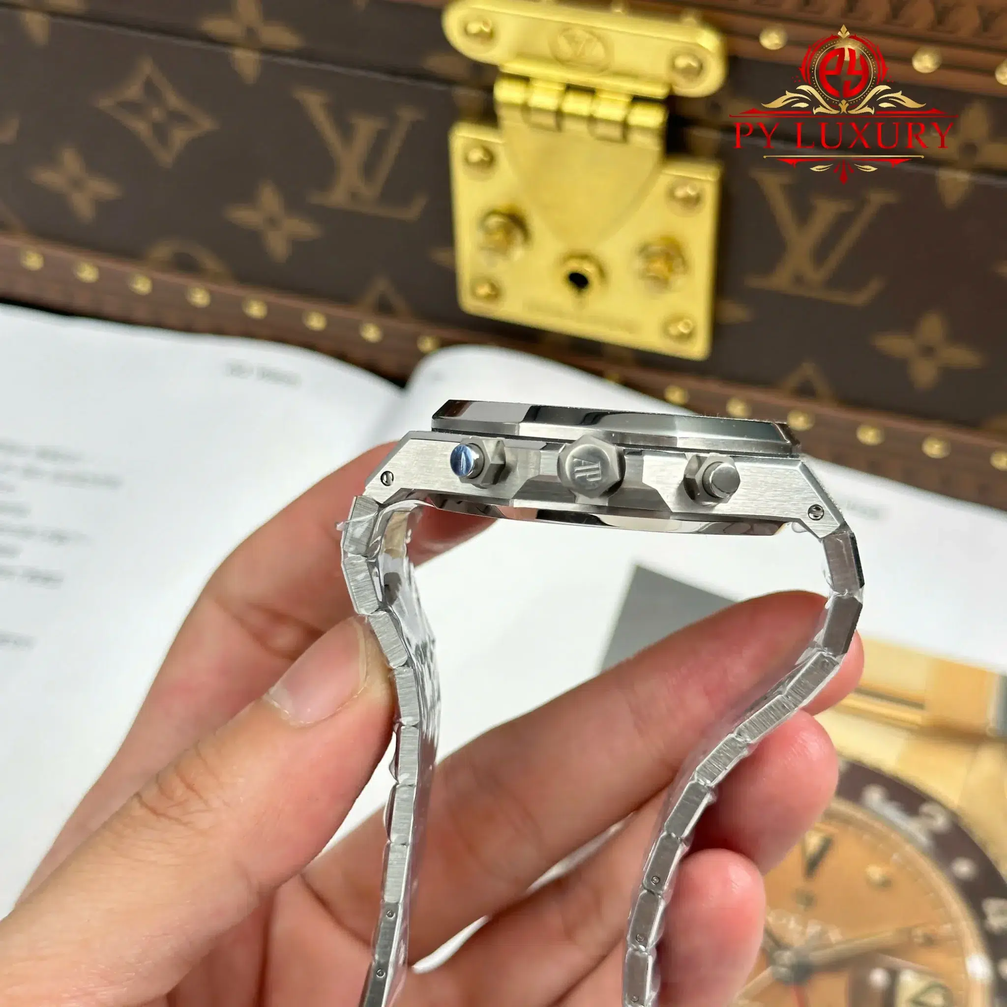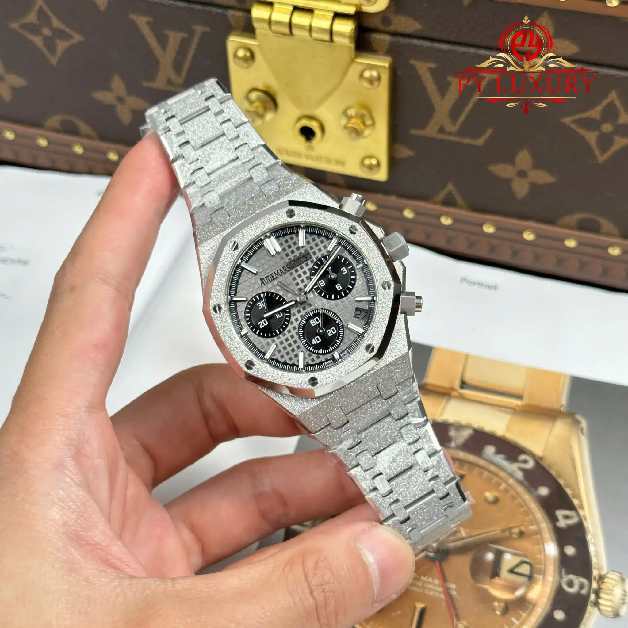 Video Chi Tiết Đồng Hồ Audemars Piguet Royal Oak Chronograph 26240BC Vàng Sương Mặt Xám Đen Replica 1:1 41mm của nhà máy APS tại Py-Luxury: