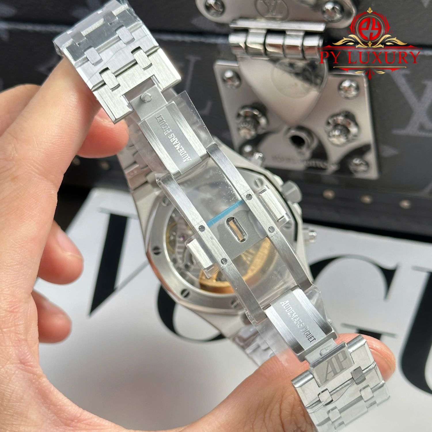 Video Chi Tiết Đồng Hồ Audemars Piguet Royal Oak Chronograph 26240ST Mặt Xanh Dương Replica 1:1 41mm của nhà máy APS tại Py-Luxury: