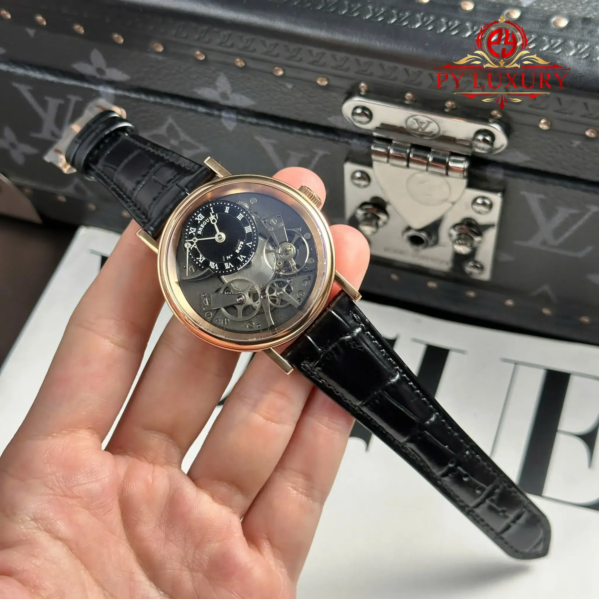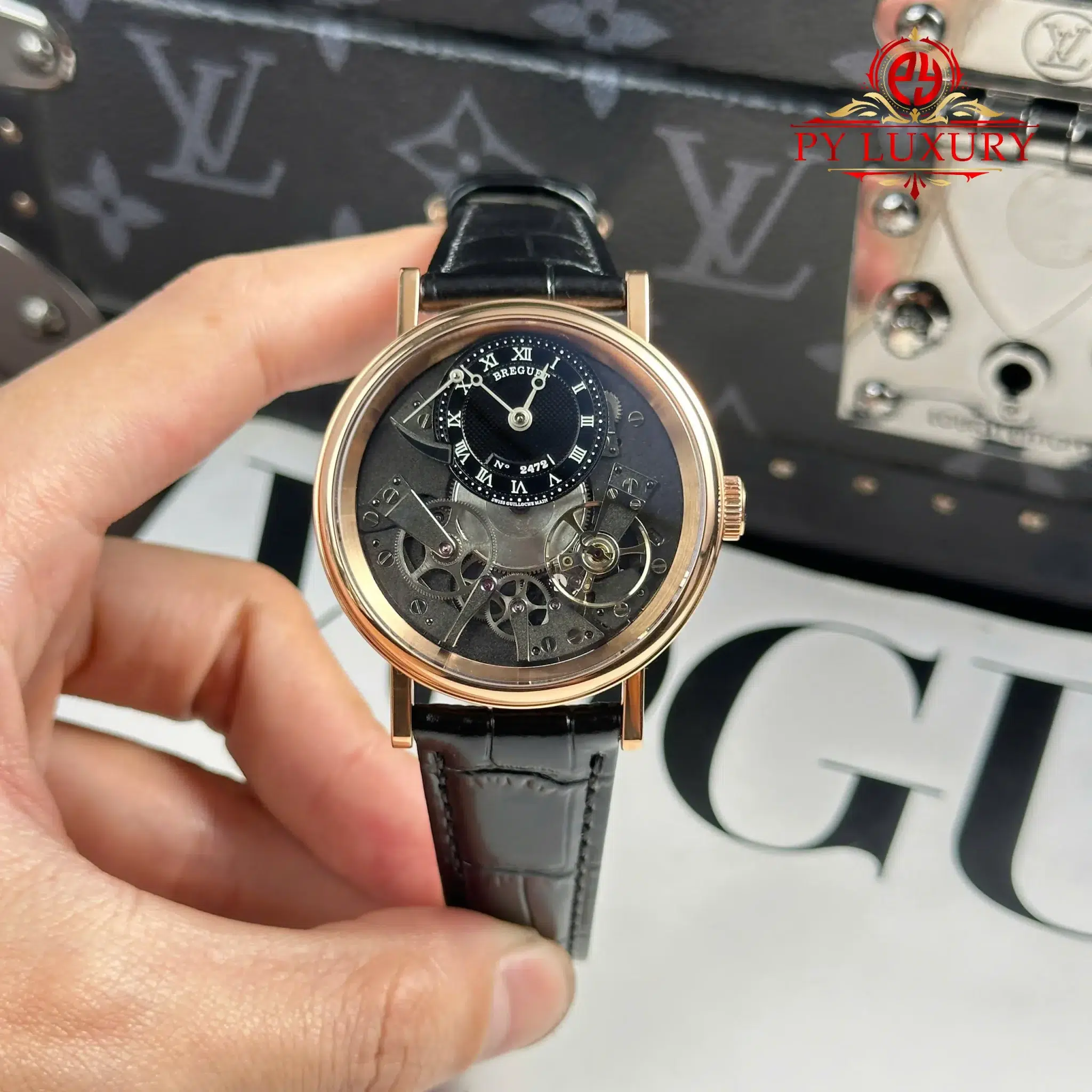 Đồng Hồ Breguet Tradition Power Reserve 7057BR/G9/9W6 Vàng Hồng Cót Tay Dây Da Replica 1:1 ZF 40mm