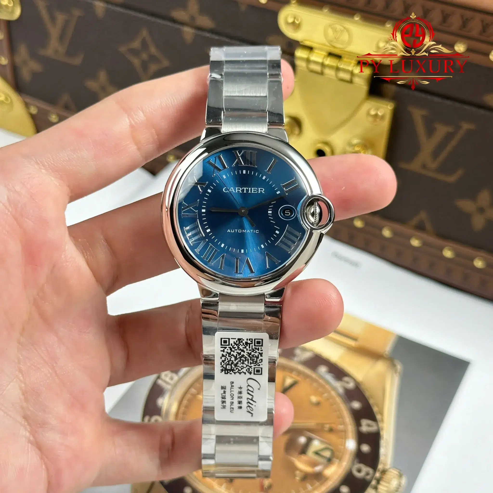 Đồng Hồ Cartier Ballon Bleu Vỏ Thép Mặt Xanh Dương Replica 1:1 AF 40mm