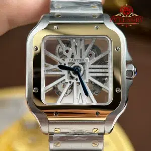 Đồng Hồ Cartier Santos Skeleton Demi Vàng WHSA0019 Dây Thép Replica 1:1 MLF 39.8mm