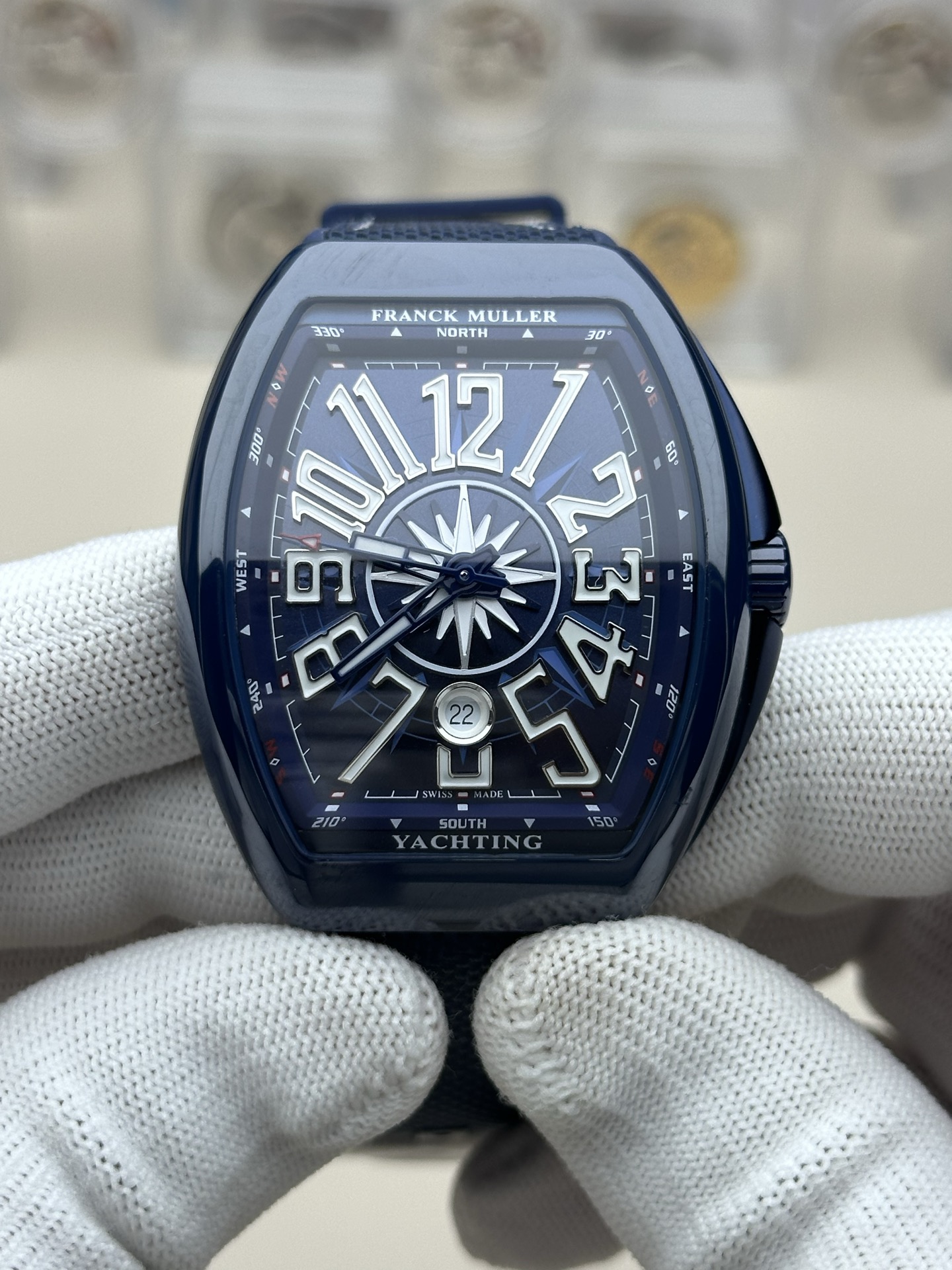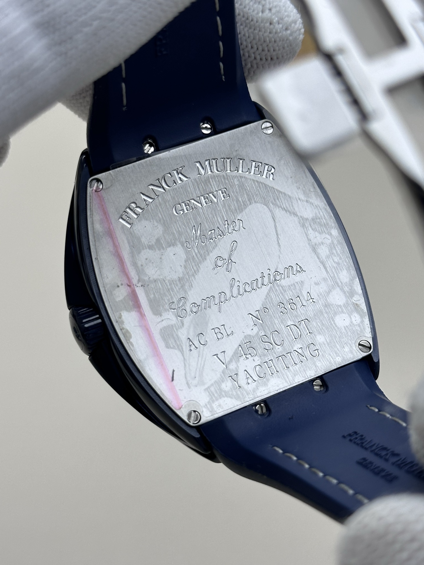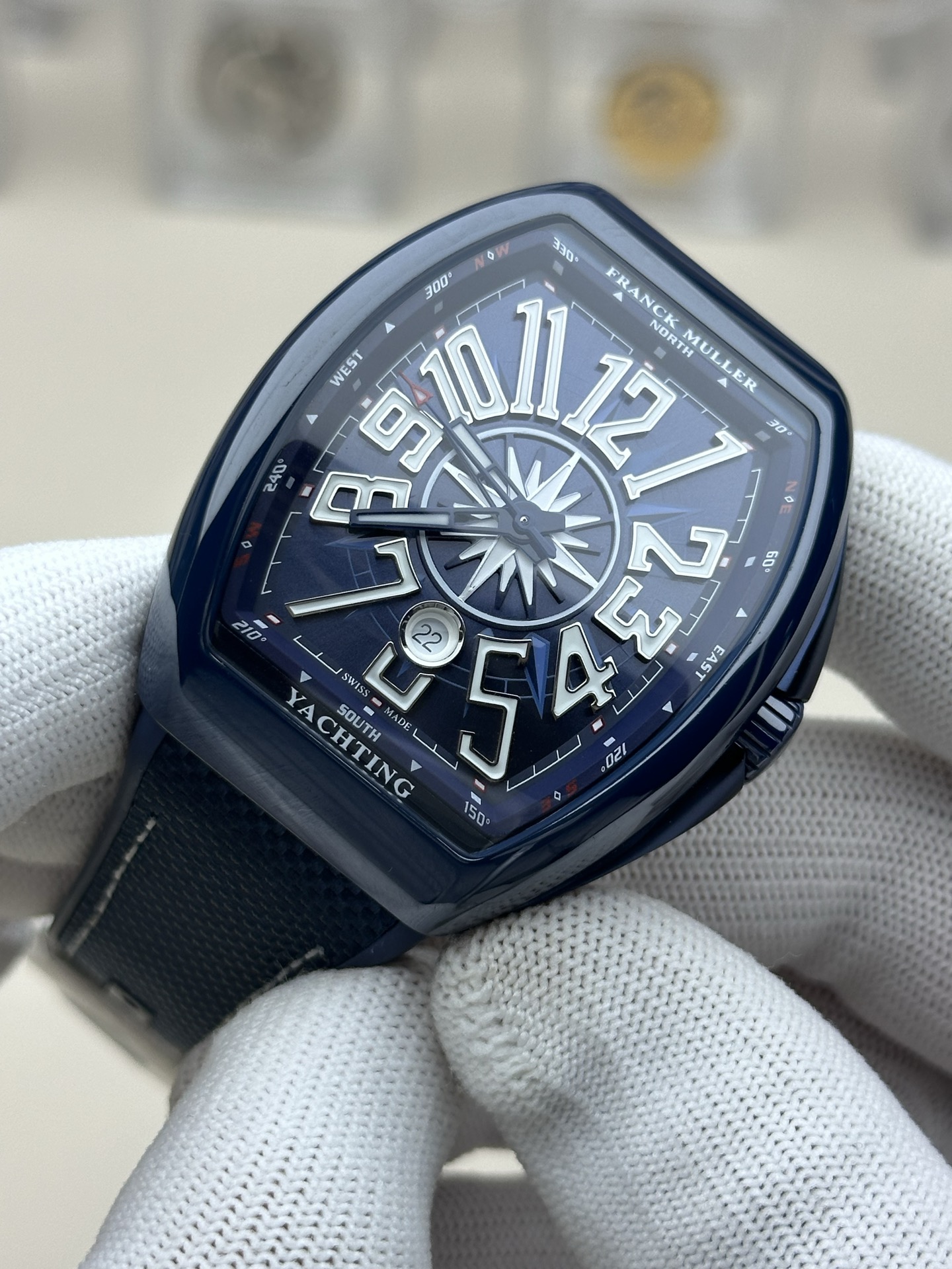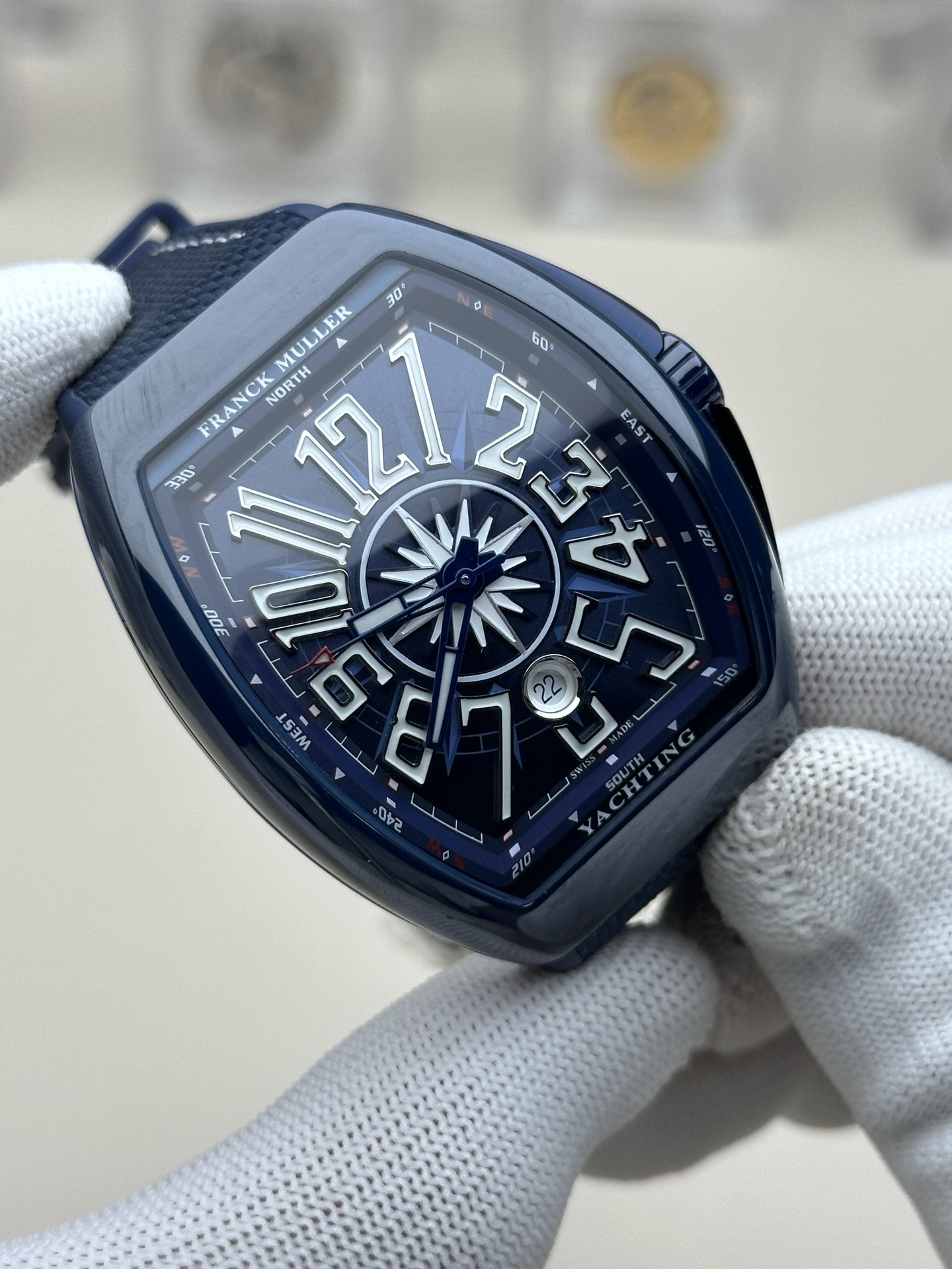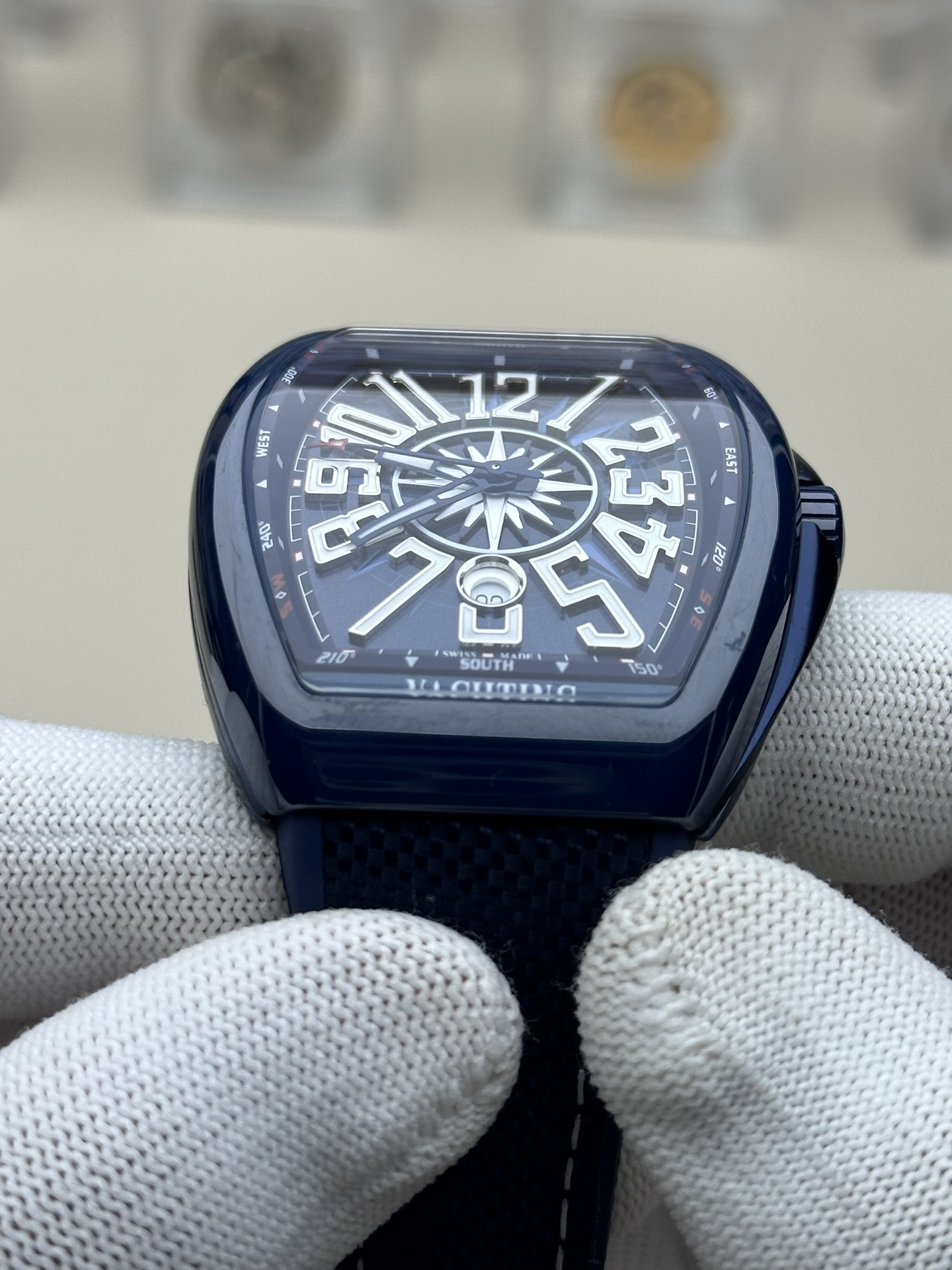 Đồng Hồ Franck Muller Vanguard V45 Vỏ Gốm Xanh Mặt Xanh Dương Cọc Số Học Trò Trắng Replica 1:1 ABF 45mm