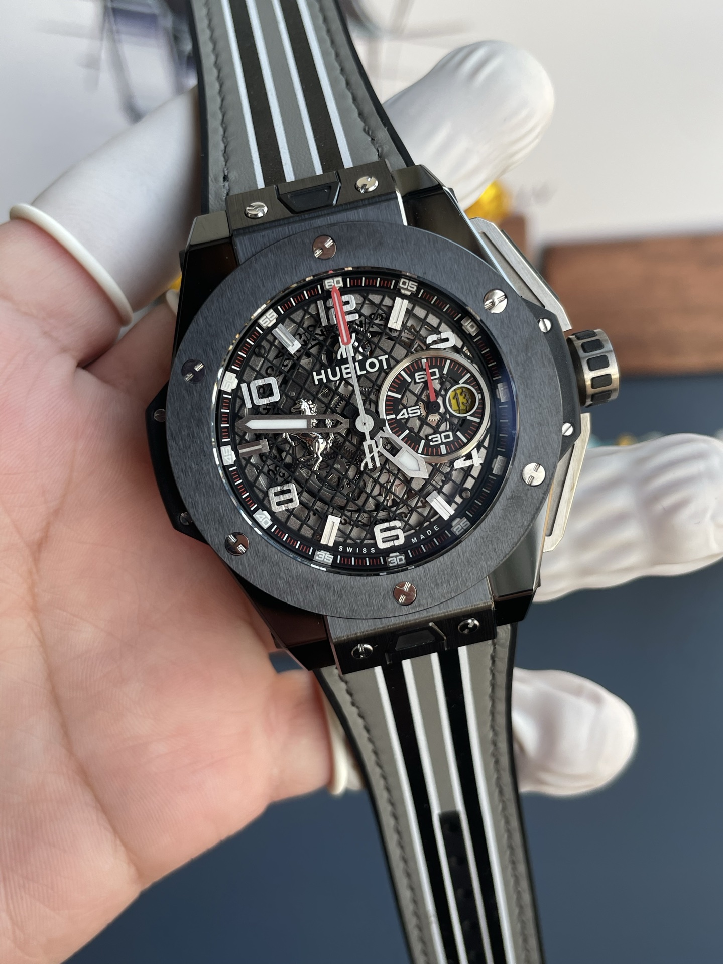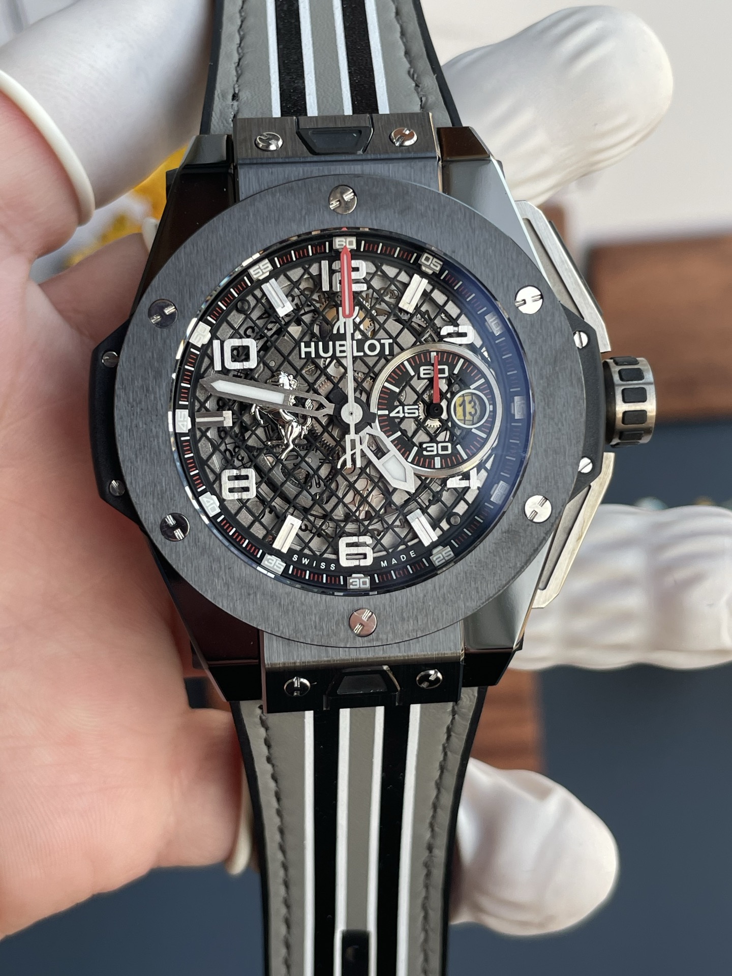 Đồng Hồ Hublot Big Bang Ferrari 401.FX.1123.VR Vỏ Gốm Màu Xám Replica 1:1 HBBF 45mm