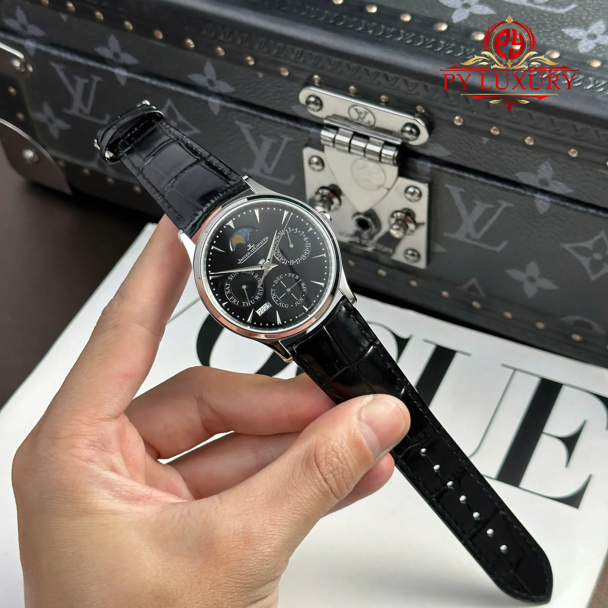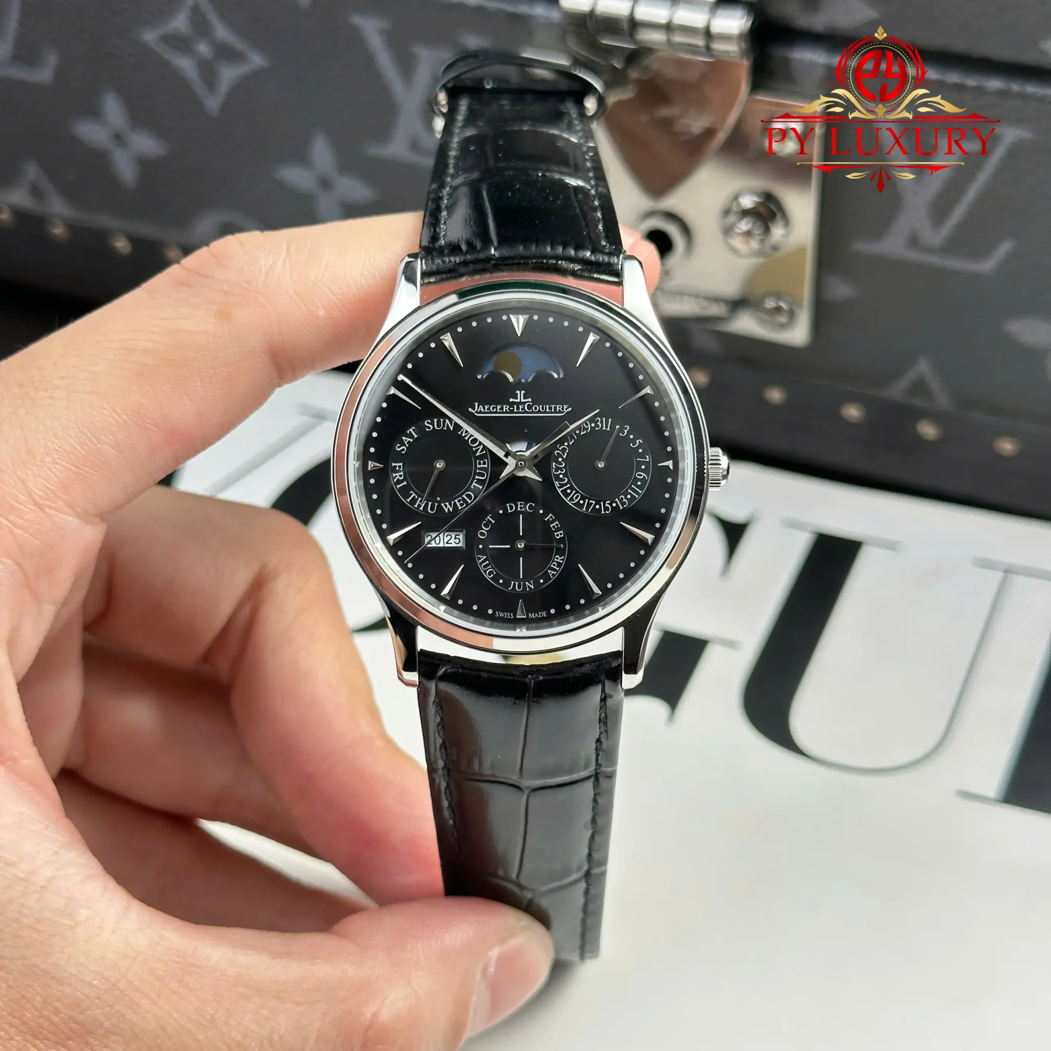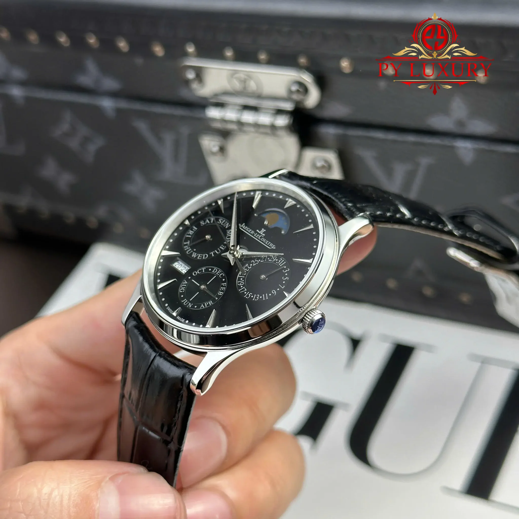 Đồng Hồ Jaeger LeCoultre Master Ultra Thin Perpetual Calendar Mặt Đen Dây Da Replica VRF 39mm