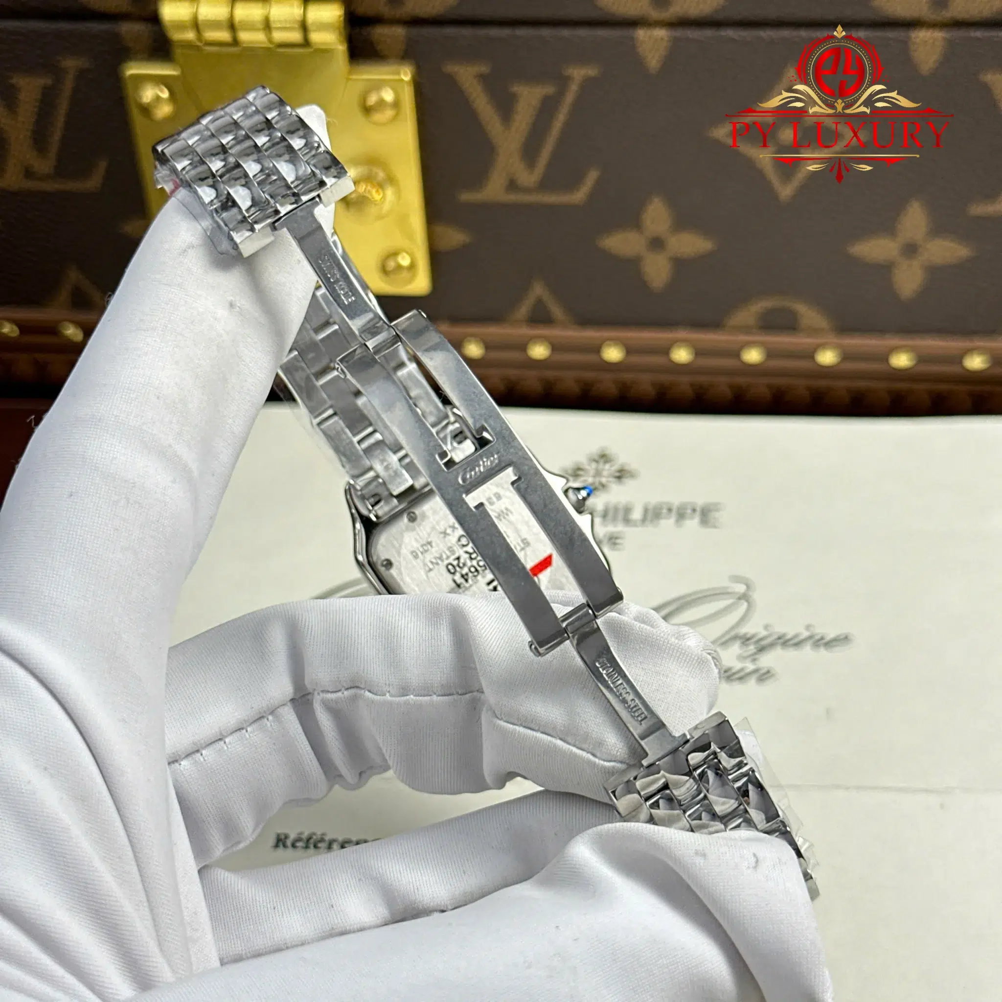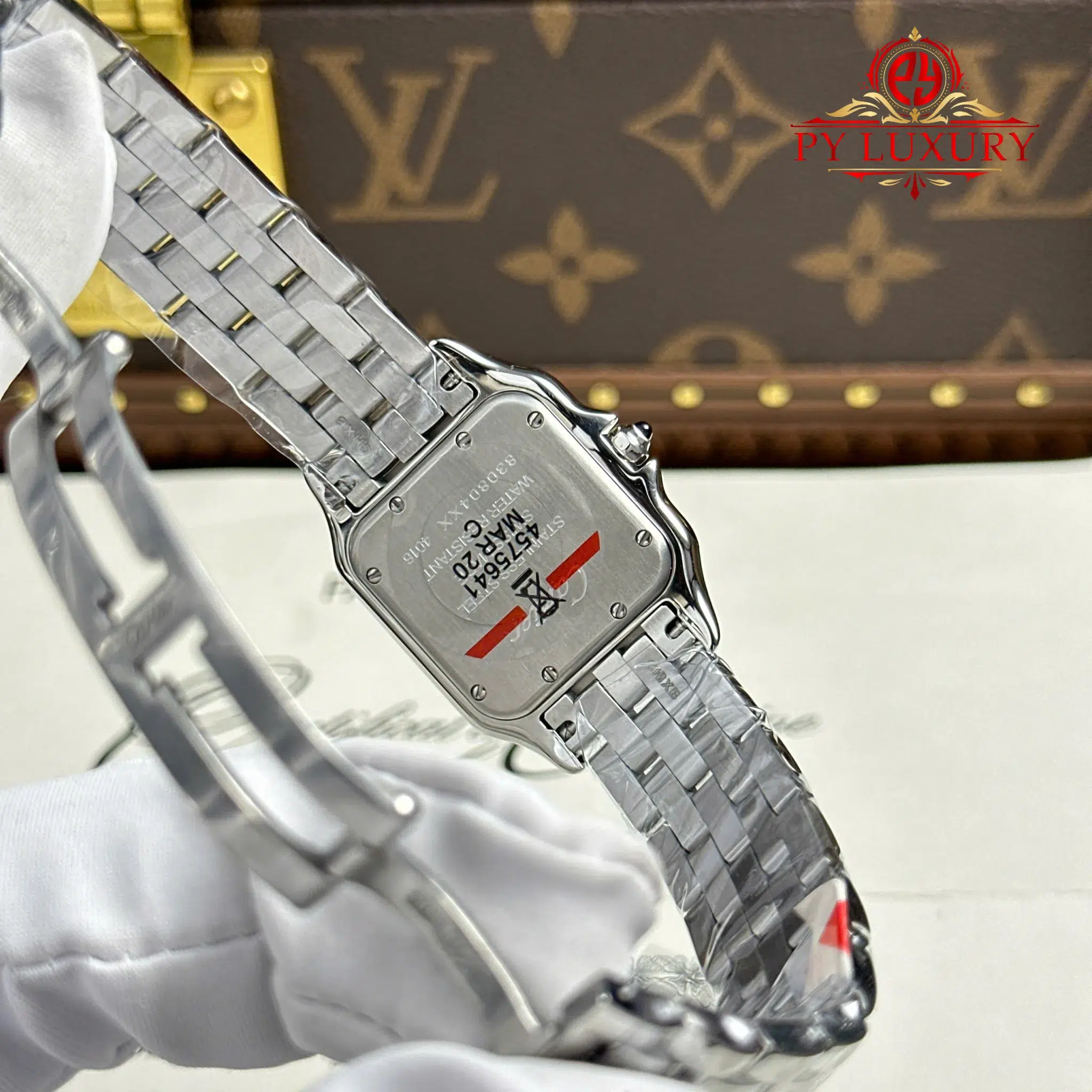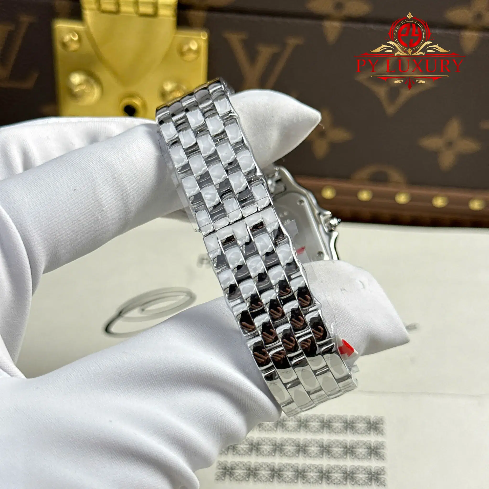 Đồng Hồ Nữ Cartier Panthère Vỏ Thép Mặt Trắng Viền Đá CZ Replica 27mm x 36mm