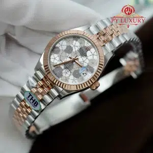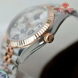 Video chi tiết chiếc Đồng Hồ Nữ Rolex Datejust 278271 Demi Vàng Hồng Mặt Số Bạc Họa Tiết Hoa Dây Jubilee Replica 1:1 31mm tại Py-Luxury:
