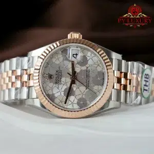 Đồng Hồ Nữ Rolex Datejust 278271 Demi Vàng Hồng Mặt Số Bạc Họa Tiết Hoa Dây Jubilee Replica 1:1 THB 31mm