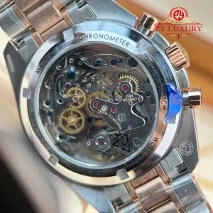 Chiếc đồng hồ Đồng Hồ Omega Speedmaster Moonwatch Chronograph Demi Vàng Hồng Mặt Số Hồng Replica 42mm được sản xuất bởi nhà máy N1 factory, sử dụng bộ máy Calibre 3861 Clone của Omega.