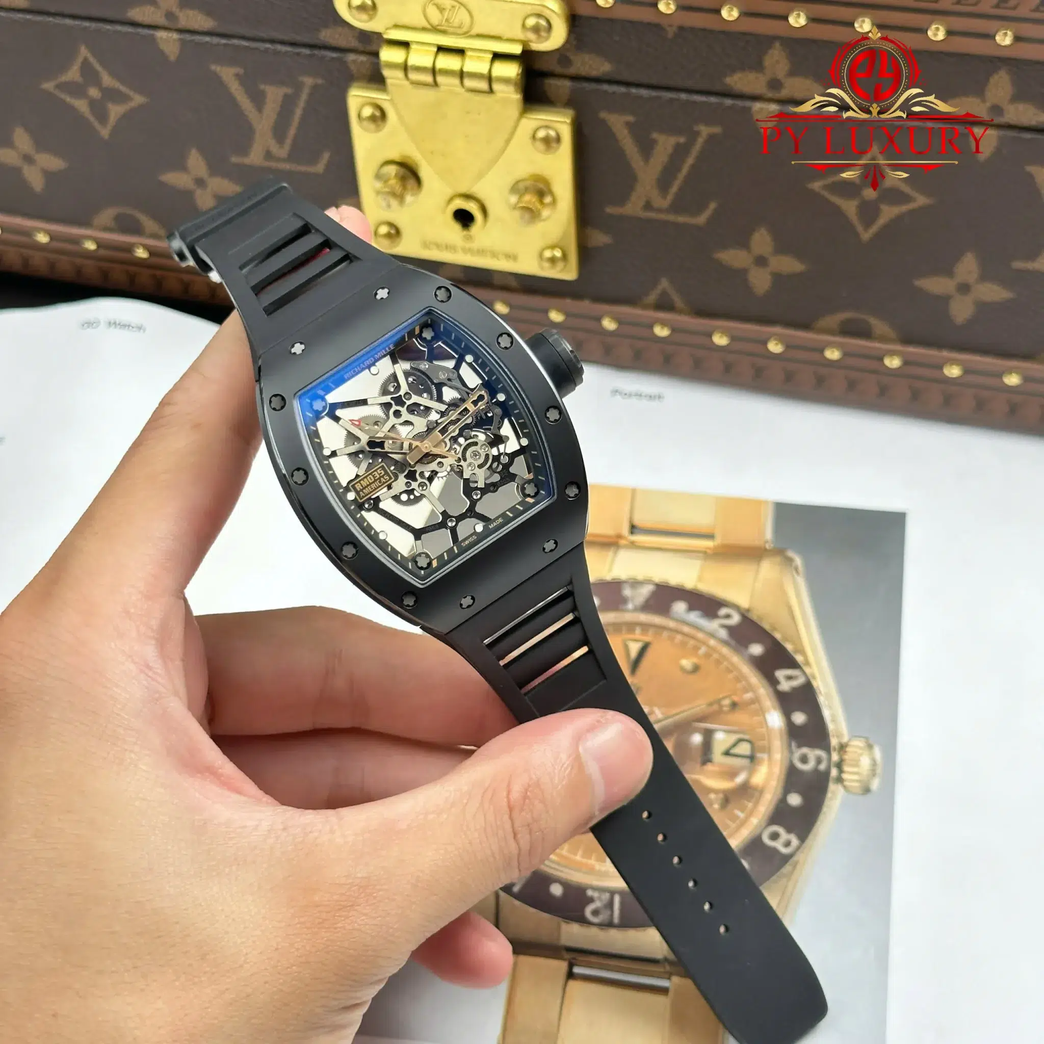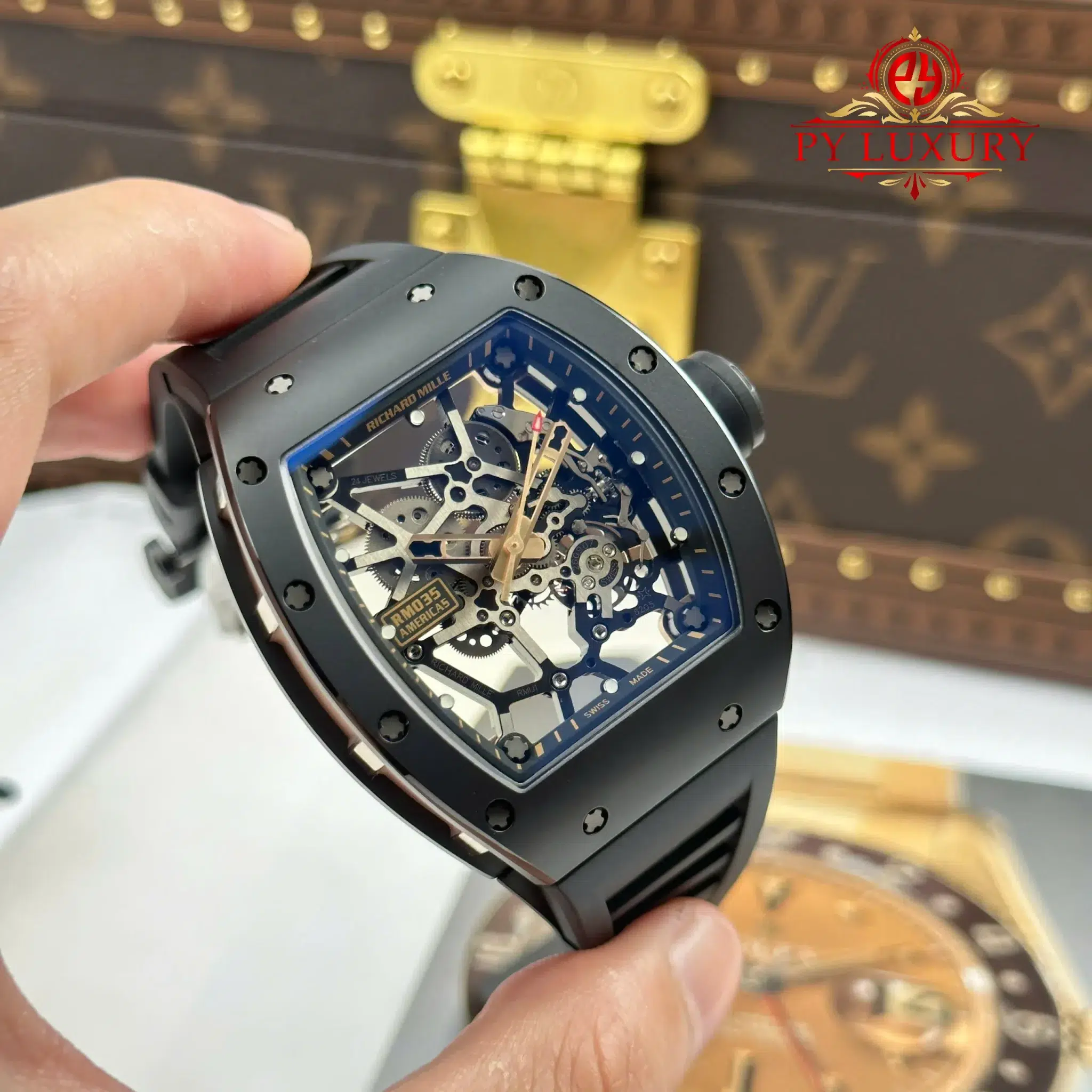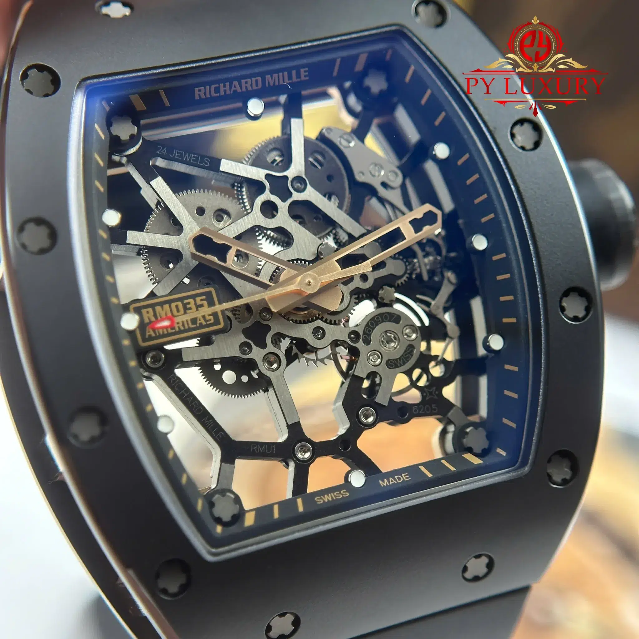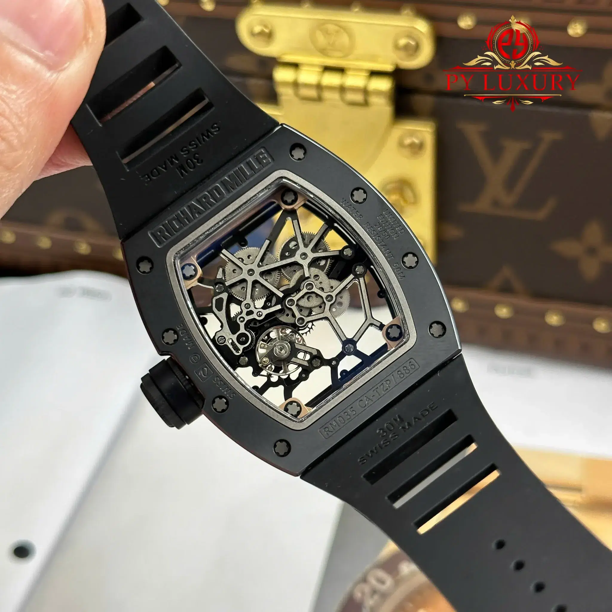 Video chi tiết chiếc Đồng Hồ Richard Mille RM035 Black Toro Vỏ Gốm Đen Dây Cao Su 39.7 x 48mm phiên bản replica 1:1 của nhà máy ZF tại Py-Luxury: