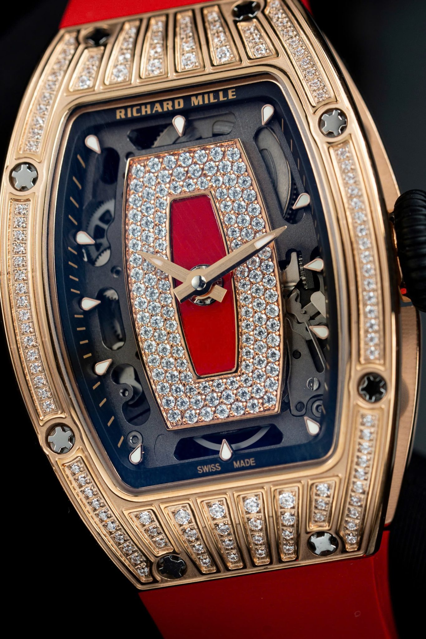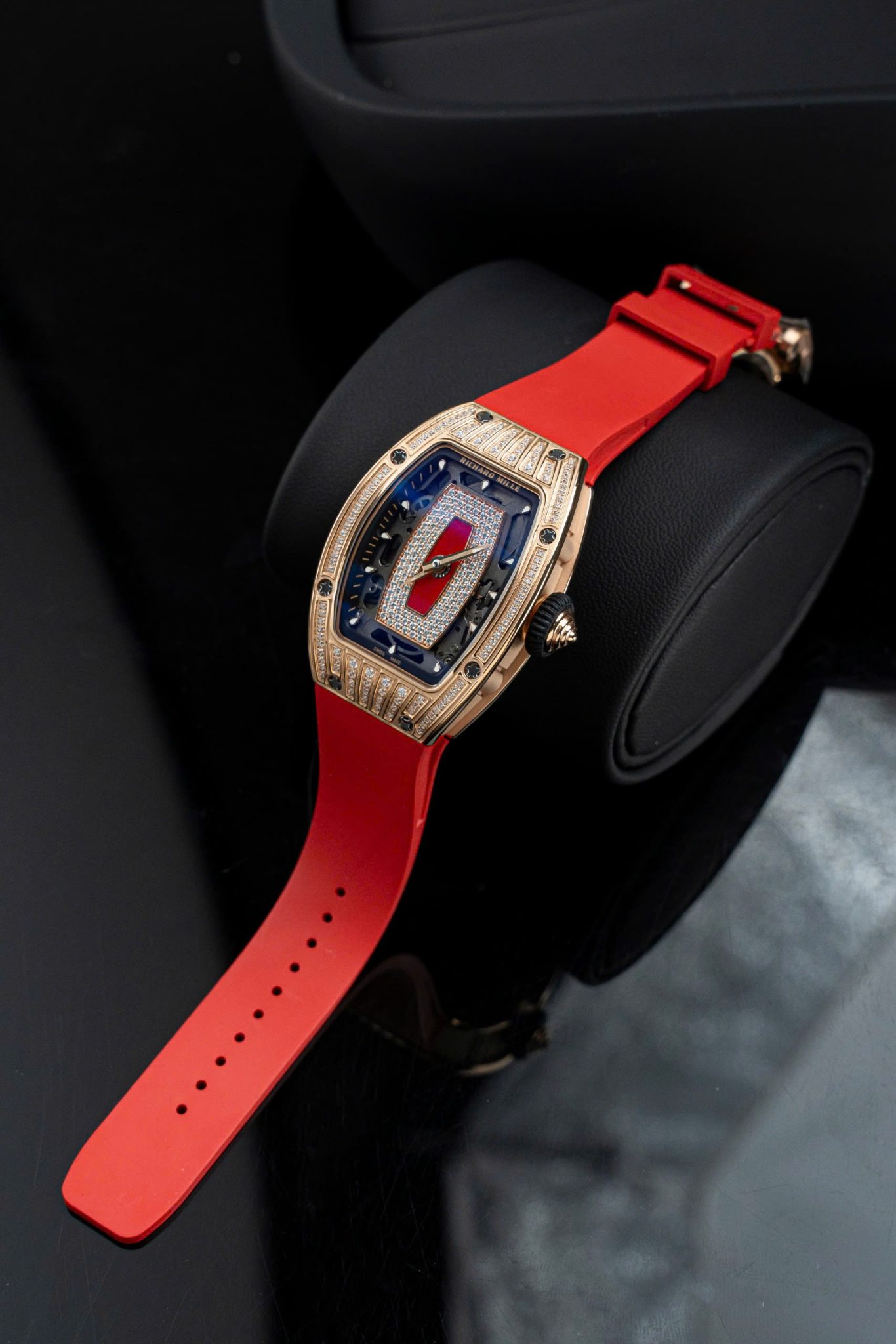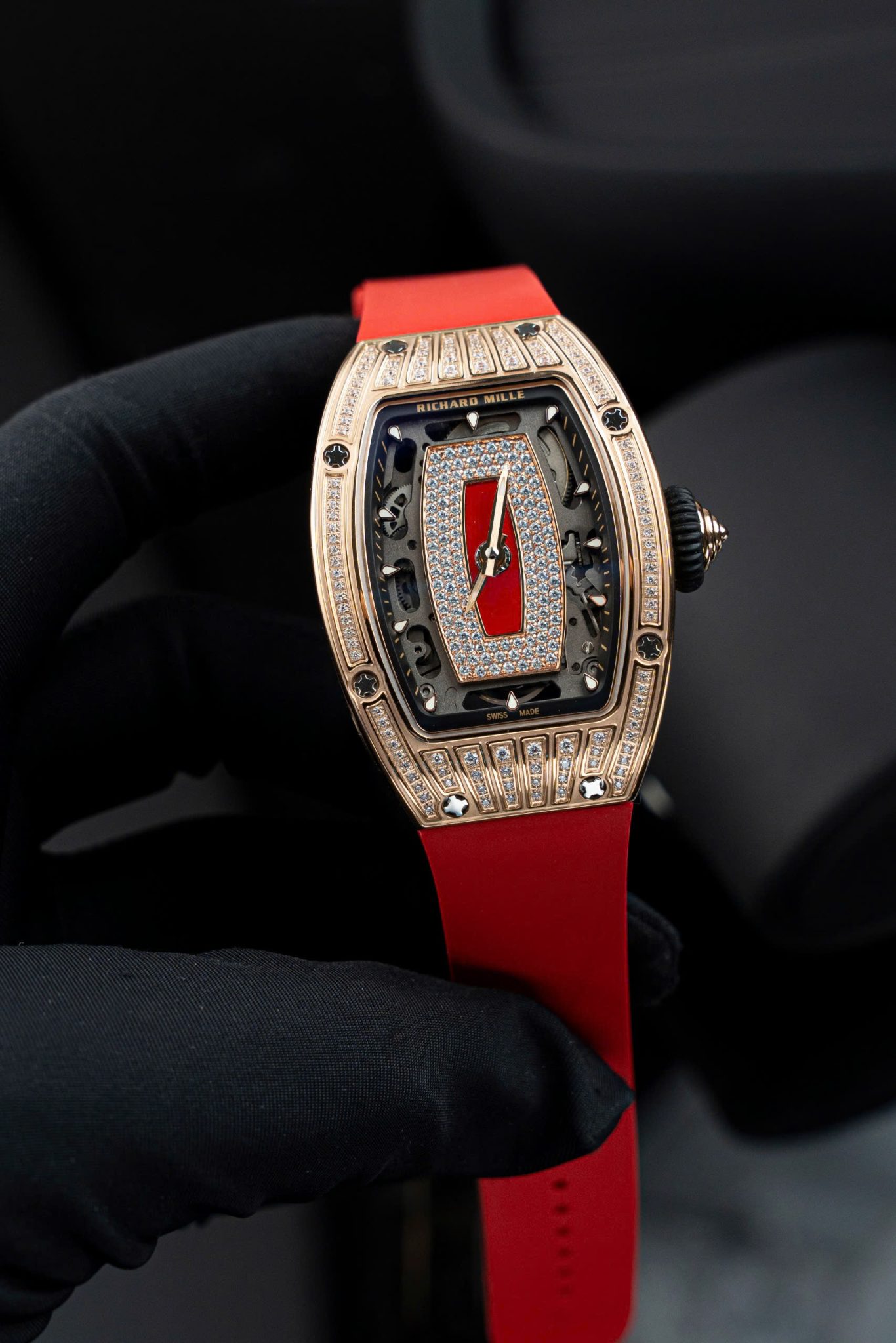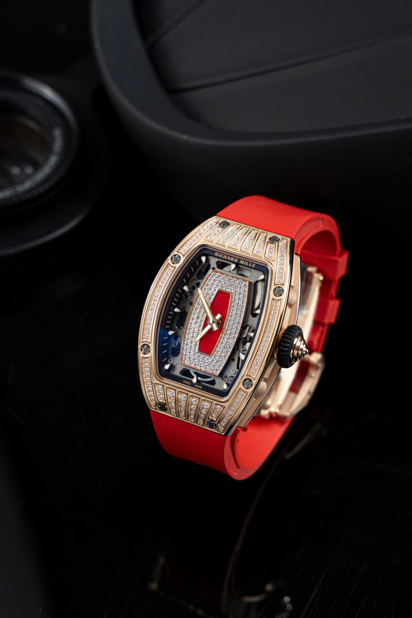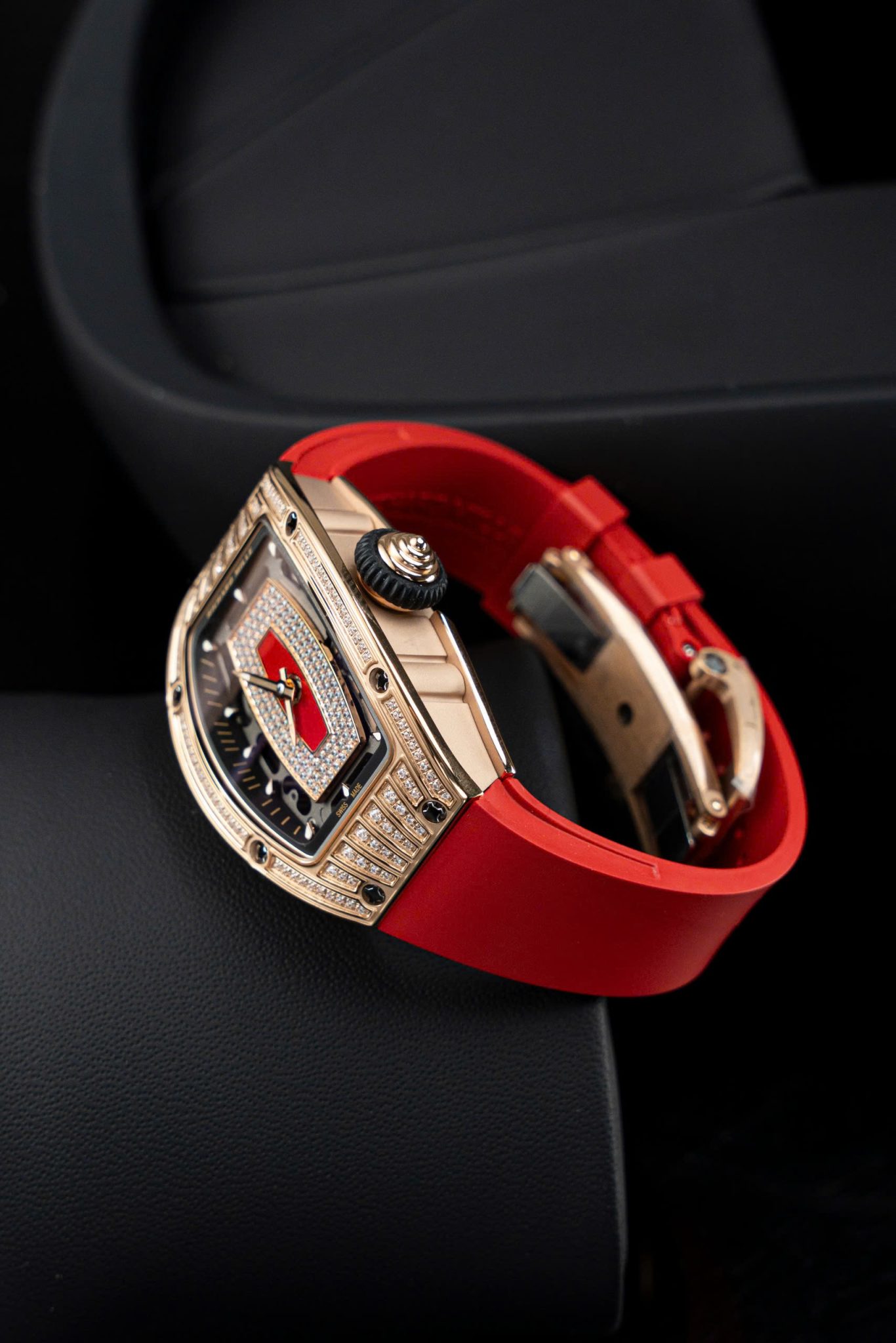 Đồng Hồ Richard Mille RM07-01 Vàng Hồng Mặt Số Jasper Đính Đá CZ Replica 1:1 Cao Nhất ZF 45.32 x 32.3mm