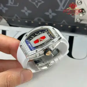 Đồng Hồ Richard Mille RM07-01 Vỏ Trắng Đính Đá CZ Mặt Số Đỏ Replica 1:1 Cao Nhất ZF 45.32 x 32.3mm