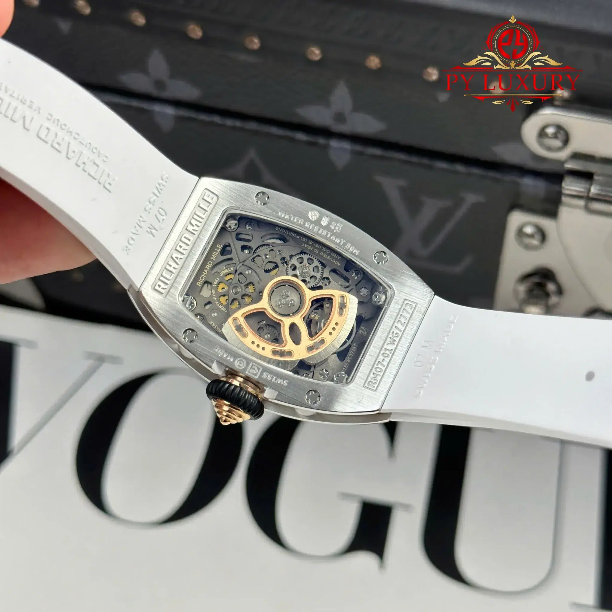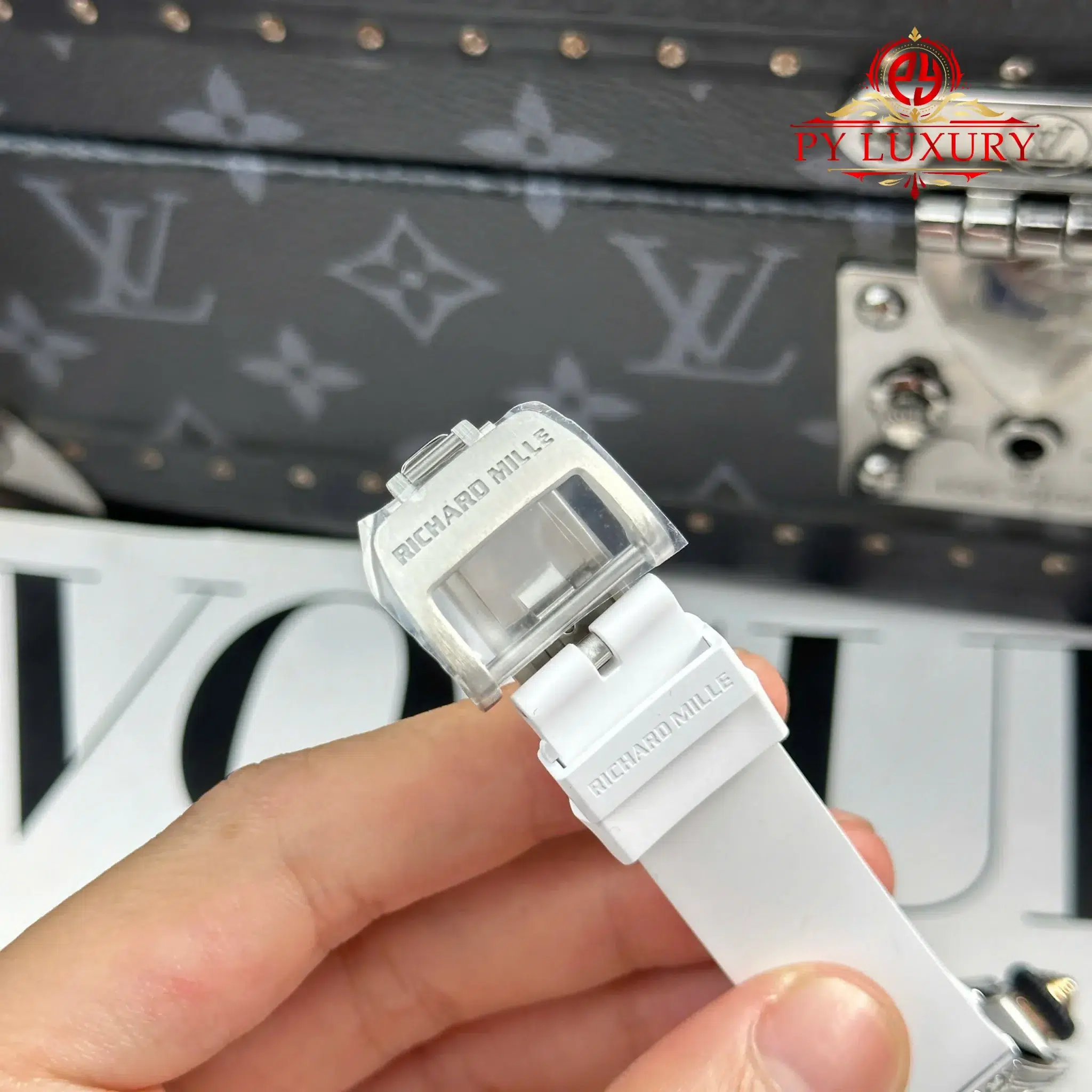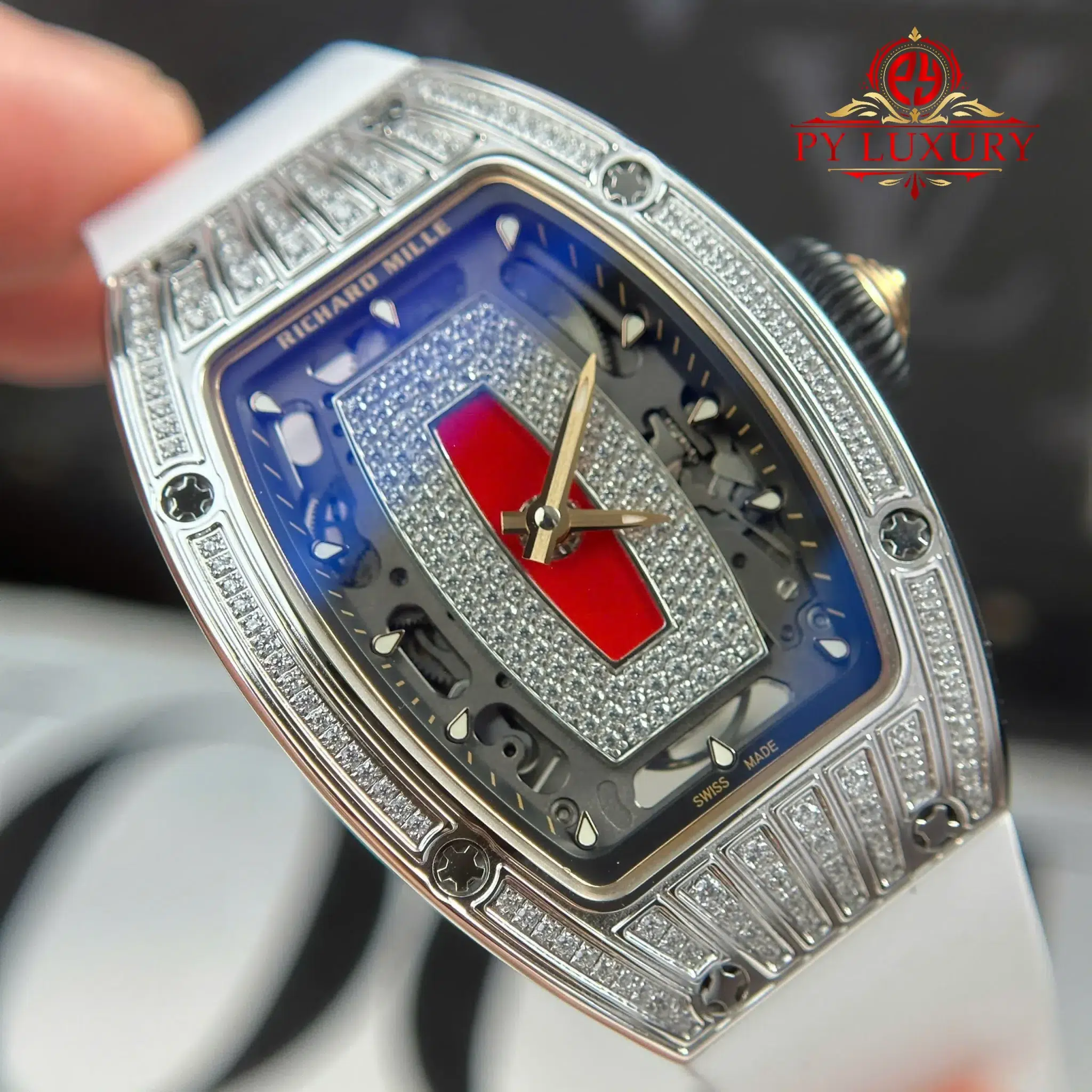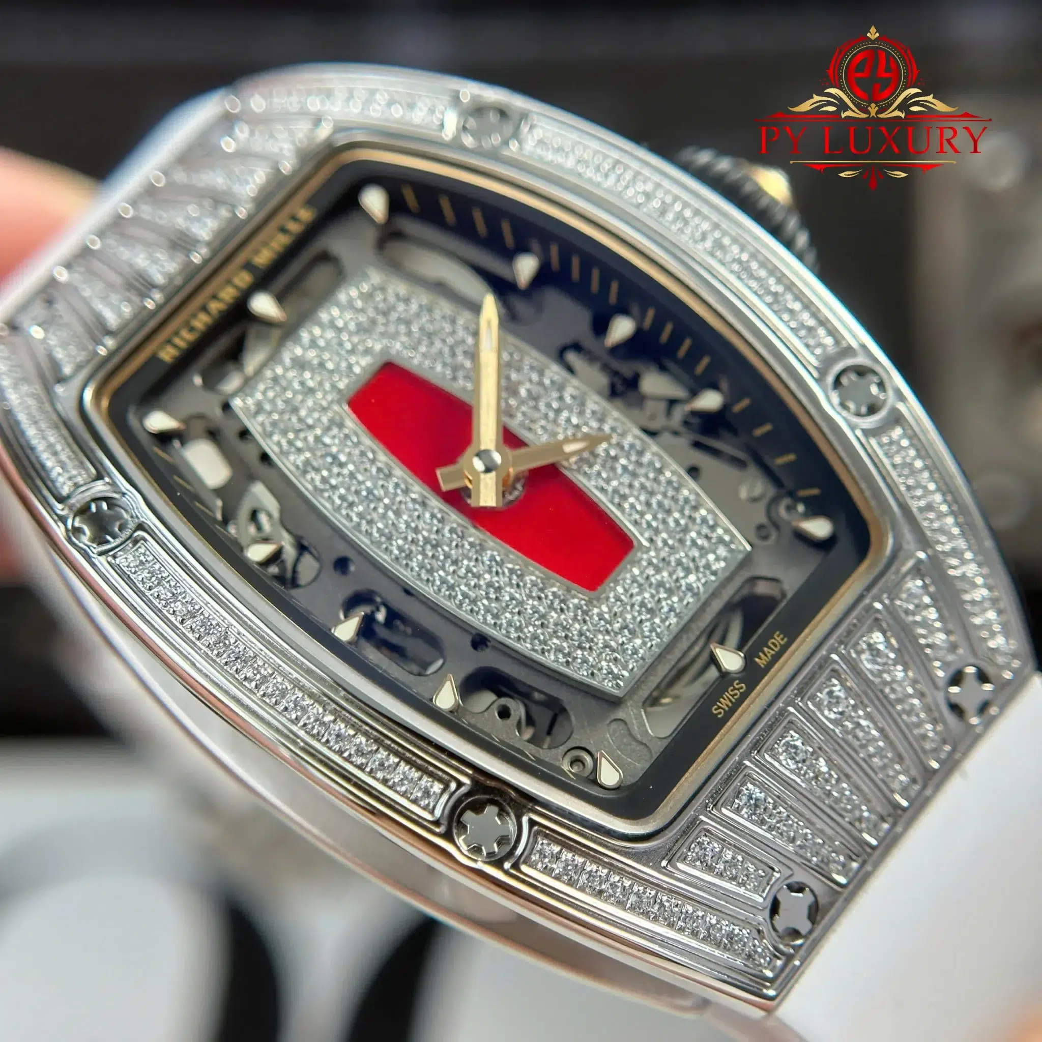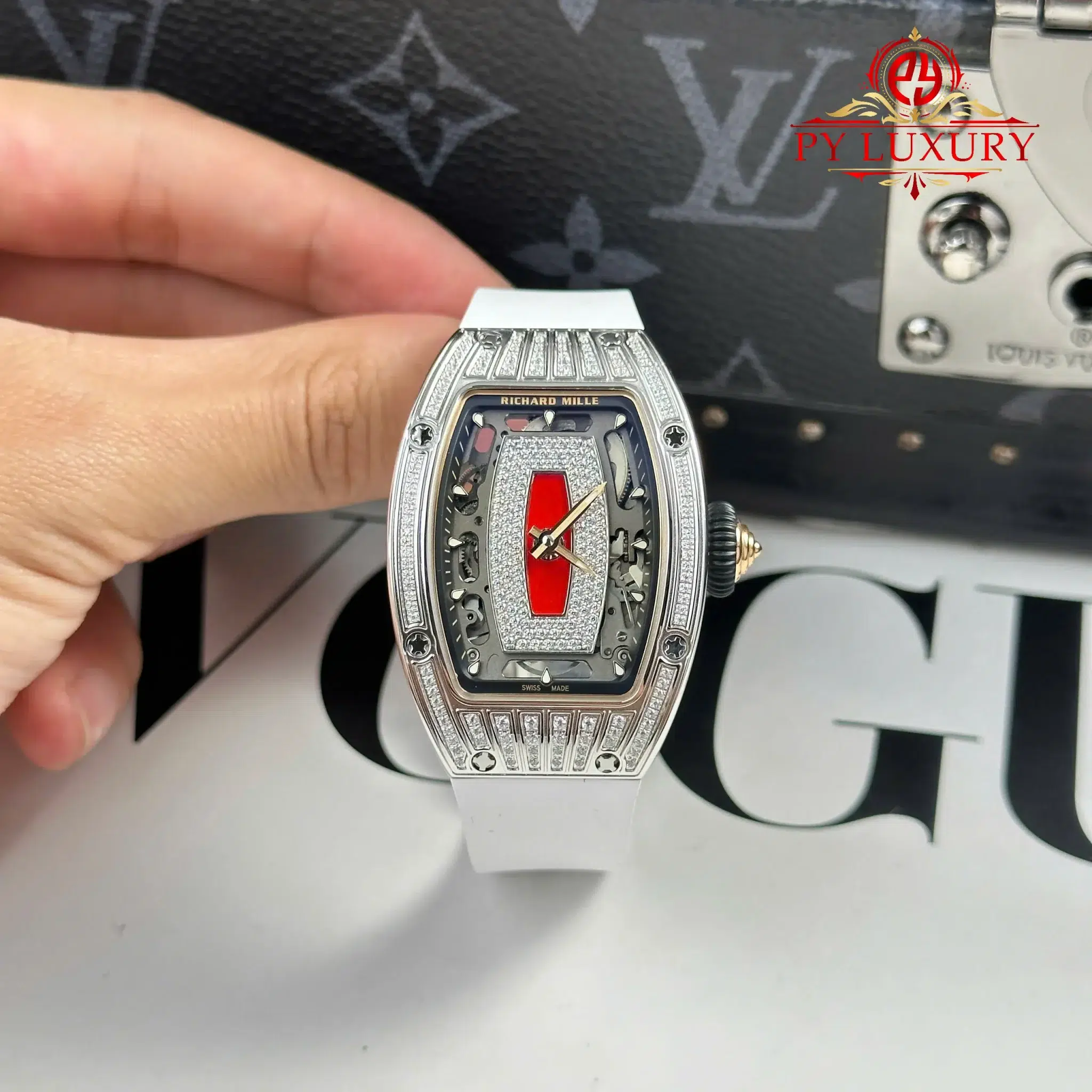 Đồng Hồ Richard Mille RM07-01 Vỏ Trắng Đính Đá CZ Mặt Số Đỏ Replica 1:1 Cao Nhất ZF 45.32 x 32.3mm